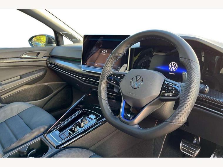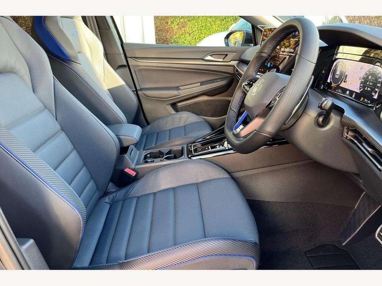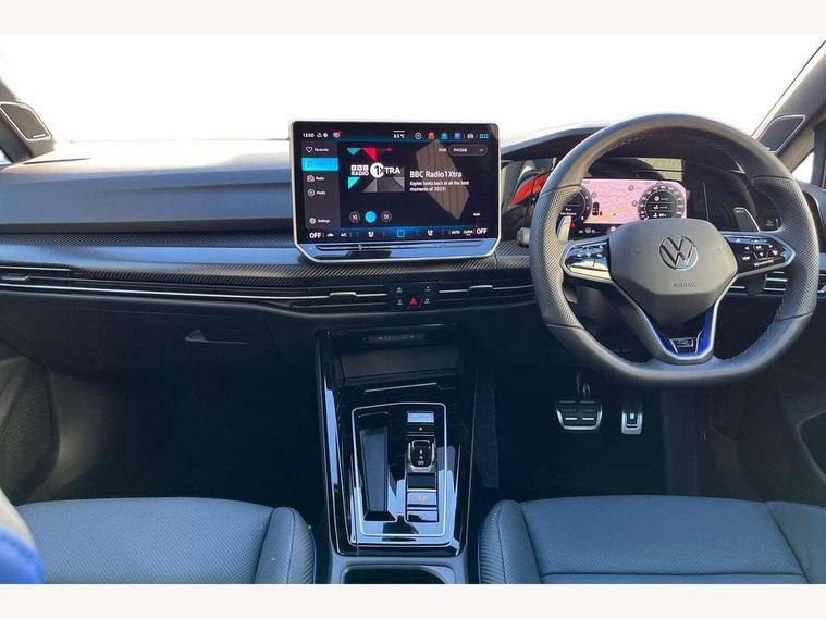 Activated carbon canister, Adaptive cruise control (ACC), Advanced driver attention and drowsiness monitor, Dynamic road sign display, E-Sim card for online connectivity, eCall emergency call system, Electronic maximum speed limit increased to 270 km/h, includes driving Modes 'drift' and 'special', larger roof spolier and GPS laptimer + G-Meter, Multi-color Digital cockpit pro, selection of different info profile possible, Multifunction front facing camera for distance control, Navigation system, Oncoming vehicle braking when turning including swerve support, Progressive steering, Side assist blind spot lane change system, rear traffic alert and exit warning system, Speed limiter, Speedo, rev counter, electronic odometer, trip, service interval display, exterior temperature and fuel gauge, Traffic jam assist, Voice enhancer and voice control, Warning signal and warning light for front and rear seatbelts not fastened, We connect plus preparation, We connect preparation, Wireless app connect, All wheel drive - 4Motion, Petrol Particulate Filter, Start-stop system with battery regeneration (recuperation - energy recovery during braking), XDS electronic differential lock for improved traction and handling, 2 USB C ports in front, 2 USB charging sockets on the centre console in the rear charging capacity upto 45W, Digital radio reception (DAB), Diversity antenna for FM reception, Gaming platform via car app, Infotainment system with 12.9" display, Mobile phone interface with inductive charging feature, 3rd brake light, Auto dimming rear view mirror, Automatic headlamp activation with Coming home and Leaving home feature, Black badge on B-pillar, Black mirror caps, Black strips on radiator grille and headlights, Body colour door handles, Darkened headlights, Darkened R Logos and VW logos in front, rear and on fender, Exterior mirrors convex on the left and aspherical on the right, Front and rear electric windows, Front fog lamps and cornering light, Heat insulating windshield made of laminated glass, Illuminated lighting animation with wake up/goodbye scenario, LED matrix headlights with ambient light V2, advanced high beam, dynamic range contol with cornering, LED rear lamp with indicator, poor weather, LED separate daytime running light, Light assist with High beam control, R name plate, Rain sensor, Rear fog light on one side and reversing lights on both sides, Rear side wing doors, Rear tinted glass 65% light absorbing from B pillar backwards, Rear windscreen washer and wiper with interval delay, Remote electrically foldable door mirrors, puddle lights and reverse activated passenger's door mirror, Welcome light with surround lighting, 12V socket in front centre console, 12V socket in luggage compartment, 3 rear head restraints, 3 seat bench in 2nd row, 30 colour ambient lighting, illuminated center console storage compartment in front, Air care climatronic 3 Zone automatic climate control with rear air conditioning control panel, Aluminium gearshift handle, Brushed stainless steel pedals, Chrome plated radiator grille inserts, air vent surrounds and light switch surrounds, Entry lights, Front + rear black carpet mats, Front centre armrest, Integrated front head restraints, ISOFIX anchors for child seats on outer rear bench seats and on front passanger seat compatible for i-Size, Luggage compartment lighting, Rear cupholder and loadthough, Single front passenger seat, Soul black instrument panel, Soul black roof lining, Split folding backrest with centre armrest and unsplit rear seat bench, Sun visors with illuminated vanity mirrors, Driver assistance pack - Golf Estate/Hatchback Auto, R styling pack - Golf, Technology park and comfort pro package - Golf Hatchback, 3 point height adj front seatbelts + pretensioners, 3 rear three point seatbelts, ABS, Autonomous emergency braking front assist with pedestrian and cyclist monitoring, Child locks on rear doors, Driver and front passenger airbag with front passenger airbag deactivation, Electronic parking brake with auto hold, ESC (Electronic Stability Control), Extended pedestrian protection measures, Front and rear black brake calipers with darkened R-logo, Hill start assist, Rear disc brakes, Two tone horn, Tyre pressure loss indicator, Volkswagen roadside assistance, Anti theft wheel bolts, Preparation for alcohol interlock, Sporty vehicle dynamics, Tool kit for tyre mobility set, Tyre mobility kit Includes 12V compressor and tyre sealant, Wheel hub cover with darkened R-logo,