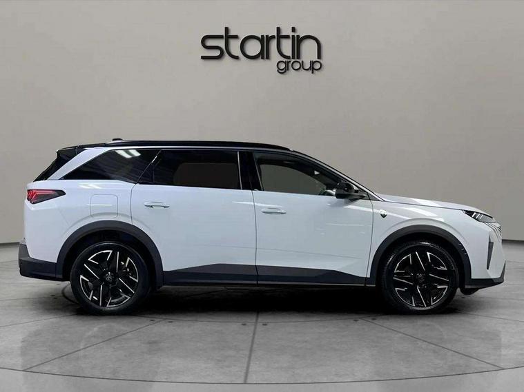 Adaptive cruise control with Stop and Go, Bluetooth with two microphones (Connect up to 2 phones), Drive modes select (Eco, normal and sport) with configurable ambient lighting, Driver foot rest, Driver profile selection, E-call, Exterior temperature indicator with ice warning, Front parking sensor, Front passenger seat detection, Hands free Smart Electric Tailgate (foot operated), Lane keep assist, Manual gear changes via steering mounted paddles, Multi function trip computer, Natural voice recognition, PEUGEOT i-Cockpit - 21" HD panoramic curved display incorporating instrument panel and touchscreen with 3colour themes, PEUGEOT i-connect advanced HD fully customisable touch screen, Navigation with Tom Tom Live updates and over the air map updates, PEUGEOT SOS and assistance, Rear parking sensor, Speed limit and traffic sign recognition and recommendation, Wireless mirror screen with apple carplay and android auto, Wireless smartphone charger with status light and ambient lighting, Dynamic stability control (DSC) and Anti slip regulation (ASR), 1x USB-C socket for data/charging at front, 2x USB-C sockets for charging at rear, 6 speakers, AM/FM bi-tuner, DAB Radio (Digital Audio Broadcasting), Peugeot customisable virtual iToggles, 5008 model designation badges front and rear in basalt grey, Automatic hazard light activation upon heavy brake application, Automatic headlamp activation, Automatic windscreen wiper activation with interval wiping intensity control, Black diamond roof and floating effect rear spoiler finished in nera black metallic, Body coloured exterior door handles, Dark tinted privacy glass for rear door, Tailgate and Quarter windows, Door mirrors - Welcome lighting and integrated LED indicators, Electric adjustable/heated/folding door mirrors, Electrochrome rear view mirror, Flat blade wipers with magic wash integrated nozzles, Front and rear electric windows with one touch, Front grille with body coloured accents, Full LED 3D glass blades design Peugeot signature claw effect rear lights, Gloss black connecting strip between rear lights, Gloss black finish B pillar, Gloss black roof rails, Grained black lower door claddings and wheel arches, Hybrid rear badging in basalt grey, LED exterior lighting, LED third brake light, Lower front and rear bumper trims in meteor grey, Orbital gloss black door mirrors, Peugeot 3-claw signature front and rear daytime running lights, PEUGEOT shield on front wings, Pixel LED Technology headlights with adaptive high beam assist, Rain sensor, Rear side wing doors, Rear wiper, Tailgate with heated rear window, 12V socket in front and boot, 2 cupholders in front centre console with closed storage, 2 seat bench in 3rd row, 2nd Row Manual Window Blinds, 3 seat bench in 2nd row, 4 Grab handles retractable and damped, 4 tie down luggage rings, 40/20/40 folding 2nd row seat backrest with 60/40 base with easy access to 3rd row seat, 50/50 folding 3rd row seat backrest with fixed base, Additional rear blower, Arch design central console with concealed storage, Cabin high efficiency filter, Central armrest with two cupholders and smartphone holder in 2nd row, Central front armrest with ventilated storage compartment and LED lighting, Chrome finish interior door handles, Compact heated multifunction steering wheel with full grain leather Iced Clay stitching, gloss black and satin chrome detailing and GT badge, Driver pedals with aluminium finish, Driver's manual adjustable lumbar support, e-Toggle compact gear selector, Electric power steering with reach and rake adjustable steering column, Glasses storage box, roof mounted, LED boot light, LED footwell lights, LED front and rear roof lighting, LED Glovebox light, LED illuminated driver and passenger concealed sunvisor mirrors, Luggage cover, Luxury front and rear carpet mats with Iced Clay stitching, Mistral black pillars and headlining, Quick launch cabin heating/cooling function, Rear air vents, Roll up awning fitted to tailgate, Roof lining - Meteor grey, Seatbelt unfastened on the move audible and visual alert for front and rear seats, Single front passenger seat, Stainless steel PEUGEOT door sill trims, Tri zone climate control, Two bag hooks, Under floor storage in boot, 2x Isofix child seat fitting on 2nd row outer seats with zipped cover, 2x3 point rear seatbelts for row 3, 2x3 point seatbelts for row 2 outer rear seats + Centre seat in row 2 with 3 point seatbelt, ABS (Anti-lock Braking System) with (EBD) Electronic Brakeforce Distribution, Adaptive front passenger airbags with airbag deactivation function, Advanced Emergency Braking System with radar (AEBS3) providing night detection of pedestrians and cyclists, Child locking functionality on rear doors, Driver airbag, Electric parking brake, Emergency Brake Assist (EBA), Front and rear curtain airbags, Front and row 2 side airbags, Front optimised safety headrests and 3 x rear retractable headrests with height adjustable, Front/rear disc brakes, Hill start assist, Post collision safety brake, Seatbelts - Front and 2nd row outer seats with pyrotechnic pretensioners and force limiters, Tyre under inflation monitoring and detection (Indirect), 2x Keys (Lock, Unlock, Boot release function with concealed key), Acoustic vehicle alert system (AVAS), Automatic door locking when moving off, Deadlocking system, Electronic code immobiliser, Exterior passenger door lock, Locking wheel nuts, Peugeot Open and Go (keyless entry and push button start), Thatcham category 1 Perimetric and volumetric alarm with anti-lift detection, Aluminium printed dashboard and front door panel Alcove decor, Textile decor for dashboard, door panels and centre console arch, 19" BREDA diamond cut alloy wheels with star center cap in orbital black,