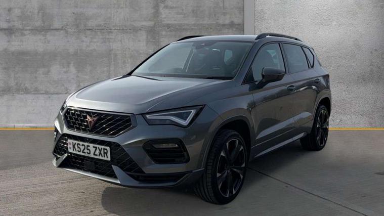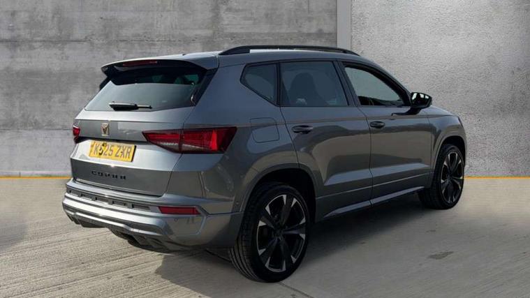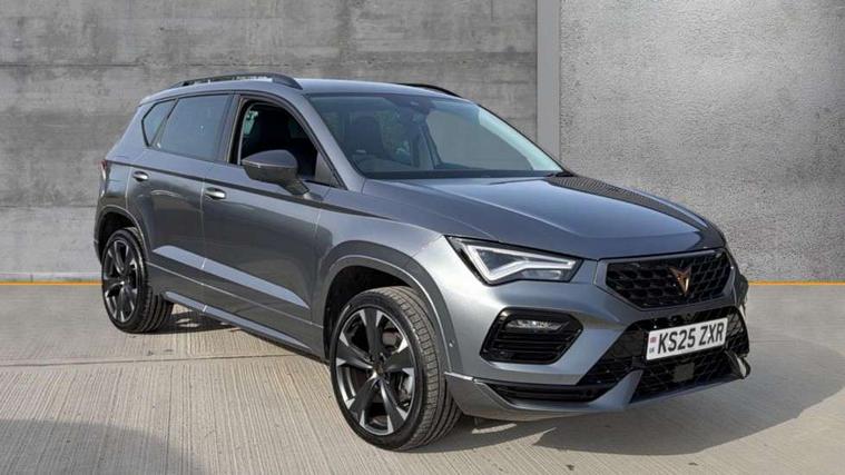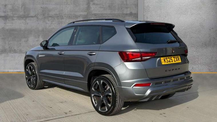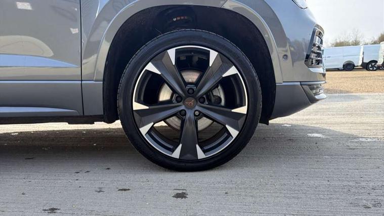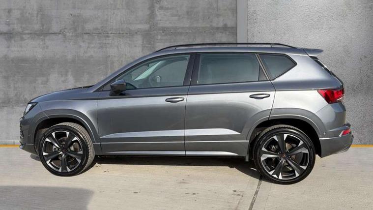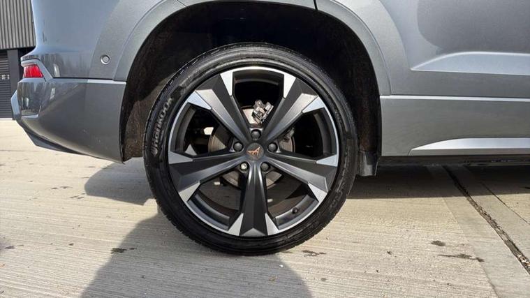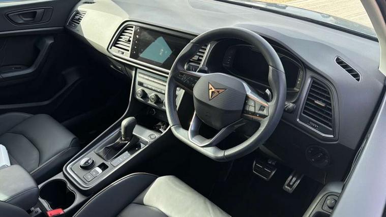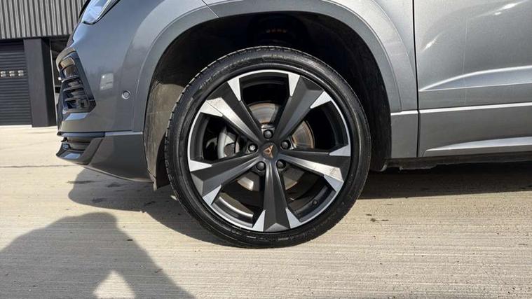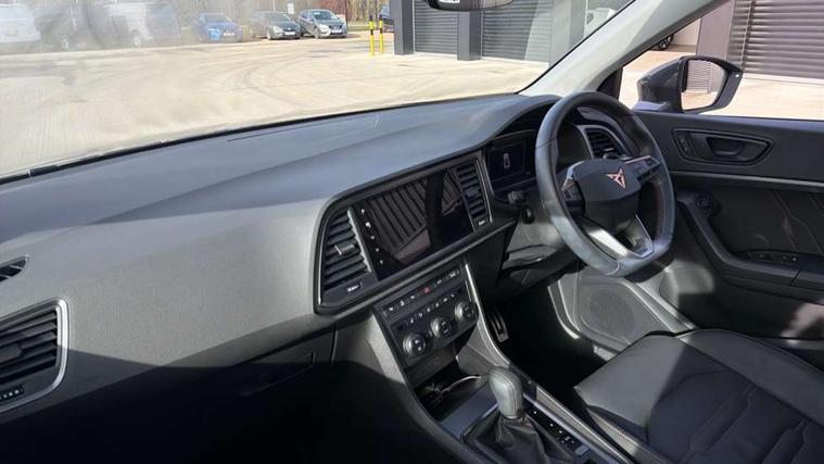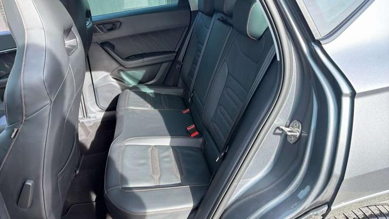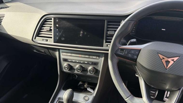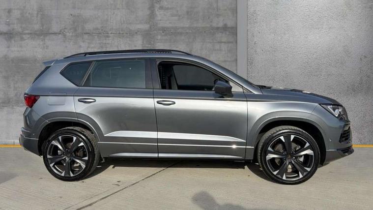 Cruise control system with speed limiter, Digital cockpit, Driving profile selection and conventional shock absorber, E-call, Electric tailgate with virtual pedal, Outside temperature gauge, Progressive power assisted steering, Rear view camera, Self parking functionality (includes front and rear parking sensors), Trip computer, wired and wireless full link smartphone integration, Wireless phone charger, Front and rear shock absorption, chassis with increased ride height, Steering wheel mounted audio/phone controls, Body colour bumpers with dark aluminium diffusor, Body coloured wheel arch surrounds, Dark tinted rear windows, Daytime running lights, Door mirrors with welcome CUPRA light silhouette, Dynamic headlight range control with self adjusting whilst driving, Electric adjustable/heated/folding door mirrors, Front and rear electric windows, Front grille frame in chrome, Full LED headlamps with lens and LED front fog lamps with cornering function, Gloss black door mirrors, Gloss black roof rails, Gloss black side mouldings, Gloss black side window trim, Illuminated aluminium front door sill, LED rear tail lights with dynamic indicators, Rear fog lights, Rear side wing doors, Rear spoiler, Rear wash/wipe, Specific CUPRA design front bumper, Standard rear exhaust tailpipes, Third brake light, 12V socket in front, 3 seat bench in 2nd row, 60/40 split folding rear seat, Aluminium pedals, Cupra steering wheel emblem, Dual zone climate control, Electric driver seat with memory function, Front and rear head restraints, Front centre armrest, Front seat back storage pockets, Grey roof lining, Heated front seats, Heated steering wheel, Height adjustable driver and passenger seat with lumbar adjustment, ISOFIX points in outer rear seats with top tether anchorage points, Leather sport bucket seats, Leather steering wheel and gear knob, Multicoloured ambient lighting with LED interior illumination, Pedal cluster, Rear armrest and easy back seat release mechanism from boot, Single front passenger seat, Sports steering wheel, Steering wheel mounted gearshift paddles, Storage compartment in roof console for sunglass, Storage compartment under driver's seat, Convenience pack - Ateca, Interior lighting pack - Ateca, Navigation system plus pack with DAB - Ateca, Safety and driving pack - Ateca, 3x3 point rear seatbelts, ABS, Traction control system (TCS), Electronic stability control (ESC) and Electronic differential lock system (XDS), Airbags - Driver and front passenger airbag with deactivation, front side, two curtain and driver's knee airbags, Black brake callipers with CUPRA logo, Electric parking brake with auto hold function, Front and rear seatbelt reminder, Front assist with autonomous emergency braking, Hill hold control, Manual rear child locks, Single tone horn, Tiredness recognition system, Tyre pressure monitoring system, Alarm, Keyless entry, Locking wheel bolts, 19" Sport machined alloy wheels 36/3 in black/silver,