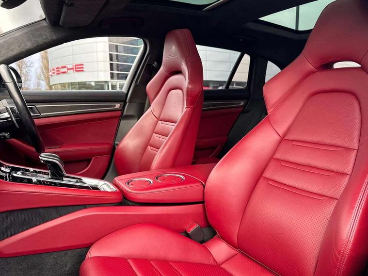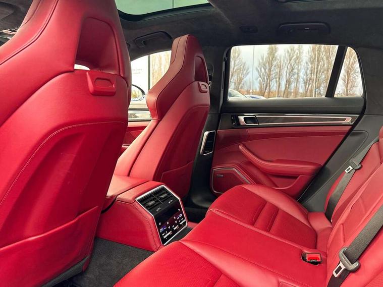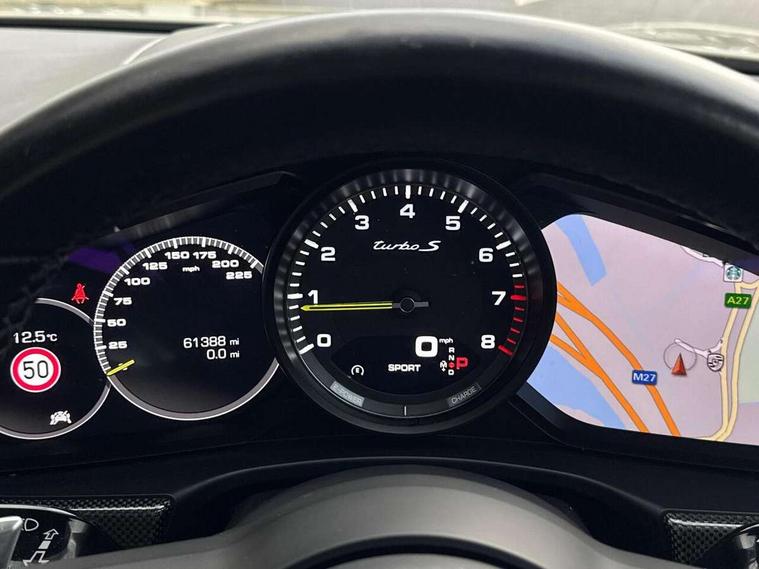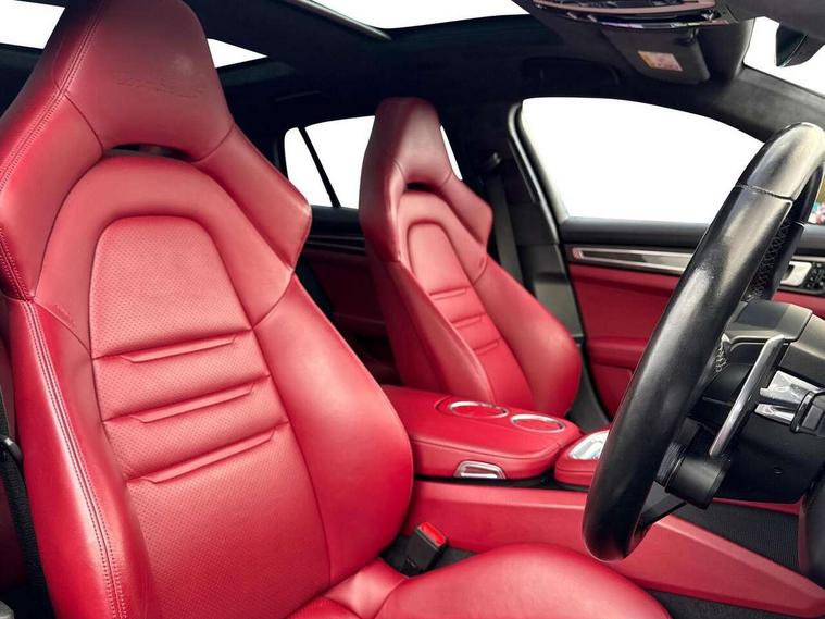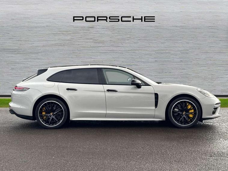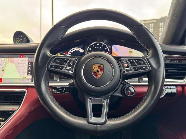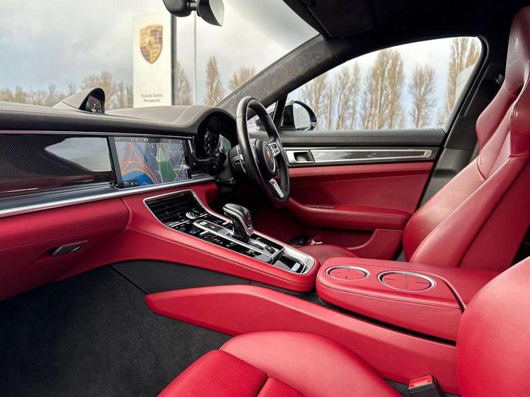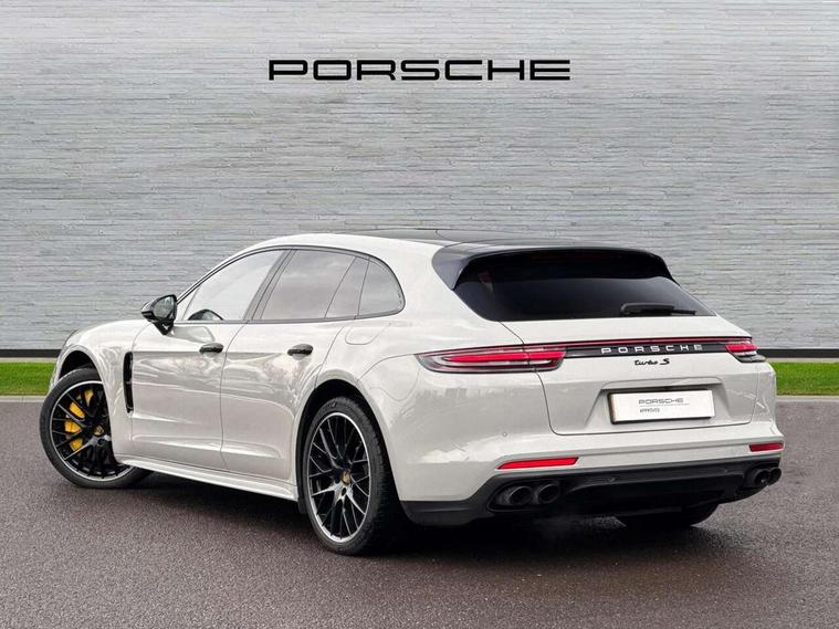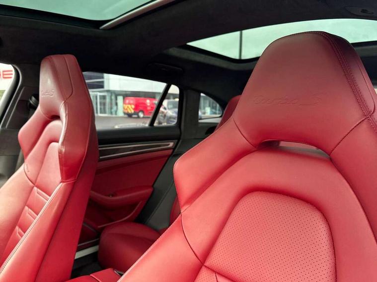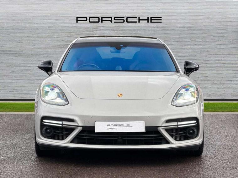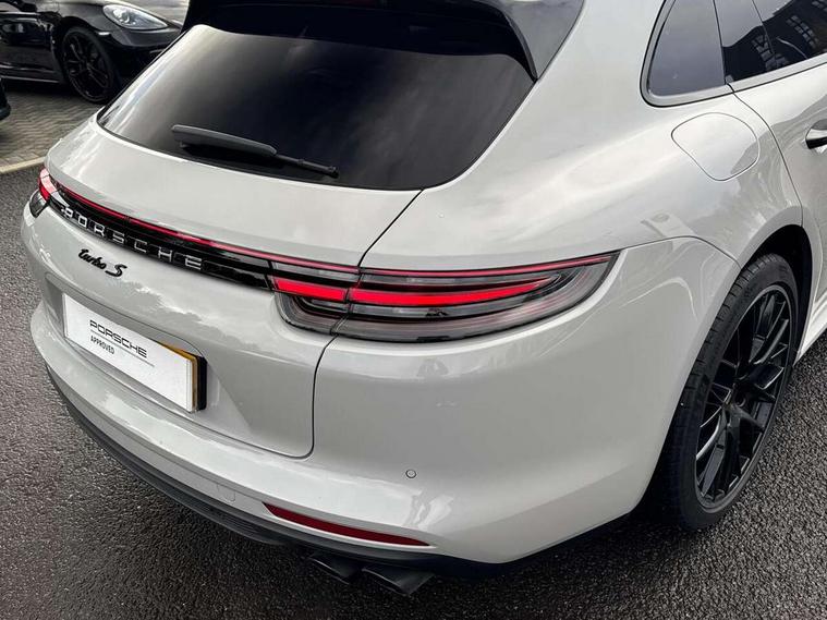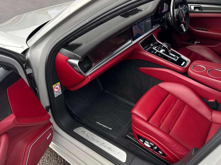 Auto start/stop function and coasting, Automatic tailgate operation, Instrument cluster with two high-resolution displays, Mobile telephone preparation, Service interval indicator, Trip computer, Voice control system, 8 Speed Porsche Doppelkupplung (PDK), 80 litre fuel tank, Double wishbone front axle, Gasoline particulate filter, Multi link rear axle, Porsche dynamic chassis control (PDCC) including Porsche torque vectoring plus (PTV Plus), Porsche stability management (PSM), Turbo chargers with twin scroll turbines, VarioCam Plus, Water cooled with thermal management, Connect Plus with Apple CarPlay, wireless internet access, Carfinder, Remote Vehicle Status and Remote Services, DAB Digital radio, Integrated 4G/LTE compatible SIM including data for the Porsche Connect Services, 2 speed front wipers + intermittent wipe, Aluminium bonnet with tailgate, door and front wings, Auto dimming exterior mirrors, Auto dimming rear view mirror, Automatic headlight activation including welcome home lighting, Door sill guards in brushed aluminium with model designation at front, E-hybrid logo on both front doors in high gloss silver with acid green surround, Electrically adjustable, folding and heatable exterior mirrors with aspherical on driver's side, Front light modules with LED position lights and direction indicators, Fully galvanised steel/aluminium hybrid lightweight bodyshell, Headlight wash system, LED daytime running lights, Porsche active aerodynamics (PAA) with 2 way adaptive roof spoiler in high gloss black, Porsche logo and model designation on tailgate in high-gloss silver and model designation with acid green surround, Rear window wiper with intermittent operation and washer nozzle, Windscreen washer system including rain sensor, 12v plug sockets in the front centre console storage compartment, 14 way electric comfort front seats with memory package, electric seat length adj, 4 way front lumbar support and electric adj steering column, 4+1 seats, rear compartment with full-size individual seat design, outside left and right, one centre seat, 40/20/40 individual folding backrests, folding rear seats centre armrest, remote release luggage compartment + manual release passenger compartment, Active cooling flap control, Air quality sensor, Alcantara roof lining, Charge air cooling, Courtesy lights on mirrors, Driver and passenger illuminated vanity mirror, Electric fore/aft and height adjustment steering wheel, Front centre armrest with cupholder, Front centre armrest with storage compartment, Glove compartment, front and rear door storage compartments, storage bin in centre console, small storage compartment in centre console, Integrated front and rear headrests with embossed Turbo S logo, Isofix child seat mounting points on outer rear seats, Parking pre climatisation, Pollen/active carbon filters, Rear centre console, Retractable luggage cover, Storage net in luggage compartment, Two integrated cup holders in rear compartment, Interior lighting pack - Panamera, Sport chrono pack - Panamera, Storage Pack, 3 point front/outer rear seatbelts + pre-tensioners + force limiters on front seats, Active bonnet, Anti-lock braking system (ABS), Continuously adjustable door brake, Curtain airbags along entire roof frame and side windows from the A pillar to the C pillar left and right, Driver and front passenger knee airbag, Electronic parking brake, Front + rear side airbags, Full size driver and passenger airbags, Height adjustable front seatbelts, Passenger airbag deactivation warning, Passenger knee airbag, Porsche side impact protection system (POSIP) includes side impact protection in doors, thorax airbags integrated into the side bolster of front seat, Porsche traction management (PTM) with AWD, map controlled multi-plate clutch, automatic brake differential (ABD) and anti-slip regulation (ASR), Tyre pressure monitoring system, Comfort access system, Engine immobiliser with remote central locking and alarm system with radar based interior surveillance, Keyless drive, Tyre sealing compound and electric air compressor kit,