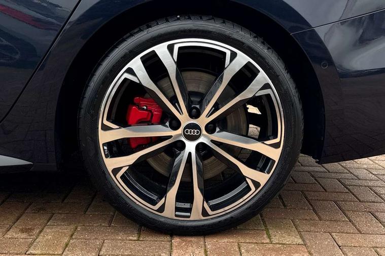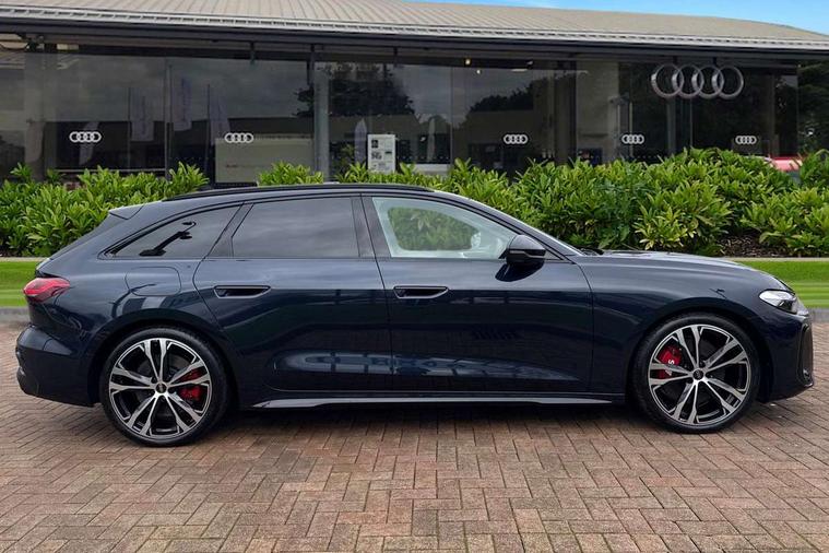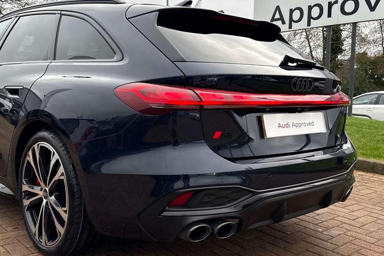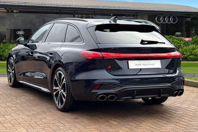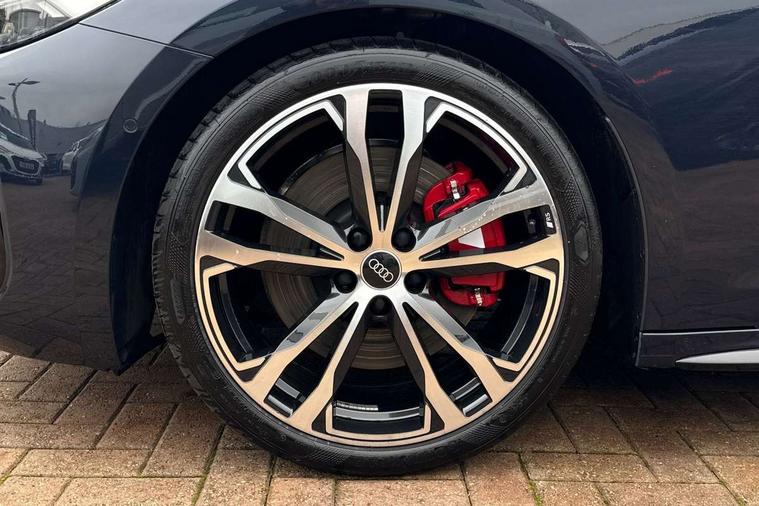 Adaptive cruise assist plus with steering intervention, Advanced driver attention and fatigue montior, Audi application store, Audi assistant, Audi connect emergency call and service, Audi drive select, Audi smartphone interface, Audi virtual cockpit plus with 11.9" OLED colour display, Automatic start/stop system with coasting functionality, Camera based traffic sign recognition, Garage door opener, Intersection assist, Lane change assistant with exit warning system, rear cross traffic alert and rear turn assist, Lane departure warning with emergency assist, MMI 10.9" front passenger touch display, MMI navigation plus with high resolution 14.5" OLED touchscreen colour display, Park assist plus, Parking system plus with 360 display, Progressive steering with servotronic, Swerve assist and turn assist, Top view camera, Traffic sign based speed limiter, Quattro with sport differential, S sports suspension with damper control lowered by 20mm, 2 USB-C ports in both the front and rear, DAB digital radio reception, Smartphone compartment with wireless charging, Aluminium window trims, Auto dimming rear view mirror, Black door handles, Black roof rails, Dark chrome-plated tailpipe trims, Digital OLED tail lights including communication light, Door mirrors - electrically adjustable, heated, folding and auto dimming on both sides, Front and rear electric windows, Front door sill trims with aluminium inlays, illuminated with 'S' logo, Headlight cleaning system, High beam assist, LED daytime running lights, LED third brake light, Matrix LED headlights with eight light signatures selectable via the MMI or the myAudi app, Panoramic glass roof with switchable transparency, Privacy glass, Rear and side windows with heat insulating glass, Rear side wing doors, Rear wash/wipe, Red S rhombus badging with S lettering on rear, S bumpers, radiator grille and diffuser in titanium matt black and diffuser insert in matt silver, White rhombus logo projection light in exterior mirrors, Windscreen with acoustic glazing, 3 rear headrests, 3 seat rear bench, 3 spoke leather steering wheel with multi-function buttons with touch control, flattened on top and bottom, with S badging and contrast stitching, 3-zone automatic climate control, 40:20:40 split folding rear seat bench with centre armrest and cup holders, Comfort front centre armrest, Electric steering wheel adjustment, Electrically adjustable front seats, Front and rear floor mats, Front sport seats plus with integrated headrest and S embossed logo, Headlining in black cloth, Heated front and outer rear seats, Heated steering wheel, i-Size child seat mounting on the front passenger side and outer rear seats, i-Size and top tether on the outer rear seats, Luggage compartment lid, electrically opening and closing, Memory function for driver seat, Pearl Nappa leather upholstery, Pneumatically adjustable lumbar support, Single front passenger seat, Stainless steel pedals and footrest, Steering wheel grips in perforated leather and shift paddles, Ventilation seat and massage function for the driver and front passenger, Black styling package plus - A5, Sound and vision pack - A5, 3x3 point rear seat belts, Acoustic vehicle alerting system, Convenience key with safelock, Driver airbag, Electric child safety locks, First aid kit with warning triangle and vests, Front emergency brake assist, Front passenger airbag, Front passenger airbag deactivation, Hill hold assist, Occupant detection in rear seat area, Proactive passenger protection system for front, sides and rear, Red brake calipers, Seat belt monitoring with rear seat occupant reminder, Side airbags in front and rear with head airbag system and front interaction airbag, Tyre pressure loss indicator, Anti theft alarm, Anti-theft wheel bolts, Keyless Go, Accent surfaces and control buttons in gloss black, Black dashboard with contrast stitching, Softwrap in Dinamica with contrast stitching, Upper and lower interior elements in dinamica microfiber, 20" 5 twin spoke design Audi Sport alloy wheels in metallic black and gloss turned finish, Tyre repair kit,