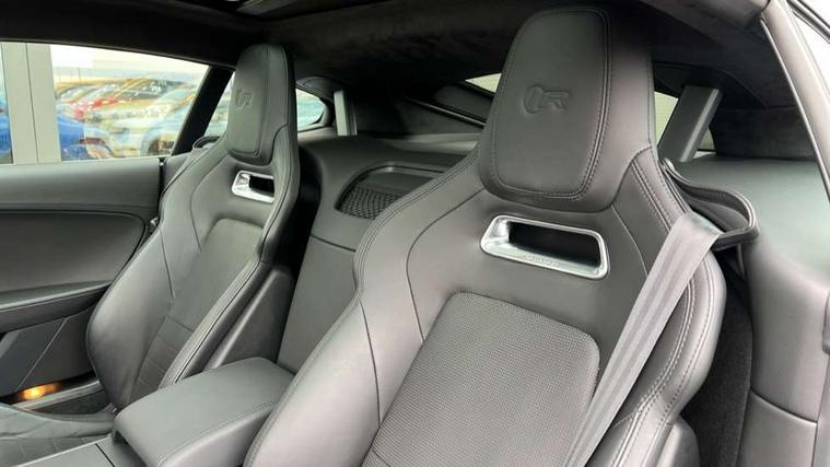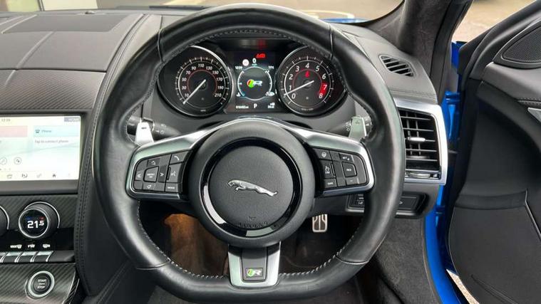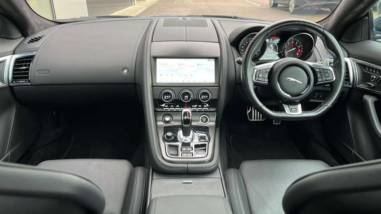 10" touch screen, Analogue dials with central TFT display - 210mph/320kmh, Android Auto, Apple CarPlay preparation, Bluetooth telephone connectivity, Cruise control + speed limiter, Driver condition monitor, Incontrol pro service, InControl remote premium, InControl Touch navigation pro, Lane departure warning system, Lane keep assist, PAS, Rear view camera, Stop/start system, Traffic sign recognition with adaptive speed limiter, Trip computer, Adaptive dynamics, Configurable dynamic mode, Electronic active differential with torque vectoring by braking, Sports suspension, Audio remote control, Digital Audio Broadcast radio-DAB, InControl app, InControl protect, Auto dimming rear view mirror, Automatic headlights, Deployable boot lid spoiler, Electric front windows, Flush exterior door handles, Gloss black front bumper beam with gloss black chin and chrome insert, Gloss black rear valance with body coloured venturi blade, Headlight washers, Infra red reflective glass, LED headlights with signature DRL, LED tail lights, No badges, Quad outboard mounted exhaust pipes, R badge, Rain sensing windscreen wipers, Solar attenuating windscreen, Switchable active exhaust, Tinted glass, Bright metal foot pedals, Configurable Ambient interior lighting, Deployable front air vents, Electrically adjustable steering column with memory, Front centre armrest, Front headrests, Jaguar sense, Low line cubby box, Lumbar support, Memory function for passenger seat, Overhead console, Pollen filter, R performance seats, Twin front cupholders, USB with 12V socket in centre console, Windsor leather door trim with additional contrast stitch, 6 airbags - Driver/front passenger airbags, front and rear curtain airbags and front side airbags, Anti-lock braking system (ABS), DSC - Dynamic Stability Control, Electronic brake force distribution, Electronic parking brake, Emergency brake assist, Emergency braking, Front/rear seatbelt pre-tensioners, Pedestrian contact sensing and deployable bonnet, Seatbelt reminder for driver and front passenger, Tyre pressure monitoring system, Deadlocks, Drive away door locking, Engine immobiliser, Keyless entry, Locking wheel nuts, Perimetric and volumetric anti theft alarm, Remote central locking, Two stage unlocking, Valet mode, Graphite interior trim,