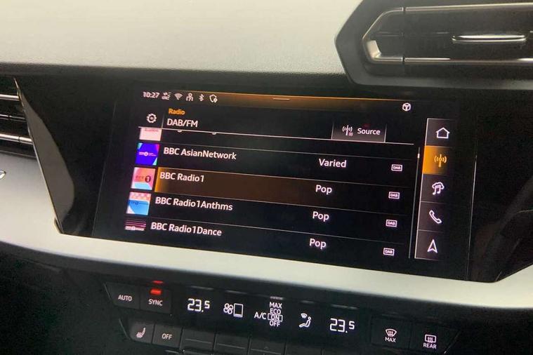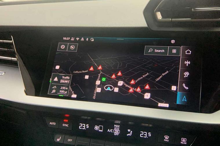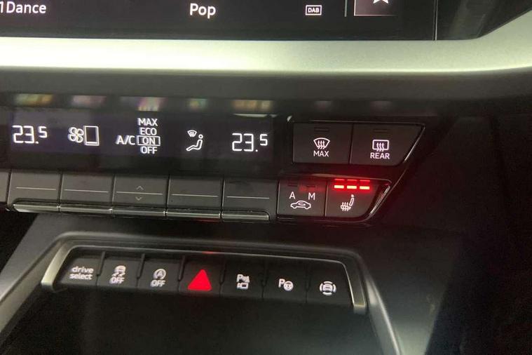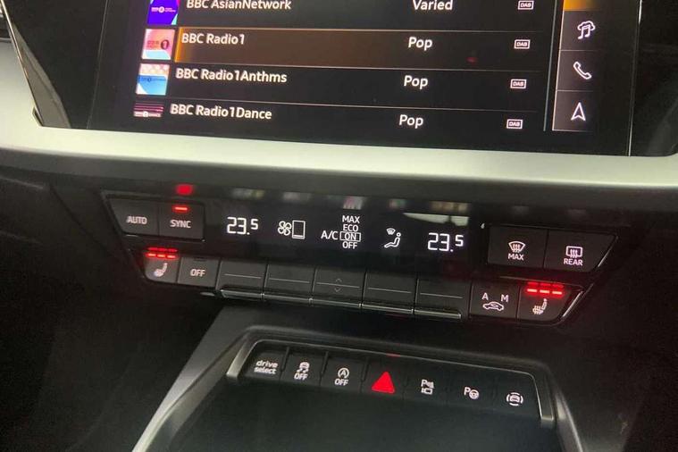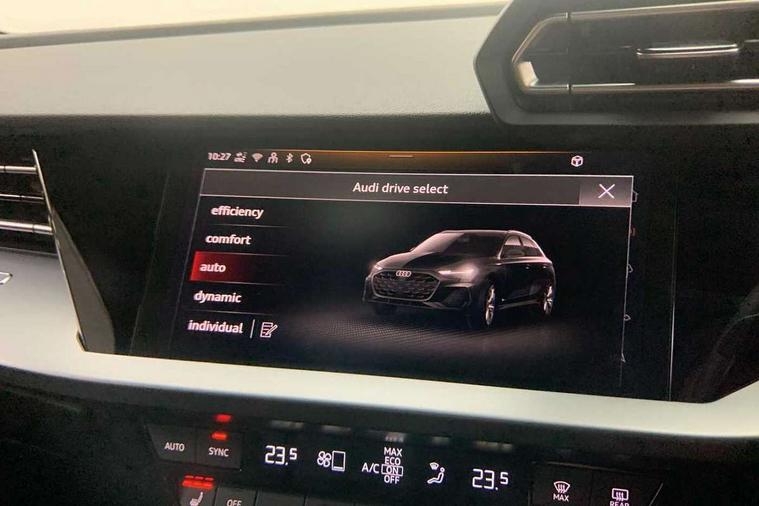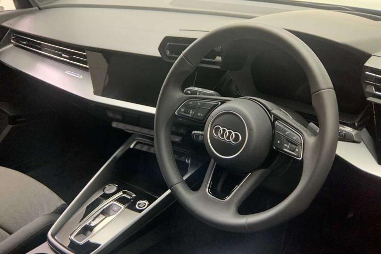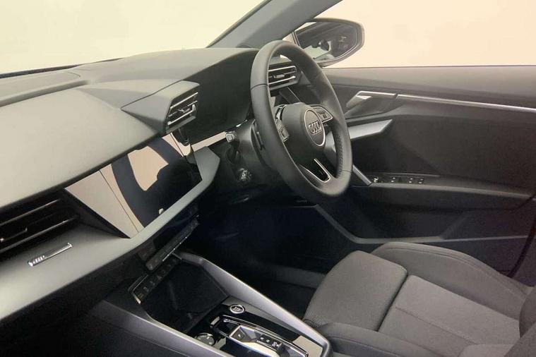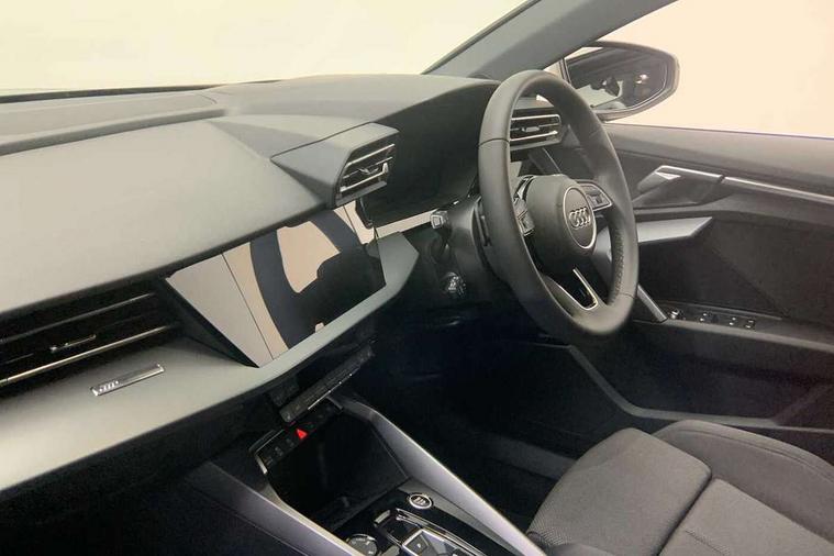 Adjustable speed limiter, Audi drive select, Audi smartphone interface with app store includes wireless Apple carplay, Android auto and Amazon alexa integration, Audi virtual cockpit plus - 12.3" full HD resolution dynamic digital instrument cluster, Automatic start/stop system with recuperation, Bluetooth interface, Camera based traffic sign recognition, Collision avoidance assistant, Cruise control, Distraction and Fatigue warning, e-Call (emergency call), Electromechanical power speed sensitive steering, Lane departure warning system, MMI Navigation Plus with high resolution 10.1" colour touch screen display, Park Assist with parking system Plus, Service indicator, Tailgate, Trip computer, Voice control system with natural language interaction, Standard suspension, Audi Phonebox light with wireless charging, Audi sound system - 10 loudspeakers including centre loudspeaker and subwoofer, DAB Digital radio, USB ports with charging function in the rear, 3rd brake light, Acoustic glass windscreen, Aluminium window trim, Auto dimming frameless rear view mirror, Body colour exterior mirrors, Body colour roof spoiler, Electrically adjustable/heated/folding/auto dimming door mirrors with integrated LED indications + kerb view function for passenger side, Exterior model badging, Front electric windows, Front radiator grill in high gloss dark chrome, Front side air inlets in grained matt black with silver frame, Heat insulating glass windscreen, LED daytime running lights, LED headlights and halogen rear lights, Light and rain sensors, Rear diffuser and grill in grained matt black with silver frame, Rear electric windows, Rear side wing doors, Rear window, rear door windows and rear side windows in clear glass, Rear wiper, 12V socket and storage compartment in front centre console, 3 seat bench in 2nd row, 3 spoke leather multifunction steering wheel with gear shift paddles, 3-zone deluxe automatic air conditioning, 4 way electrically adjustable lumbar support for driver and front passenger, 60/40 split folding rear seat bench, Front and rear headrests, Front centre armrest, Front door sill trims with aluminium inlay, Front/rear floor mats, Heated front seats, Height and reach adjustable steering wheel, Manual boot compartment lid, Manually adjustable front seats, Routine cloth upholstery with front sports seats, Seat side bolsters, Single front passenger seat, Steel grey cloth headlining, Aluminium interior elements pack - A3 Sportback, LED interior lighting pack -A3, 3x3 point rear seat belts, Driver and front passenger airbag with passenger airbag deactivation, Electronic Stabilisation Control (ESC) including ABS, ASR and EDL, First aid kit with warning triangle and 2 safety vests, Front side airbags with head airbags and interaction airbag, Hill hold assist, Pre-sense front with pedestrian and cyclist detection, Seatbelt monitoring, Tyre pressure loss indicator, Anti theft alarm, Anti-theft wheel bolts, Electronically operated child locks, Immobiliser, Remote central locking with safelock, Inlays in volcano grey fine paint finish,