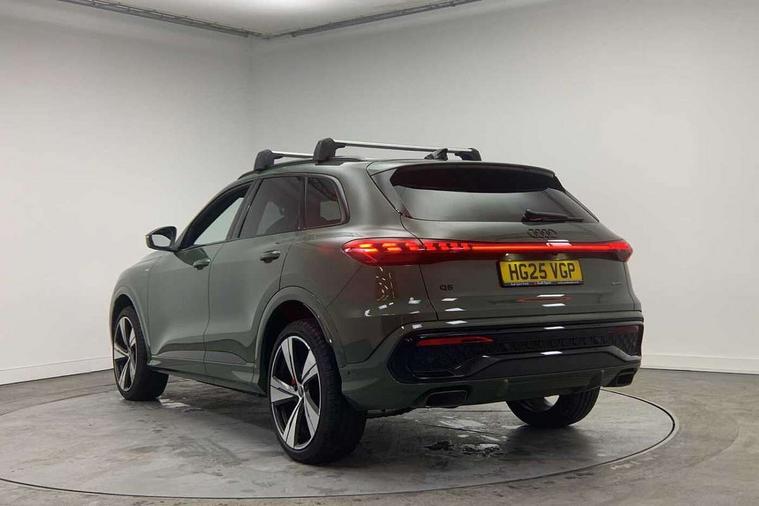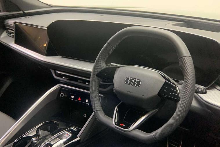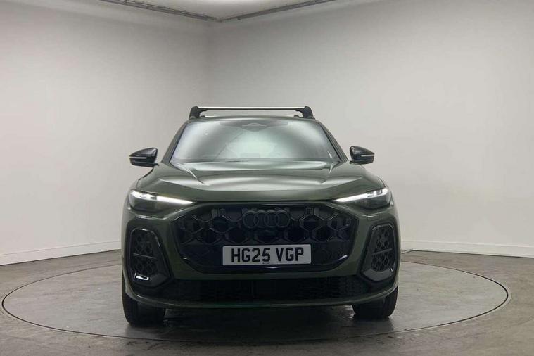 Adaptive cruise control, Advanced driver attention alert, Audi application store, Audi connect emergency call and service, Audi drive select, Audi smartphone interface, Audi virtual cockpit plus with 11.9" OLED colour display, Camera based traffic sign recognition, Fatigue monitor, Front cross traffic intersection assist, Lane change assistant with exit warning system, rear cross traffic alert and rear turn assist, Lane departure warning with emergency assist, MMI 10.9" front passenger touch display, MMI navigation plus with high resolution 14.5" OLED touchscreen colour display, Park assist plus, Parking system plus with 360 display, PAS, Reversing camera, Swerve assist and turn assist, Top view camera, Traffic sign based speed limiter, 2 USB-C ports in both the front and rear, Audi sound system impressive sound with 8 loudspeakers including centre speaker and subwoofer, 6-channel amplifier with a total output of 180 watts, DAB Digital radio, Smartphone compartment with wireless charging, Active digital light signatures - Six additional combinations of active daytime running light signature, Auto dimming rear view mirror, Black roof rails, Coming/leaving home lighting function, Electrically adjustable heated and folding + automatically dimming exterior mirrors, Exhaust tailpipes in dark chrome, Front and rear electric windows, Front door sill trims with aluminium inlays, illuminated with 'S' logo, Full body paint finish, Grill frame, inlay and front air inlets in matt anthracite chrome, Headlight cleaning system, Heated rear window, High beam assist, High gloss window surrounds, LED rear lights pro incl. dynamic rear indicators and illuminated light strip with animated coming and leaving home function, Logo projection light in exterior mirrors, Matrix LED headlights, Memory function for door mirrors, Privacy glass, Projection third brake light for rear window in LED, Radiator grille in phantom black, Rear and side windows with heat insulating glass, Rear honeycombe grille in matt black with inlay in matt anthracite chrome, Rear side wing doors, Rear wash/wipe, S Line badge on the front wings, Towbar preparation, Windscreen with acoustic glazing, 3 rear head restraints, 3 seat bench in 2nd row, 3 spoke leather steering wheel with multi-function buttons with touch control, flattened on top and bottom, with S badging and contrast stitching, 4 way electric lumbar support for driver and front passenger, 40:20:40 split folding rear seat bench with centre armrest and cup holders, Comfort centre armrest front, Deluxe 3 zone electronic climate control, Dinamica microfiber/leather upholstery with diamond stitching, Electrically adjustable front seats with memory function for driver's side, Front and rear floor mats, Front sport seats with integrated head restraints, Headlining in black cloth, Heated front seats, i-Size child seat mounting on the front passenger side and outer rear seats, i-Size and top tether on the outer rear seats, Interior trim in aluminium look, Luggage compartment lid, electrically opening and closing, Manual steering column adjustment, S embossed logo on front sport seats, Single front passenger seat, Softwrap in Dinamica, Stainless steel pedals and footrest, Steering wheel grips in perforated leather and shift paddles, Ambient lighting package plus - Q5, Black styling package plus - Q5, Storage and luggage compartment pack - Q5, 3x3 point rear seatbelts, ABS, Acoustic vehicle alerting system, Convenience key with safelock, Driver and front passenger airbag with passenger airbag deactivation, Electric child safety locks, First aid kit with warning triangle and high visibility vests, Front emergency brake assist, Front side airbags with head airbag system and front interaction airbag, Hill hold assist, Occupant detection in rear seat area, Proactive passenger protection system for front, sides and rear, Red brake calipers, Side airbags in front and rear with head airbag system and front interaction airbag, Tyre pressure loss indicator, Anti theft alarm, Anti-theft wheel bolts, Remote control key with SAFELOCK and keyless go, Accent surfaces and control buttons in gloss black, Black dashboard with contrast stitching, Steel grey seat stitching, Upper and lower interior elements in dinamica microfiber, Tyre repair kit,