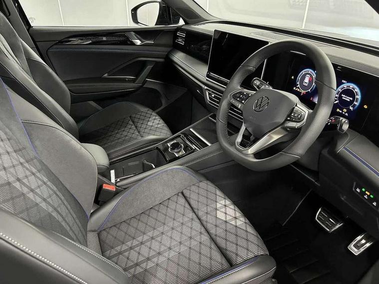 Adaptive cruise control (ACC), Advanced driver attention and drowsiness monitor, Bluetooth mobile phone interface, Car2X technology, Comfort drive travel assist, lane keeping system, lane assist and emergency assist, Digital Cockpit Pro - 10.25" high resolution dash display screen with customisable menus and information, Dynamic road sign display, E-Sim card for online connectivity, eCall emergency call service, Front Assist - Autonomous emergency braking with pedestrian and cyclist monitoring, Lane change system, Side assist, Rear traffic alert and Exit warning system, Oncoming vehicle braking when turning including swerve support, Park assistance plus with front and rear parking sensors, Power assisted steering with speed sensitive, Start/stop system with regenerative braking, Warning signal and warning light for front and rear seatbelts not fastened, Wireless App-Connect, Adaptive chassis control DCC pro includes driving mode selection, All wheel drive - 4Motion, Digital radio reception (DAB), Diversity antenna for FM reception, Air intake with black trim, Ambient lighting with logo projection, Automatic headlight control system, Body coloured door handles, Chrome moldings on the side windows, Coming/leaving home lighting function, Exterior mirror surround light, Heat insulating glass in side and rear windows, Heated rear window, Heated windscreen washer jets, High level 3rd brake light, Illuminated door handle recesses, Illuminated lightline between headlamps, Laminated safety glass windshield, LED Day time running light, Rain sensor windscreen wipers, Rear fog light on one side, reversing light on both sides, Rear side wing doors, Rear wiper, 12V outlet in center console rear and in luggage compartment, 12V socket in centre console, 3 bench rear seats in 2nd row, Air care climatronic 3 zone air conditioning system with rear air conditioning control panel, Black roof lining, Brushed stainless steel pedals, Carpet mats, front and rear, Centre console with illuminated storage compartment with sliding cover and two drinks holders, Chrome elements on the mirror switch and power window switches and door pulls, Door and side trim panel with leatherette insert, Door sill protectors, Entry and exit light, Front centre armrest, Interior ambient lighting with 30 colour options, ISOFIX anchors for child seats on outer rear seats and front passenger seat compatible with i-Size, Mechanical rear seat release, Power adjustable lumbar support in front, Rear bench seat, split folding, longitudinally movable and folding with load-through hatch and centre armrest, Single front passenger seat, Soul headlining, Sports comfort seats in front, Sun visors with illuminated vanity mirrors, Three rear head restraints, Variable luggage compartment floor, Black style package - Tiguan R-Line/Black edition, Driver assistance package - Tiguan, Driving dynamics pack with adaptive chassis control - Tiguan, IQ.LIGHT - HD matrix headlights pack - Tiguan Elegance/Black Edition, 3 point seat belt for centre rear seats, 3 Point seat belts in front with pretensioners, 3 point seatbelts in outer rear with ECE label, Driver and front passenger airbag with front passenger airbag deactivation, Electronic parking brake with auto hold, Front and rear curtain airbags, Front and rear side airbags, Front centre airbag, Front disc brakes, Hill decent control, Hill start assist, Manual child proof rear door locks, Rear disc brakes, Two tone horn, Warning triangle, Decorative inserts, Interior door handle in matte chrome, Soul instrument panel,