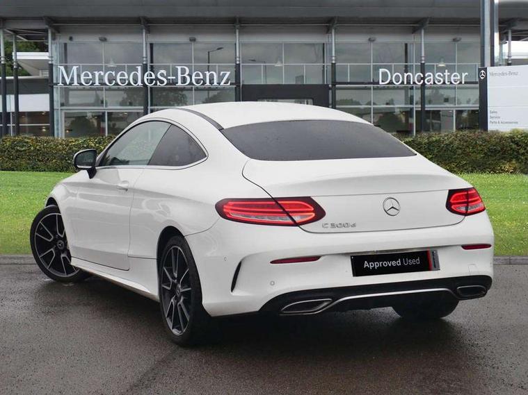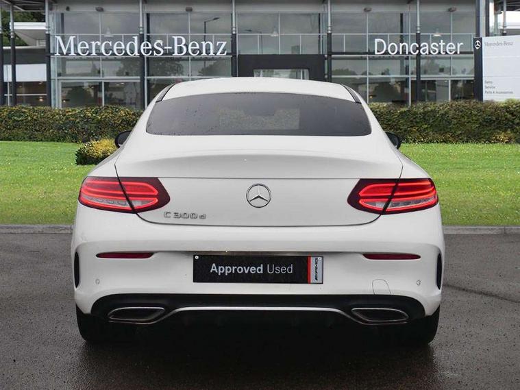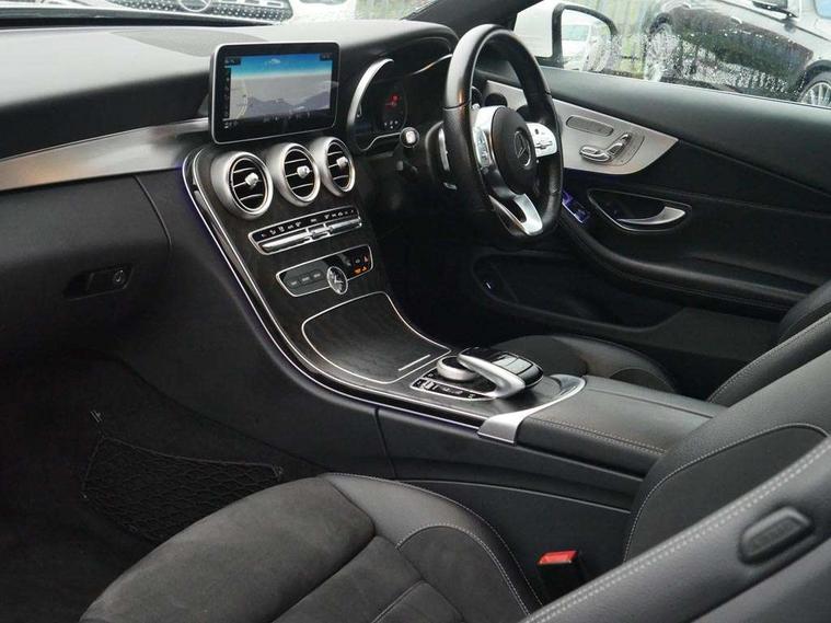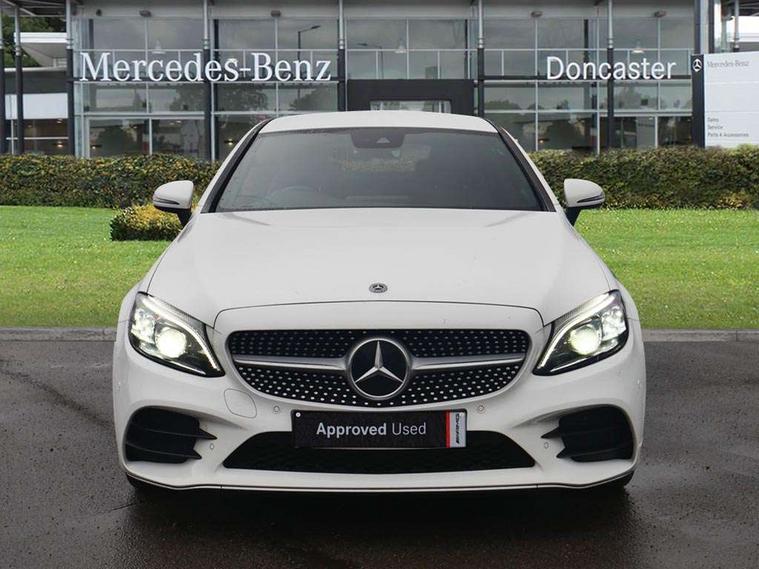 Active park assist with parktronic system, Attention assist, Bluetooth interface for hands free telephone, Collision prevention assist plus, Comand Online HDD Nav with media interface, radio/CD/DVD/MP3, 10.25 screen, linguatronic voice control, DYNAMIC SELECT with a choice of driving modes (ECO, Comfort, Sport, Sport+ and Individual), Mercedes connect me with remote online, Multi function trip computer, Outside temperature gauge, Remote boot release, Reversing camera, Service indicator (ASSYST), Smartphone integration with Apple CarPlay and Android auto, Speed sensitive steering, Stop/start system, Wireless charging, Diesel particulate filter, 2 USB ports, Burmester surround sound system, DAB digital radio module, Mercedes Audio 20 radio/single CD, SD card slot, Steering wheel audio controls, Adaptive brake lights, AMG front, rear apron and side skirts, Auto dimming driver's door mirror, Auto dimming rear view mirror, Body coloured bumpers, Body coloured door mirrors, Chrome grille surround, Chrome pins diamond radiator grille with integrated stars, Door sill plates with "Mercedes-Benz" lettering, Electric adjustable/heated/folding door mirrors, Electric windows one touch open/close, Green tinted glass, LED daytime running lights, LED Indicators, LED tail lights, LED third brake light, Multi beam LED headlights, Radio aerial in side window, Rain sensor windscreen wipers, Side windows surround in polished aluminium, Twin exhaust tailpipes x2, 2 cupholders in front centre console, 2 rear head restraints, 3 spoke flat bottom multi-function leather AMG steering wheel, 40:20:40 split folding rear seats, Ambient lighting, AMG floormats, Artico man-made leather upper dashboard and beltlines with contrast stitching, Auto dual-zone climate control system, Auto Mercedes-Benz child seat recognition sensor, Door courtesy lamps, Electrically adjustable front seats, Front centre armrest with storage compartment, Front footwell illumination, Heated front seats, Height adjustable front seats, Illuminated front/rear door handle recesses, Illuminated glovebox, Isofix rear child seat fastenings, LED reading lights, LED rear reading lights, Sports pedals with stainless steel surfaces and rubber studs, Sports seats with integrated headrests, Steering wheel gearshift paddles, Sunvisors with illuminated vanity mirrors, Seat comfort pack - C Class, Stowage space pack - C Class, 2 rear seatbelts, 3 point automatic seatbelts, ABS, Active bonnet, Adaptive brake system, Black seat belts, Brake calipers with Mercedes-Benz lettering + perforated brake discs, Crash sensor, Drivers knee airbag, Drivers pelvis airbag, Dual stage driver/passenger airbags, Electronic parking brake, Electronic stability control, Front and rear window airbags, Front seatbelt pretensioners, Front side airbags, Hill hold control, Hill start assist, Tyre pressure monitoring system, Warning triangle and first aid kit, Alarm system/interior protection/immobiliser, Automatic door locking, Chrome surround in electric key, Remote central locking, Tow away protection,