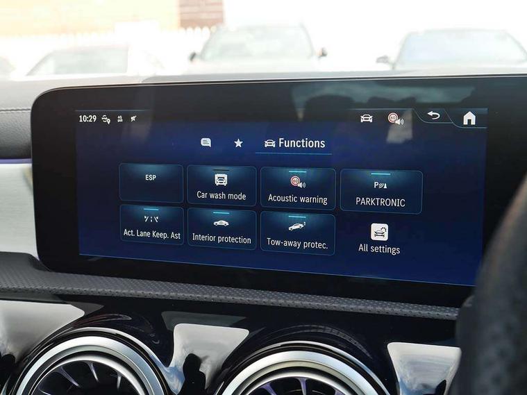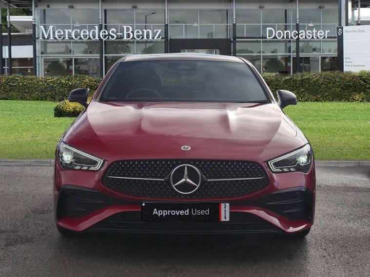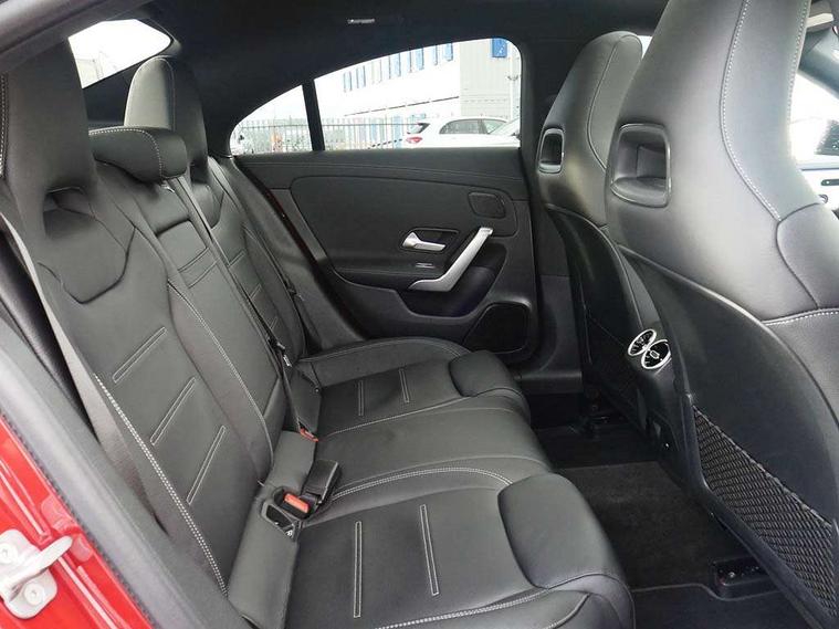 10.25 inch Instrument display with digital cockpit, 10.25 inch touchscreen central media display, Active lane keeping assist, Attention assist - Monitors steering behaviour and long journey fatigue, Bluetooth connection, Car wash mode, Cruise control with limiter, Direct steer system, DYNAMIC SELECT with a choice of driving modes (ECO, Comfort, Sport and Individual), ECO start/stop function, Fluid level warning indicator for fuel, oil, coolant and washer fluid, Hard-disk navigation, Hey Mercedes Voice activation, Lamp failure indicator, MBUX augmented reality for navigation, Mercedes me connect including emergency call system, accident recovery, breakdown management and maintenance, Mercedes me remote services, Outside temperature gauge, Owners manual in English, Pre-installation of private car share, Radio aerial integrated into front and rear windshields, Service indicator (ASSYST), Smartphone integration with Apple CarPlay and Android auto, Traffic sign assist, Trip computer in multifunction display with current consumption indicator, Wireless charging in the front centre console, Comfort suspension with ride height lowering, Rear axle multi-link, DAB digital radio tuner, MBUX multimedia system, Mercedes Benz advanced sound system (225 W) with 10 speakers, 1 central speaker, speakers on doors, a tweeter on door, one sub woofer + boost amplifier, Pre installation for Mercedes Benz Link, Adaptive brake lights, AMG body styling with AMG front apron and rear apron and visible exhaust tailpipe in chrome trim elements, Body colour door handles (Chrome insert with Keyless entry), Electric panoramic sunroof with automatic tilt and convenience closing fuinctions, rain sensor auto closing and electronic roller sunblind, Electric windows, Electrically adjustable and heated door mirrors with integrated LED indicators, Exhaust system with 2 Visible tailpipe trim elements and rear apron with trim in chrome, Hand free access, Headlamp assist automatic headlamp activation, Heated glass rear windscreen + timer control, High level LED third brake light, Integrated LED daytime running lights, Interior mirror with black reading lamps and frameless, LED tail lamp, Multibeam LED headlamps with adaptive highbeam assist plus, Privacy glass with dark tinting on rear side windows and rear window, Radiator grille with Mercedes-Benz pattern in chrome and central Mercedes star, single louvre in high-gloss black with chrome inserts, Rain sensing windscreen wipers with two sensitivity settings, Rear boot, Rear fog lamp, Rear side wing doors, Variable front intermittent wipers, 3 seat bench in 2nd row, 3 twin spoke flattened multifunction steering wheel in nappa leather - horizontal twin spoke in high gloss black, vertical twin spoke in silver chrome, 40:20:40 split folding rear seats with backrest, Air conditioning - Two zone thermotronic luxury automatic climate control with display, Air vents with surround in silver chrome, Automatic child seat recognition sensor, Black roof lining, Brushed stainless steel sports pedals with rubber studs, Electrically adjustable front memory seats including 4 way lumbar support, Floor mats with stitched AMG lettering, Fluorescent jacket, Front centre armrest with stowage, Galvanished gear shift paddles in silver chrome, Heated front seats, Illuminated front door sills with Mercedes Benz lettering and changeable cover, Interior lighting - 64 colour Ambient lighting, Luggage net on driver/front passenger seat backrest, Manually height and reach adjustable steering column, Rear armrest with two integral cup holders for drinks, Rear head restraints, Single front passenger seat, Sport seats with fixed head restraints, Stowage compartment in centre console with retractable cover, Sunvisors with illuminated vanity mirrors, Twin front cupholders, Two outer rear seat isofix and top tether child seat fixing points, Keyless go comfort pack - CLA, Light and sight pack - CLA, Mirror pack - CLA, Night package - CLA, Parking pack with 360 degree camera - CLA, Seat comfort pack - CLA, USB package plus - CLA, Active bonnet pedestrain safety measure which detects an impact and raises bonnet by 65mm, Adaptive brake assist with hold function and hill start assist, Anti lock braking system (ABS) with brake assist, Black seat belts, Bonnet with power domes, Brake calipers with Mercedes-Benz lettering, Brake pad wear warning indicator, Childproof locks manually operated for rear doors and electrically operated for rear power windows, Crash responsive emergency lighting, Driver and front passenger head and sidebags, Driver and front passenger windowbags, Drivers knee airbag, Dual stage driver and front passenger airbags, Electric parking brake, Electronic stability programme with acceleration skid control, ESP curve dynamic assist, Exit warning, Front and rear seatbelt reminder, Front passenger seat occupancy sensor, Perforated front brake discs, Sports braking system, Three point rear seat belts, Tyre pressure monitoring system, Warning triangle and first aid kit, Alarm system with immobiliser and interior protection -Thatcham category 1, Guard 360 deg vehicle protection - tow away protection with visual, acoustic warning, interior monitoring, preinstallation for parking damage, Remote central locking and crash sensor with emergency opening function, Light aluminium with longitudinal grain interior trim, 19" AMG multi-spoke black painted light alloy wheels with high sheen rim finish, Summer tyres, Tirefit tyre sealant kit,