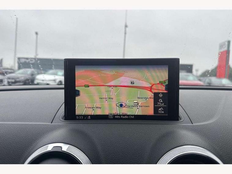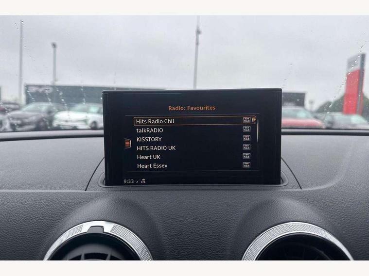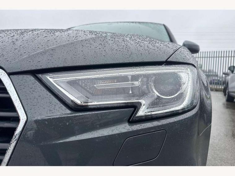 Audi connect, Audi drive select, Audi smartphone interface, Colour driver's information system display, Electro-mechanical PAS, Mobile telephone preparation - bluetooth interface, SD card based satellite navigation system, Service interval indicator, Speed limit display, Voice control system, 2 USB ports, Audi music interface, Auxiliary input socket, CD player, DAB Digital radio, MMI radio plus with 7" colour MMI screen and MMI controller, Aluminium window trim, Auto dimming rear view mirror with light and rain sensors, Body colour bumpers, Body colour door mirrors with integral indicators, Body colour roof spoiler, Chrome exhaust tailpipes, Electric front windows, Electric operated/heated door mirrors, Electric rear windows, Heated windscreen washer jets, LED daytime running lights, Matt black radiator grille, Rear wiper, Sport specific side air inlet grille and diffuser insert, 3 adjustable rear headrests, 4 lashing points to secure luggage, Adjustable front armrest, Aluminium door sill trims, Dual zone electronic climate control, Front and rear interior lights with delay, Front passenger seat isofix location point, Front sports seats, Front/rear floor mats, Height/depth adjustable steering column, Illuminated glovebox, ISOFIX child seat preparation+airbag deactivation, Jack and tool kit, Rock grey headlining, Storage compartment in centre console, Storage compartment under front seats, Storage compartments in doors, Non smoking pack - A3, 3 point seatbelts on all seats, ABS/EBD, Active bonnet, Active front headrests, ASR, Curtain airbags, Driver and passenger side airbags, Driver/Front Passenger airbags, Drivers knee airbag, EDL, Electromechanical parking brake, ESC - Electronic Stability Control + traction control, Front passenger airbag deactivation, Manual rear child locks, Multi-Collision braking, Seatbelt warning, Tyre pressure warning, Warning triangle and first aid kit, Anti theft alarm, Anti-theft wheel bolts, Remote control central locking, Thatcham category 1 alarm + immobiliser, Aluminium air vent surrounds, Aluminium trim elements, Space saver spare wheel,