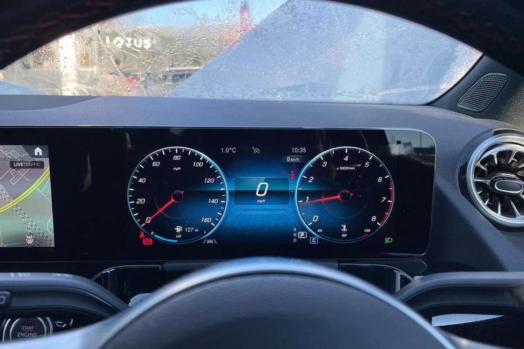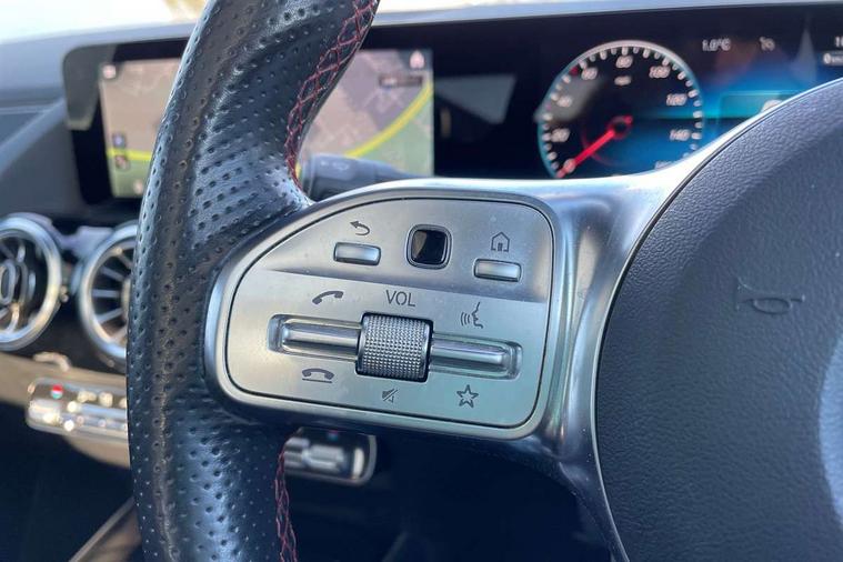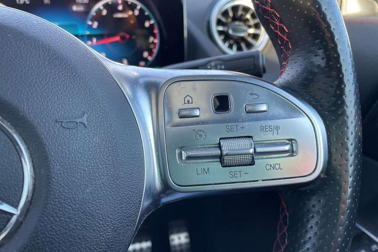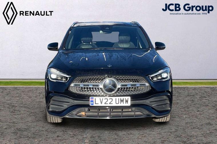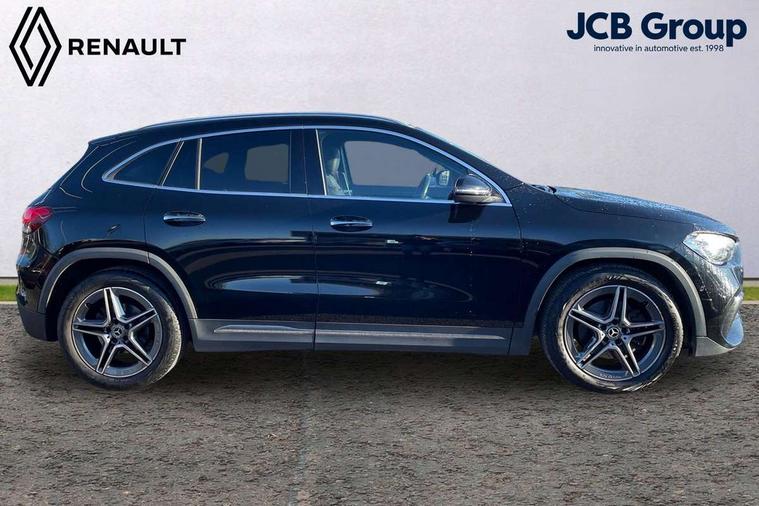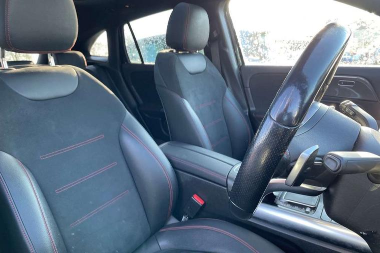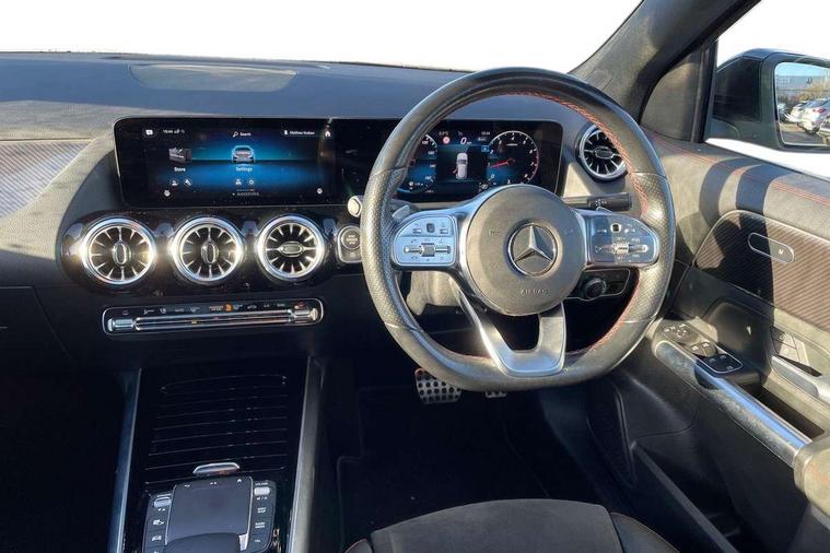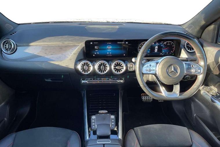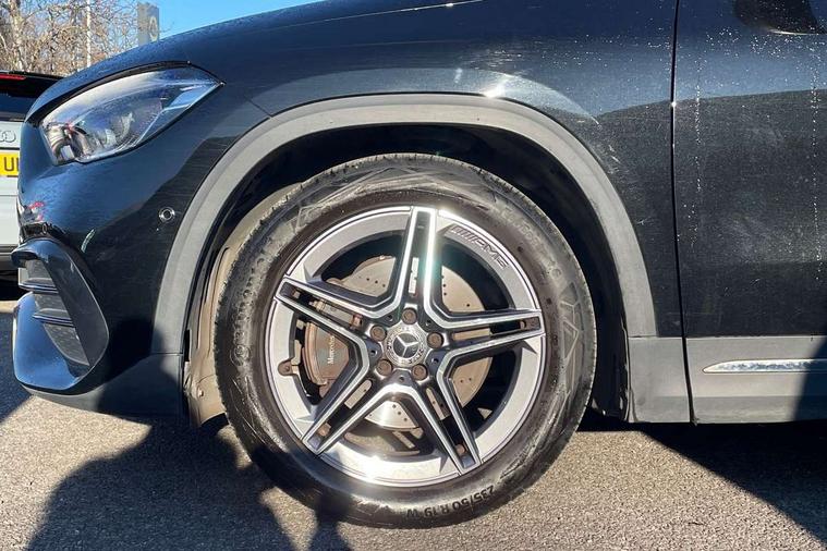 10.25 inch touchscreen central media display, 10.25" Digital instrument cluster display screen, Active lane keeping assist, Attention assist, Direct steering, DYNAMIC SELECT with a choice of driving modes (ECO, Comfort, Sport and Individual), ECO start/stop function, Fluid level warning indicator for fuel, oil, coolant and washer fluid, Hard-disk navigation, Hey Mercedes Voice activation, Lamp failure indicator, Mercedes me connect including emergency call system, accident recovery, breakdown and maintenance management, Mercedes me remote services, Multi function trip computer, Outside temperature gauge, Owners manual and service booklet in English, Pre-installation of private car share, Radio aerial integrated into front and rear windshields, Service indicator (ASSYST), Smartphone integration with Apple CarPlay and Android auto, Status display for rear seat belts in instrument cluster, Traffic sign assist, Lowered comfort suspension, Rear axle multi-link, 2 USB ports (type C) in rear stowage compartment and one in front of center console, Bluetooth connectivity including audio streaming, DAB Digital radio, MBUX multimedia system, Media interface, Mercedes-Benz (225w) sound system with 10 speakers, Adaptive brake lights, Aerial for GPS, Aluminium roof rails, AMG front and rear apron, AMG specific/dual flow exhaust pipes in chrome (non-functional), Automatic headlamp activation, Beltline strips and weather strip in chrome, Black grained claddings with chrome parts, Body colour bumpers, Body colour door mirrors, Body coloured door handles with chrome insert for keyless entry, Car wash function, Dark privacy glass from B-pillar backwards, Electric front windows, Electric rear windows, Electrically adjustable and heated door mirrors with integrated LED indicators, Heated glass rear windscreen + timer control, Heated windscreen wash system, Interior mirror with black reading lamps and frameless, LED daytime running lights, LED third brake light, Matt titanium grey front and rear apron trim, Multibeam LED headlamps with adaptive highbeam assist and cornering function, Panoramic sunroof, Pre-installation for trailer coupling, Rain sensor windscreen wipers, Rear fog lights, Rear side wing doors, Rear wiper, Roof spoiler, Single lamella raditor grille with chrome dotted diamond grille and inlay, 12V power socket in centre console, 3 seat bench in 2nd row, 3 spoke multifunction sports steering wheel in nappa leather with flattened bottom and perforated grip area, 40:20:40 split folding rear seat backrests, Adjustable head restraints, Air conditioning - Two zone thermotronic luxury automatic climate control with display, Ambient lighting in front headrests, AMG floor mats with AMG lettering in front, Artico man-made leather/Microfibre Dinamica upholstery with red contrast stitching, Auto Mercedes-Benz child seat recognition sensor, Black roof lining, Brushed door pulls in silver chrome, Courtesy light in boot, Front centre armrest with stowage, Galvanished gear shift paddles on steering wheel, Heated front seats, illuminated door sills with changeable cover, Illuminated glovebox, Interior lighting - 64 colour Ambient lighting, Leather trimmed gearknob, Luggage net on driver/front passenger seat backrest, Manually height and reach adjustable steering column, Multi-gesture touchpad control on center console, Single front passenger seat, Sports pedals in brushed stainless steel with black rubber studs, Sports seats, Stowage compartment in centre console, Stowage compartment with retractable cover, Sunvisors with illuminated vanity mirrors, Twin front cup holders, Two outer rear seat isofix and top tether child seat fixing points, AMG body styling pack - GLA, Comfort seat pack - GLA Class, Interior lighting with light and sight pack - GLA, Load compartment pack - GLA, Mirror pack - GLA Class, Parking pack - GLA, 3 rear 3 point seatbelts, ABS with Brake Assist, Active bonnet pedestrain safety measure which detects an impact and raises bonnet by 65mm, Active brake assist includes forward collision warning system with autonomous braking, Adaptive brake assist with hold function and hill start assist, Bonnet with power domes, Brake pad wear warning indicator, Childproof locks manually operated for rear doors and electrically operated for rear power windows, Crash responsive emergency lighting, Driver and passenger head and side airbags, Drivers knee airbag, Dual stage driver/passenger airbags, Electronic parking brake, ESP curve dynamic assist, ESP with ASR, Front and rear seatbelt reminder, Front brake callipers with Mercedes Benz logo lettering on front, Front brake discs internally ventilated and perforated, Front passenger seat occupancy sensor, Tyre pressure monitoring system, Warning triangle and first aid kit, Window airbags, Alarm system with immobiliser and interior protection -Thatcham category 1, Keyless Go starting function, Remote central locking and crash sensor with emergency opening function, Urban guard vehicle protection, Vehicle key with decorative surround in chrome, Carbon structure trim, Chrome air vent surrounds, 19" AMG 5 twin spoke light alloy wheels aerodynamically optimised painted in tantalite grey with a high sheen finish, Summer tyres, Tirefit tyre sealant kit,