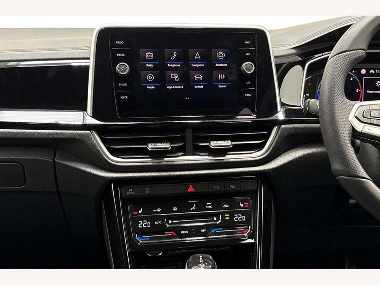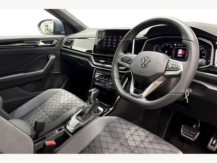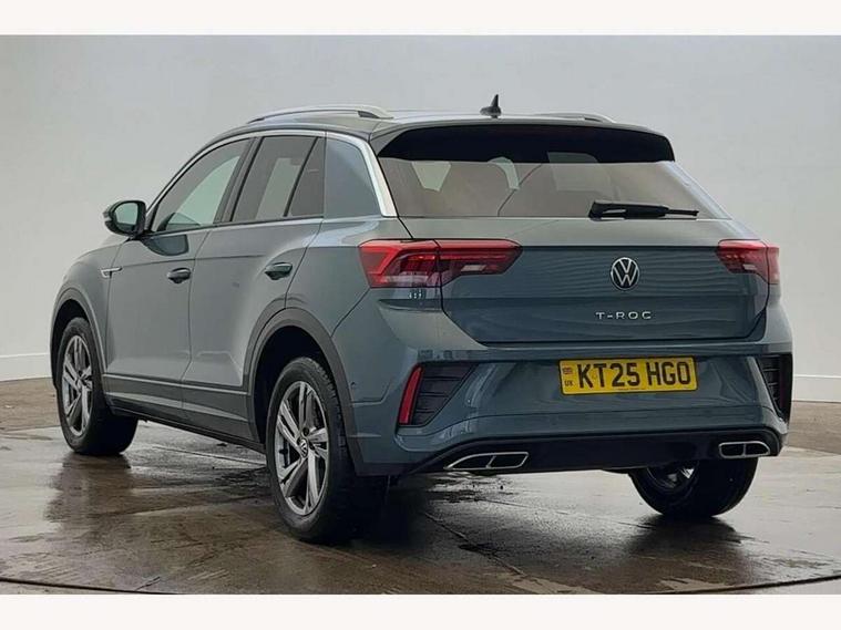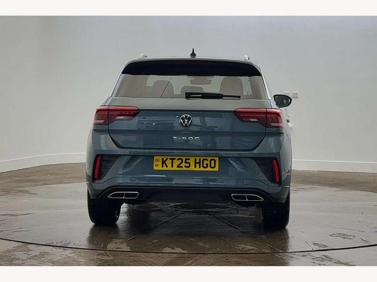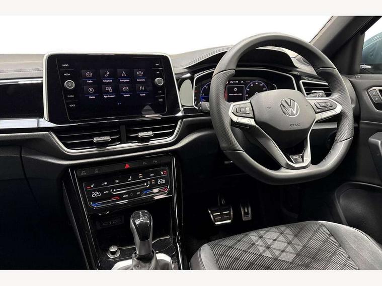 10.25" Digital cockpit pro, Advanced driver attention and drowsiness monitor, Dynamic road sign display, Emergency call service, Lane keeping system Lane Assist, Mobile phone interface, Modified key software - reduce switch off time for key status change to Long no motion, Online services, Park assist including front and rear parking sensors, Service interval indicator, Tailgate/trunk lid release from outside, Think blue trainer driver tips and journey analysis, Warning sound and light for front seatbelts unfastened, Wireless app connect, Battery regeneration during braking, Start/stop function with battery regeneration, DAB Digital radio, Diversity antenna for FM reception, Front and rear 6 speakers, Music playback - MP3, WMA and AAC files, Premium USB cable in choice of either Apple or Android smartphone compatibility, SD card slot, Simultaneous pairing of 2 compatible mobile devices, Title and cover art display, We Connect and We Connect Plus functionality, Auto dimming interior rear view mirror, Automatic hazard lights activation under emergency braking, Automatic headlight control with LED separate daytime running lights with coming/leaving home function, Body coloured exterior mirror housings and door handles, Electrically adjustable and heated door mirrors, Extended roof spoiler, Exterior mirrors aspherical on driver side, convex on front passenger side, External USB type C socket and charging sockets, Front windscreen wiper with intermittent wipe and 4 position delay, Heated rear window, LED 3rd brake light, LED rear combination lamps, LED rear number plate lights, Power windows with comfort operation and circuit breaker, Privacy glass for rear side windows and rear window, R-Line design body coloured bumpers, Rain sensor, Rear exhaust tailpipe, Rear fog light on one side and reversing lights on both sides, Rear side wing doors, Rear wash/wipe with intermittent wipe setting, Remote electrically foldable door mirrors, puddle lights and reverse activated passenger's door mirror, 12V power socket in centre console, 3 rear head restraints, 3 seat bench in 2nd row, 4 load lashing points in luggage compartment, Air care climatronic air conditoning system with active combination filter and 2-zone temperature control, Black roof lining, Chrome plated decorative trims, Chrome plated radiator grille inserts, air vent surrounds and light switch surrounds, Door and side trim panel with leatherette insert, Front + rear carpet mats, Front centre armrest, Front cupholders x 2, Front footwell illumination, Front reading light, Front scuff plates with R Line logo, Front seat back storage pockets, Glove compartment door with light, Instrument lighting, white adjustable panel illumination, Interior ambient lighting and surround lighting, Interior light delay, Isofix child seat preparation, Leather gearshift handle, Load-through provision with cup holder when folded down ('Unsplit rear seat bench, split folding backrest, with centre armrest), Luggage compartment lighting, Single front passenger seat, Stainless steel pedals, Storage compartment in left and right luggage area, Storage compartment in rear doors, Storage compartments in driver and front passenger doors, Sunvisors with illuminated vanity mirrors, Variable boot floor, height adjustable and removable, Driver assistance pack without proactive passenger protection - T-Roc, 3 point height adj front seatbelts + pretensioners, 3 point seatbelts in outer rear with ECE label, ABS, Child locks on rear doors, City emergency braking and pedestrian monitoring, Driver and front passenger airbag with front passenger airbag deactivation, Driver and front passenger safety-optimised head restraints, Drivers seatbelt reminder, Electronic parking brake, Electronic Stability Control (ESC) inc EDL (Electronic Differential Lock) and ASR (Traction Control), Front and rear passengers curtain airbag system including front side airbags, Hill start assist, Predictive pedestrian protection, Rear disc brakes, Two tone horn, Tyre pressure loss indicator, Volkswagen roadside assistance, Piano black decorative inserts in dashboard and front door trim panels, Trims for alloy wheels,