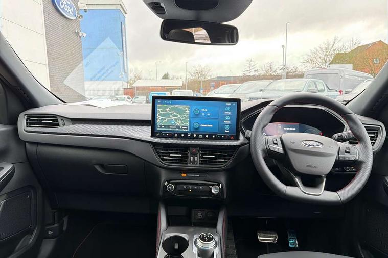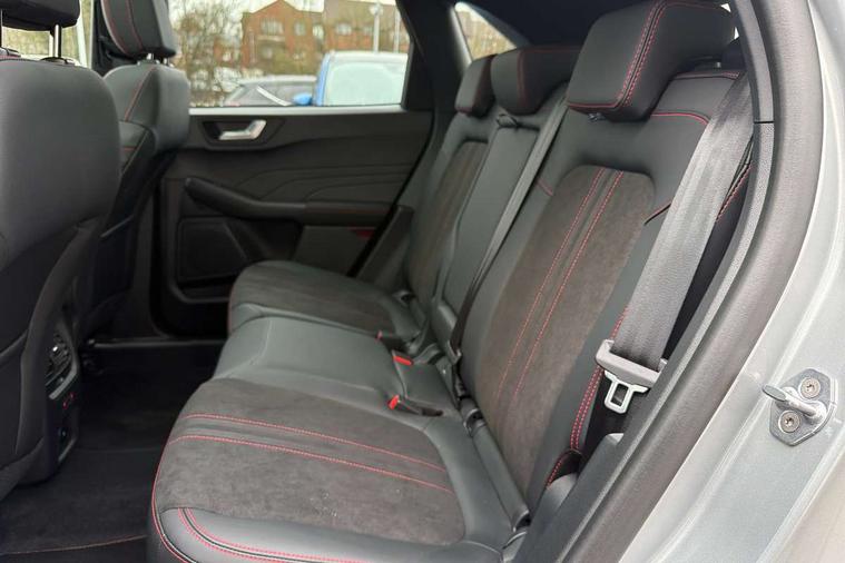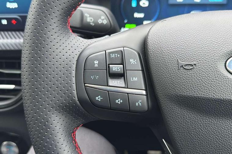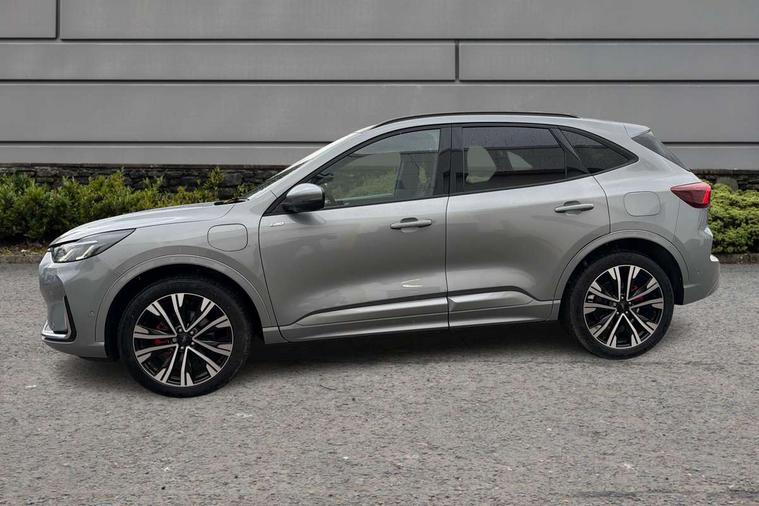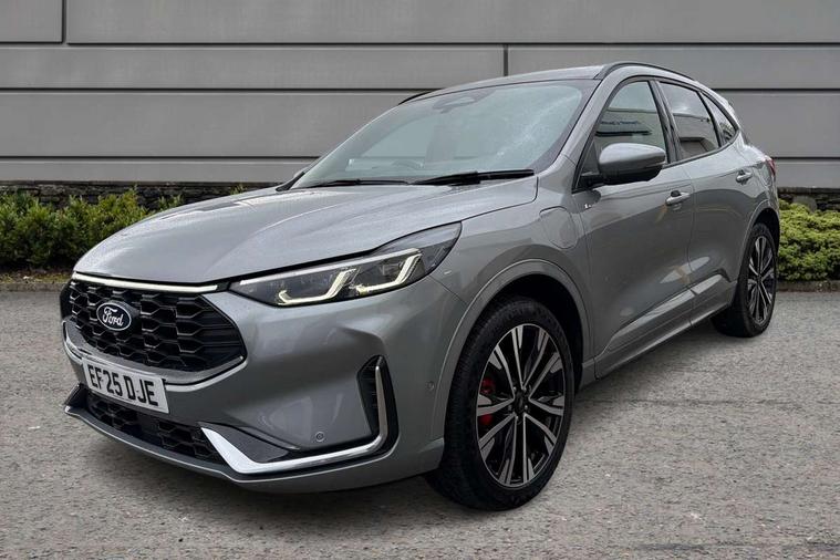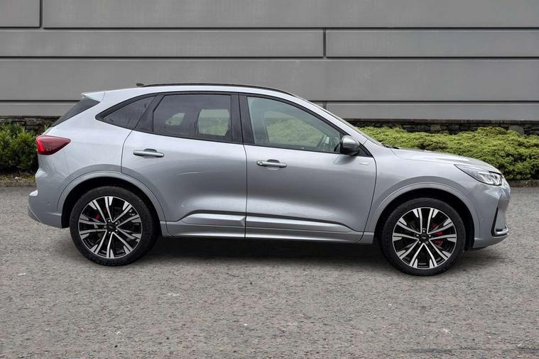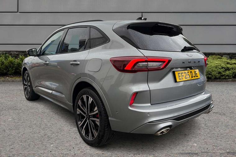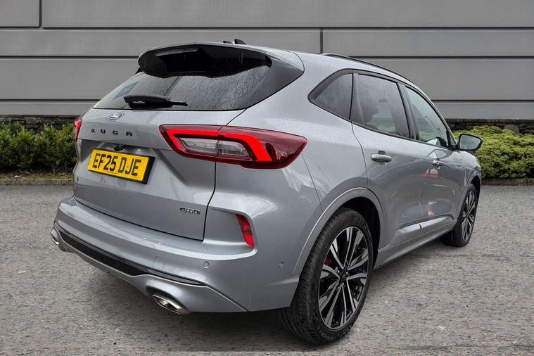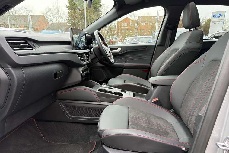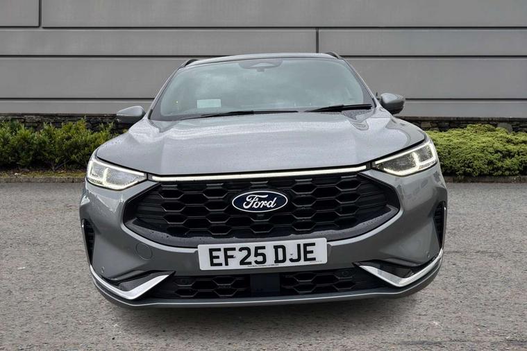 12.3" digital colour instrument cluster, 360 degree view camera, e-Call (emergency call), Ford easy fuel, Ford SYNC 4 Navigation with 13" touchscreen, DAB radio, emergency assistance, Andriod Auto/Apple CarPlay, 5G modem & Ford Pass connect, Front and rear parking sensors, Hands free power tailgate, Lane centering assist, Lane keeping aid with lane departure warning, Power assist steering, Selectable drive modes, Service interval indicator, Sports suspension, Twist beam rear suspension, B&O premium audio system with 10 speakers, subwoofer and 2 USB ports, Auto headlamps with high and low beam, Black roof rails, Body colour bumpers, Front LED fog lamps, Large rear spoiler, LED daytime running lights, LED rear lights, Pop out door edge protectors, Power front/rear windows with global close, Power heated folding door mirrors with puddle lights, memory function and camera, Power opening panoramic roof, Quickclear heated windscreen, Rain sensing wipers, Rear privacy glass, Rear side wing doors, Rear wiper, ST-Line body styling kit, Third brake light, 12 way ergonomic power adjust driver's seat with memory (AGR certified), 12 way ergonomic power adjust passenger seat (AGR certified), 2nd row sliding seats, Electronic automatic temperature control (EATC), Front and rear head restraints, Partial premium touch sensico upholstery, Rear centre head restraint, Single front passenger seat, Sports seats, Driver assistance pack with intelligent adaptive cruise control - Kuga FHEV/PHEV, Winter pack - Kuga, 3x3 point rear seatbelts, Airbags - front driver/passenger, front and rear curtain, Drivers knee airbag, Dynamic brake support, Electronic stability control (ESC) and ABS, Evasive steering assist, Ford MyKey Gen 2 safety system, Manual child proof rear door locks, Pre collision assist with autonomous emergency braking, Rear seat Occupancy alert, Red brake calipers, Tyre pressure monitoring system, Engine immobiliser, Keyless entry and Ford power start button (Keyless start), Locking wheel nuts, Remote powered central double locking doors, Thatcham category 1 alarm,