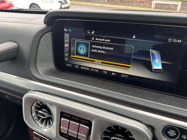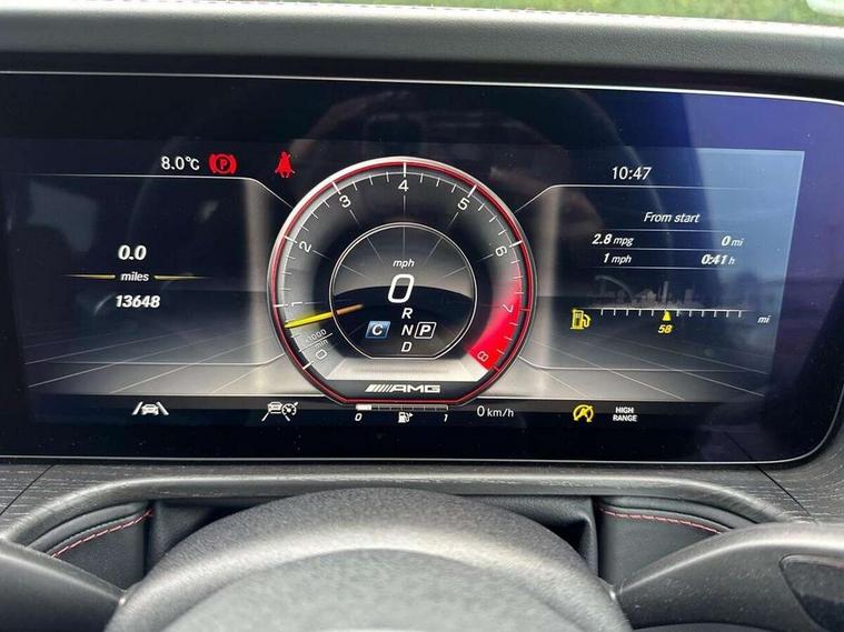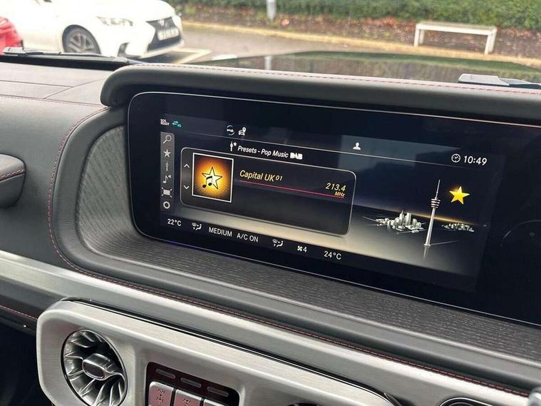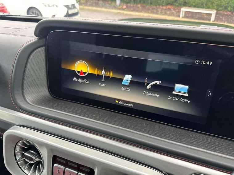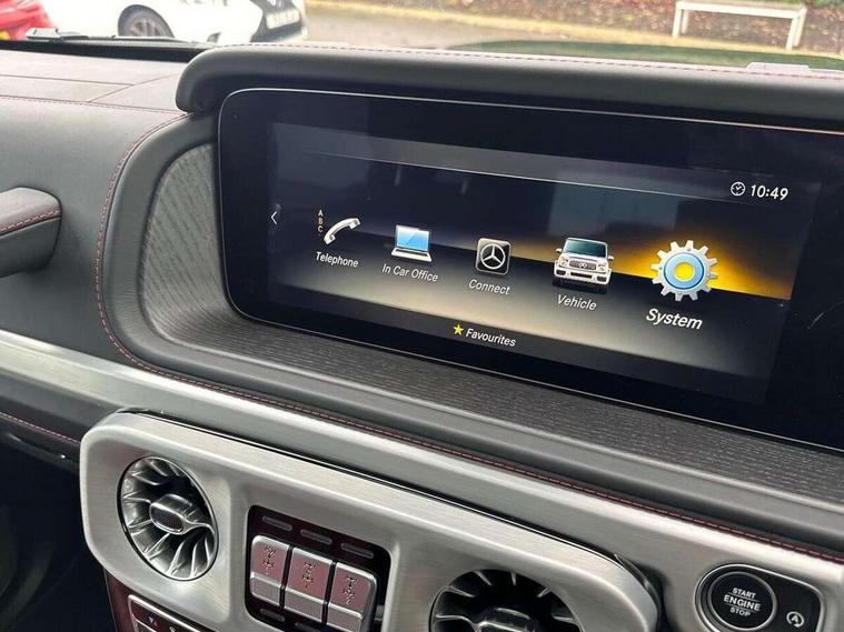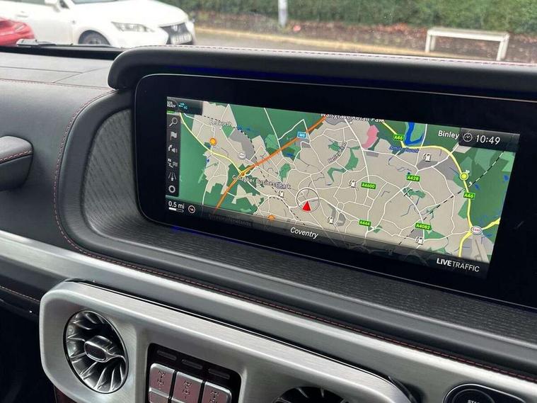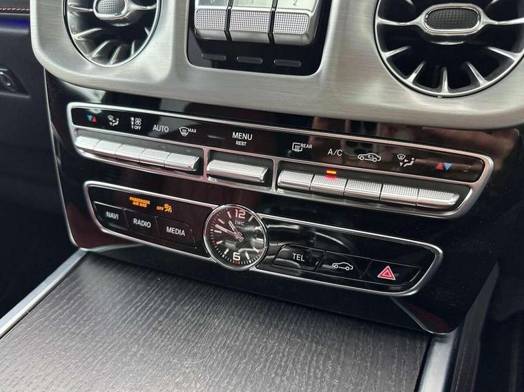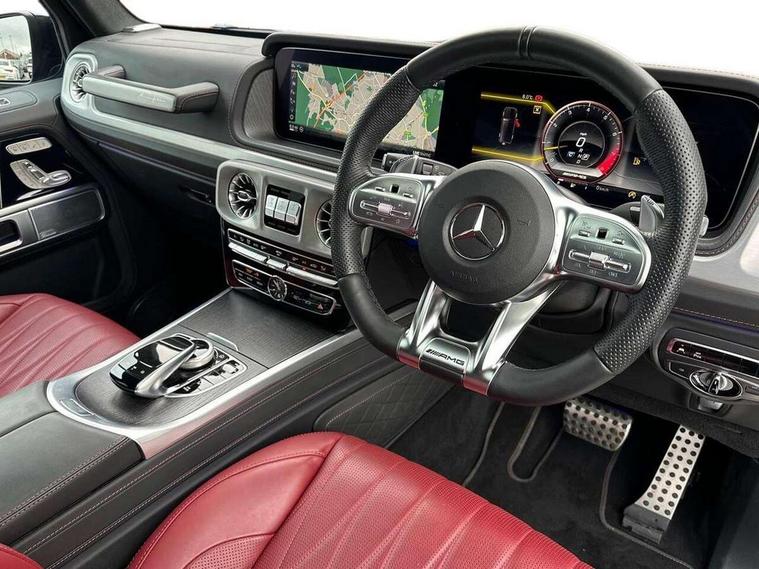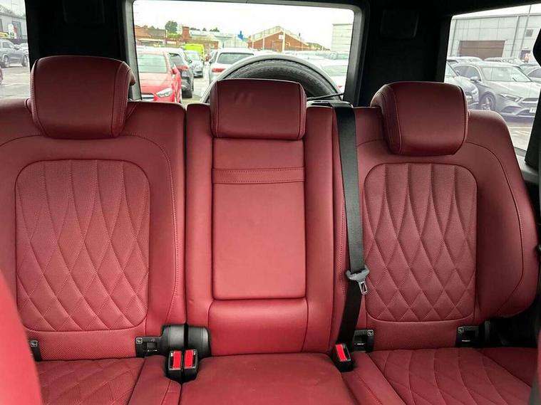 360 degree parking camera, Active lane keep assist, AMG DYNAMIC SELECT with ECO start/stop and 5 modes (comfort, slippery, sport, sport+ and manual), AMG instrument cluster with dual bonded 12.3" widescreen displays, AMG specific IWC design analogue clock, Attention assist, Bluetooth interface for hands free telephone, COMAND online HDD Nav with media interface, radio/CD/DVD/MP3, 12.3" screen, linguatronic voice control, Communications module (LTE), Mercedes connect me, Mercedes-Benz emergency call, Parking assistance PARKTRONIC, PAS, Preinstallation for rear seat entertainment, Service indicator (ASSYST), Smartphone integration with Apple CarPlay and Android auto, Touch pad controller for COMAND online, Traffic sign recognition, Trip computer, 4MATIC permanent four wheel drive, AMG Ride Control suspension, AMG SPEEDSHIFT 9G Tronic sports transmission with cruise control and variable speed limiter, Differential lock, Electronic selectable low range gearing, Low range gear reduction (Electronically selectable while driving), Petrol Particulate Filter, Aux-in socket, Burmester surround sound system with 16 speakers, DAB digital radio module, 3rd brake light, Adaptive highbeam assist plus - automatic low high beam switching, AMG bodystyling with exclusive Mercedes AMG G 63 front aprons with cooling air intakes and AMG flared wheel arches in vehicle colour, AMG performance exhaust system, selectable , left and right two chrome trimmed twin tailpipes, Automatic headlamp activation, Automatically dimming rear view mirror, Dark tinted heat insulated glass, Door mirror memory, Door mirrors - Electrically adjustable/heated/integrated indicators, front area lighting and automatically dimming driver's mirror, Electric sunroof sliding, with one-touch opening, Front and rear electric windows, Heated windscreen, LED daytime running lights, LED tail lights, Multibeam LED headlights with anti-dazzle feature, Privacy glass - Dark glass from B-pillar backwards, Rain sensor windscreen wipers, Rear side wing doors, Rear wiper, Running boards, Stainless steel spare wheel cover, Tail lights featuring LED technology, Trailer coupling with ESP trailer stabilisation, V8 BITURBO lettering, 1/3 to 2/3 split folding rear seats, 12V socket in centre console, rear and load compartment, 2 cup holders in front and rear, 3 seat bench in 2nd row, 3 spoke flat bottom AMG Performance steering wheel in nappa leather, Ambient lighting with 64 colours and projection of brand logo, AMG floor mats with AMG lettering, AMG metal badge on front seat backrest, AMG steering wheel buttons, Centre armrest between front seats with integrated stowage compartment, Designo dinamica microfibre roof lining in Black, Door centre panels, door trim, armrests in doors with nappa leather, Electric front headrests with memory, Electric front seats with memory function, Electrically adjustable steering column, with automatic adjustment for entry/exit, Front centre armrest with storage compartment, Heated front seats, Heated rear seats, Heated steering wheel, Illuminated AMG door sill panels in brushed stainless steel, Ionisation of interior air including fine particle activated charcoal filter system, Load protection net, Luggage compartment cover, Memory for steering wheel, Rear head restraints, Rubber mat for load compartment, Silver air vents, Silver chrome steering wheel trim with AMG lettering + silver aluminium shift paddles + 12 o clock marking and touch control buttons, Single front passenger seat, THERMOTRONIC automatic climate control, Driving assistance pack - G Class, Stowage space pack - G class, 3x3 point rear seatbelts, ABS with Brake Assist, Active brake assist, Adaptive brake with hold finction, priming and dry parking in the wet, Airbags - windowbags, AMG high performance braking system with internally ventilated and perforated brake discs, Driver/Front Passenger airbags, Electronic four wheel traction control, ESP with ASR, Front side airbags, Hill start assist, i-Size and ISOFIX rear child restraint system, Pre-safe system for anticipatory occupant protection, Rear door child safety locks, Rear side airbags, Red painted AMG brake calipers, Seat belts, 3-point design in black, Seatbelt pretensioners, Tyre pressure monitoring system, Anti-theft alarm system/interior protection with tow-away protection and interior monitoring systems, Immobiliser, Keyless Go access/ignition system, Remote central locking, G manufaktur black piano lacquer trim, Full size spare wheel,