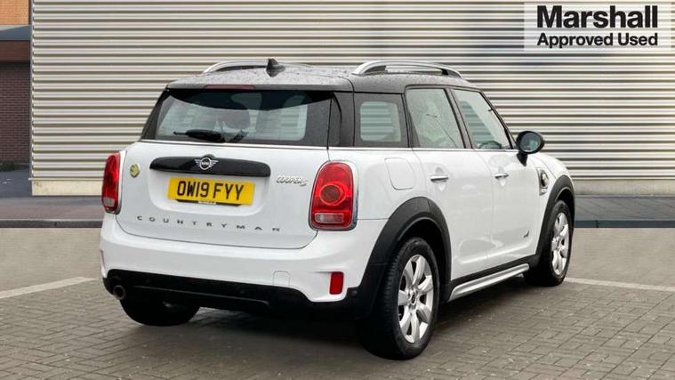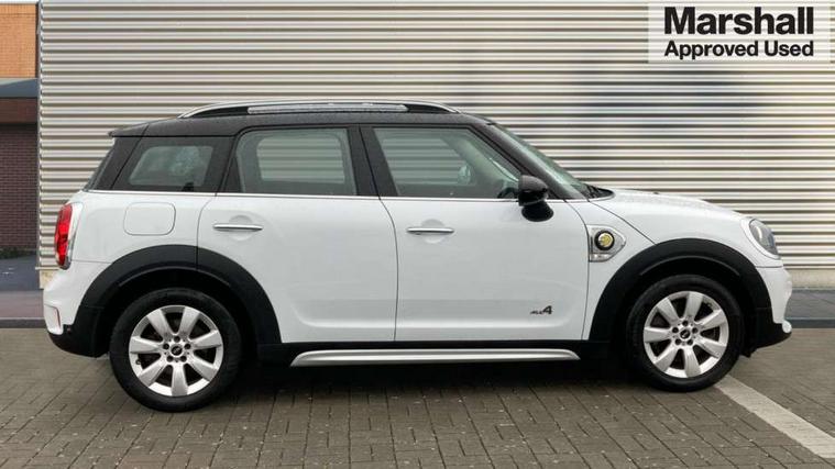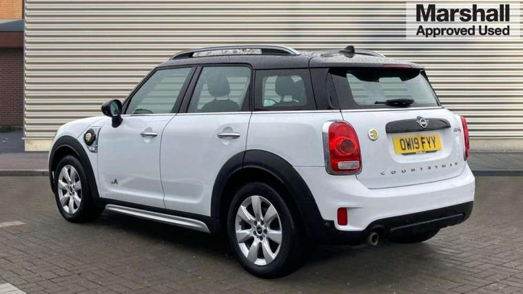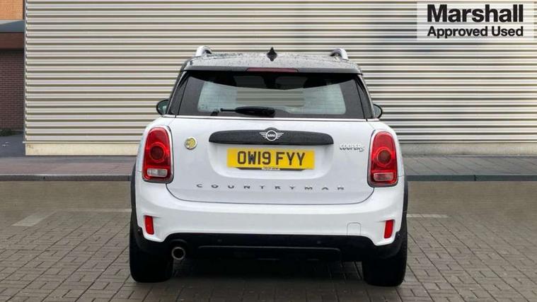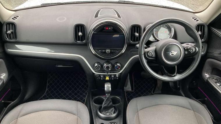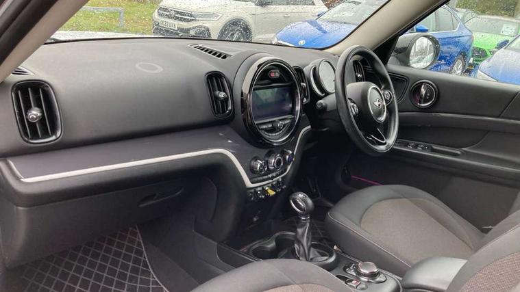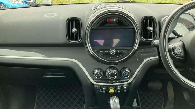 Apple CarPlay preparation, Brake pad wear indicator warning light, Central display with LED ring and 6.5" colour touch screen, Connected driver, DTC - Dynamic traction control, eDrive Services, Exterior temperature gauge, Intelligent emergency call, MINI Driving Modes - centre toggle switch to control driving setting (sport, mid and green), MINI remote services, MINI TeleServices, Navigation system, On board computer, Personal Profile, Real time traffic information, Service interval indicator, Servotronic speed sensitive power steering, Electronic differential lock, Performance Control, Auxiliary input socket, DAB digital radio module, MP3 compatible radio/single CD player, Radio visual boost, Anti dazzle rear view mirror, Body colour scoop integrated into engine- compartment lid, Chrome door handles, Chrome exhaust tailpipe, Chrome headlight surround, Chrome plated radiator grille, Chrome side scuttle, Chrome window surround, Electric front windows + one touch + anti-pinch, Electrically adjustable door mirrors, Follow me home headlights, Green tinted glass, Heated door mirrors/heated windscreen washers, Heated rear window with automatic switch off, Metal look door sill finishers, Rain sensor including auto headlights activation, Rear wiper, Roof spoiler, White indicator lights, 12V power point front, 2 cupholders in front centre console, 4 lashing points to secure luggage, 40:20:40 split folding rear seats, Centre console storage box, Charging cable, Chrome interior door handles, Driver/passenger sunvisors, Front and rear headrests, Front interior light, Front passenger grab handle, Front seat backrest storage nets, Heater with recirculation function, Height/reach adjust steering wheel, Isofix rear child seat preparation, Luggage compartment lighting, Multifunction steering wheel, Rear grab handles, Sensatec gearshift and handbrake, Storage compartments in doors, Toolkit in luggage compartment, Under floor storage in luggage area, Interior lights pack - Countryman, MINI Excitement Pack - Countryman, 3 point automatic seatbelts, 3 point seatbelts on all rear seats, ABS, Cornering brake control (CBC), Crash Sensor - activates hazard/interior lighting + unlocks doors, Driver and passenger airbags, Driver and passenger side airbags, DSC - Dynamic Stability Control, Electronic brake force distribution, Electronic parking brake, Front curtain airbags, Front passenger airbag deactivation, Fuel cut off safety device, Hill start assist, Pyrotechnically pre-tensioned front seatbelts, Tyre pressure warning, Automatic door locking, Keyless start, Locking wheel bolts, RF remote control central locking, Second remote key, Thatcham category 1 alarm + immobiliser,