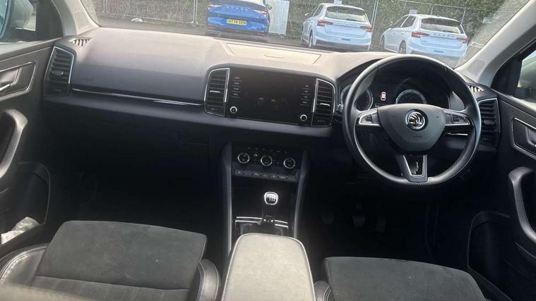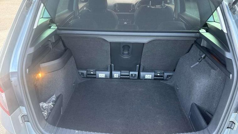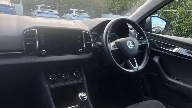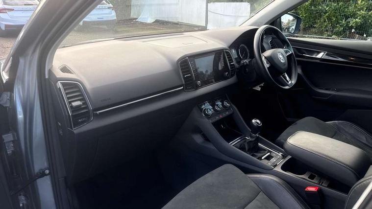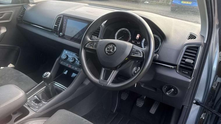 Drive mode selector, Driver alert system, Driver fatigue sensor, Driver profile selection, Multifunction colour trip computer, Outside temperature gauge, Rear view camera, Service interval indicator, Start/stop system with regenerative braking, DAB radio with Bluetooth, SD card slot, USB connection, Acoustic glass, Aero front windscreen wipers with intermittent function, Automatic headlight control system, Black electric window control buttons, Body colour door mirrors and handles, Body coloured bumpers, Electric front and rear windows with child proof lock, Full LED headlights + adaptive front light system + LED daytime running lights and front cornering fog lights, Headlight washers, Heated rear windscreen, LED rear lights with high functionality, Light assistant (coming/leaving home/tunnel light), Privacy glass, Safety reflectors on front doors, Third brake light, 1.5 litre bottle holders in driver and front passenger door panels, 12V socket in boot, 12v socket in front centre armrest with storage compartment and rear air vents, 2 Folding hooks and nets in boot, 2 Front readings lights for driver and passenger, 3 rear height adjustable headrests, 4 foldable roof handles with rear coat hooks, 4 lashing points on luggage floor, Backrest release, Cargo elements in boot, Chrome inner door handles, Dual zone climate control, Folding tables on the front seat backrests, Front head restraints, Front seat and rear pockets, Height adjustable front three point seats belts with tensioners, Height adjustable passenger seat, Height/reach adjust steering wheel, Ice scraper, Illuminated and cooled glovebox, Illuminated luggage compartment, Isofix child seat preparation outer rear, Net programme in boot, Pen holder, Pollen filter, Rear boot cover, Rear reading lights, Rear seats fixed folding and divided 60:40, Removable LED torch in the boot, Retractable parcel shelf attachable to tailgate, Safety vest holder, Storage box in upper central dashboard closed, Storage compartment below the passenger seat, Sunvisors with illuminated vanity mirrors, Textile floor mats, Umbrella under passenger seat, VarioFlex seats with retractable parcel shelf, Chrome roof rails + chrome pack - Kodiaq, Airbags - Front side, head, knee and curtain, Automatic door unlocking in case of crash, Automatic fuel cut off in case of crash, Driver airbag, Electronic parking brake with auto hold function, Emergency rear braking signal, ESC including ABS, MSR, ASR, EDS, HBA, DSR, RBS, MKB and traction control, Front assist radar scanning of the space in front of the car with automatic braking, Hill hold control, Passenger airbag with switch-off function, Pedestrian monitor, Seatbelt reminder signalisation and pretensioner for all seats, Three point seatbelts rear, Two tone horn, Tyre pressure display, Tyre pressure monitor, Alarm with interior monitoring, back up horn and tilt sensor with safe function, Electronic engine immobiliser, Keyless entry and keyless start with safe system, Remote central locking with 2 remote folding keys, Chrome framed air vents, Storage on wheel cover,