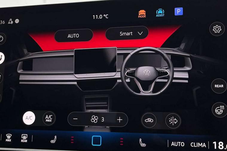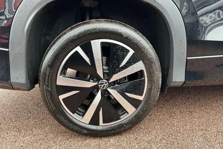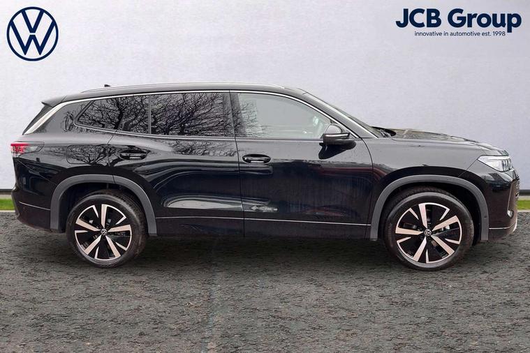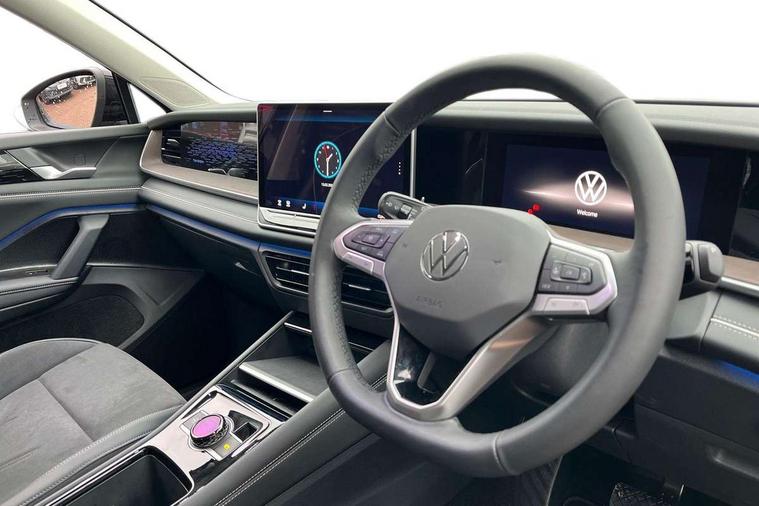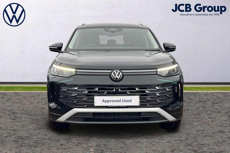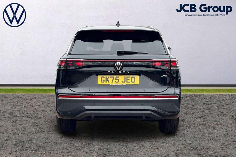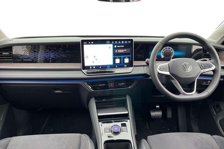Adaptive cruise control (ACC), Digital Cockpit Pro - 10.25" high resolution dash display screen with customisable menus and information, Driver alert system, Driver attention monitoring system, Dynamic road sign display, E-Sim card for online connectivity, eCall emergency call system, Lane change system, Side assist, Rear traffic alert and Exit warning system, Multifunction front facing camera, Oncoming vehicle braking when turning including swerve support, Start/stop system with regenerative braking, Voice activation spoken voice commands for telephone and navigation system, Warning signal and warning light for front and rear seatbelts not fastened, Wireless App-Connect, Front wheel drive, Digital radio reception (DAB), Diversity antenna for FM reception, Auto dimming interior rear view mirror, Automatic headlight control system, Body colour door handles, Body coloured bumpers and air intake with chrome trim, Body-coloured exterior mirror housings, Chrome moldings on the side windows, Coming/leaving home lighting function, Dynamic headlight range control with dynamic cornering light, Exterior mirrors convex on the left and aspherical on the right, Heat insulating glass in side and rear windows, Illuminated Volkswagen logo rear with animation, Laminated safety glass from B-pillar backwards 90% tinted, Laminated safety glass windshield, heat insulating, LED 3rd brake light, LED separate signature day time running light, Puddle lights, Rain sensor windscreen wipers, Rear fog light on one side, reversing light on both sides, Rear side wing doors, Rear wiper, Reverse activated passenger's door mirror, Surround lighting with welcome light, Volkswagen logo in front, illuminated lighting animation with wake up/goodbye scenario and illuminated door handles, 10 colour interior ambient lighting, 12V outlet in center console rear and in luggage compartment, 3 rear headrests, 3 rear seat bench in 2nd row, backrest split folding with centre armrest and 2 seats in 3rd row of seats, Carpet mats, front and rear, Centre console with illuminated storage compartment with sliding cover and two drinks holders, Chrome elements on the mirror switch and power window switches and door pulls, Door and side trim panel featuring foam film with leatherette insert, Flat luggage compartment floor, Front centre armrest, Front scuff plates in aluminium, ISOFIX anchors for child seats on outer rear seats and front passenger seat compatible with i-Size, Mechanical rear seat release, Power adjustable lumbar support in front, Single front passenger seat, Sports comfort seats in front, Sun visors with illuminated vanity mirrors, Comfort package with park assist pro - Tayron, Driver assistance package - Tayron, 3 Point seat belts in front with pretensioners, 3 point seatbelts in outer rear with ECE label, Autonomous emergency braking front assist with pedestrian and cyclist monitoring, Driver and front passenger airbag with front passenger airbag deactivation, Electronic parking brake with auto hold, First aid kit with warning triangle and safety vest, Front and rear curtain airbags, Front and rear side airbags, Front centre airbag, Front disc brakes, Hill start assist, Rear disc brakes, Two tone horn, Decorative material set Elegance with inserts in ornamental wood ash in the dashboard, Interior door handle in matte chrome,