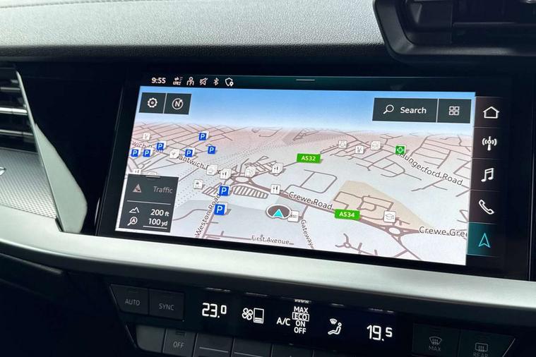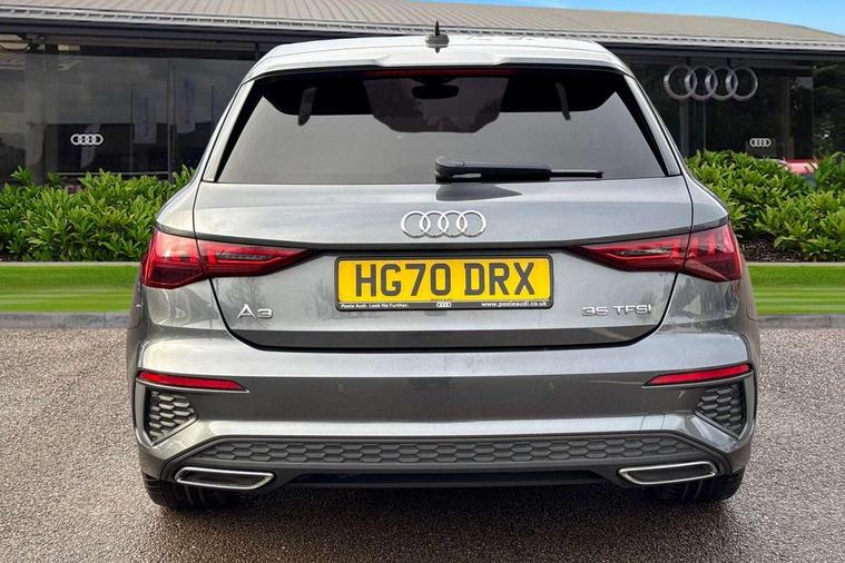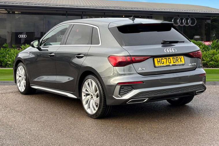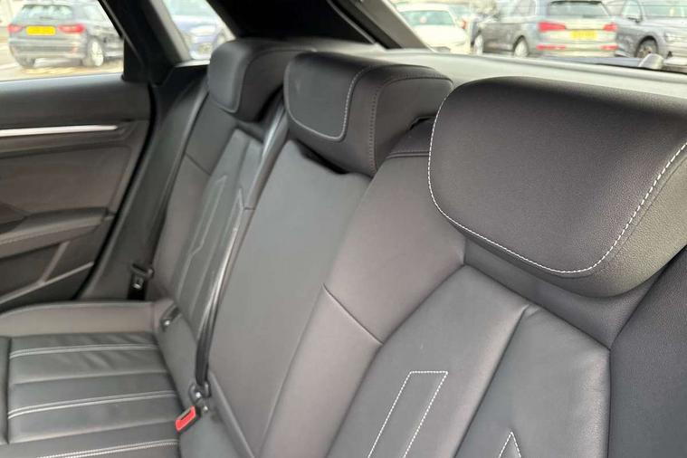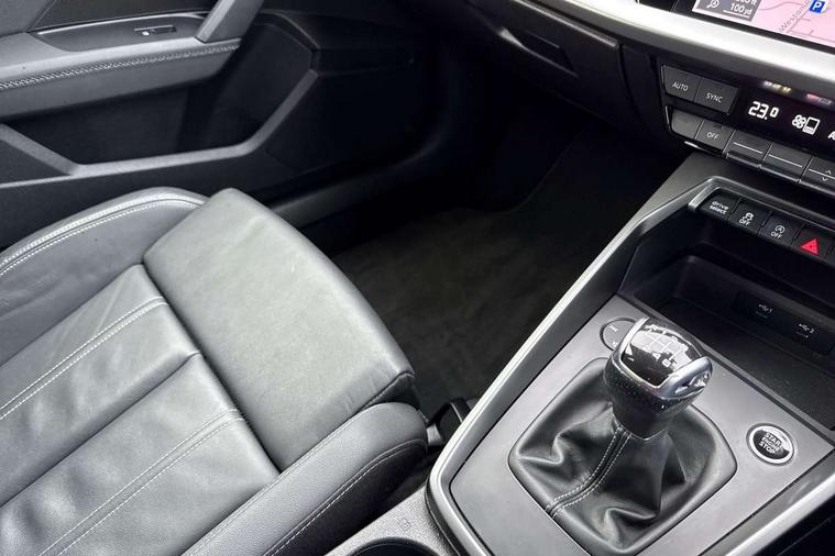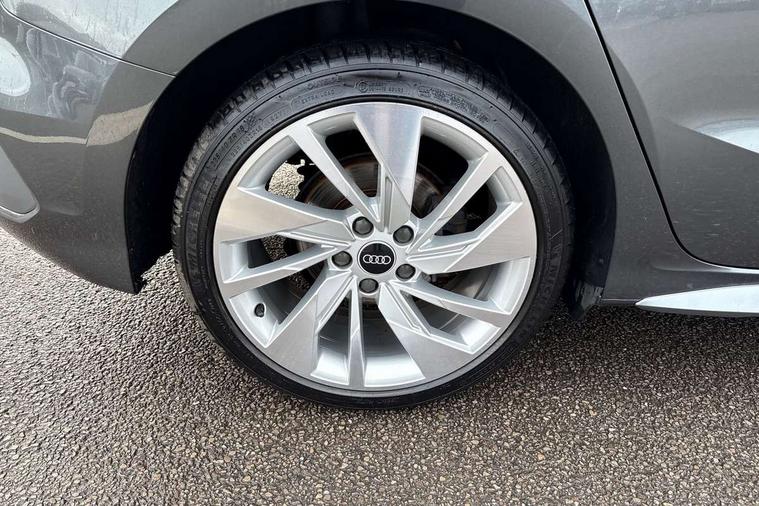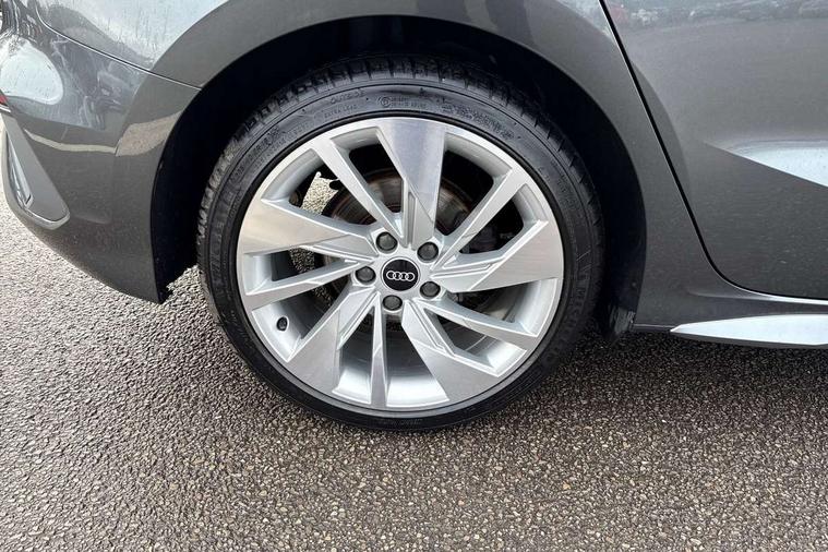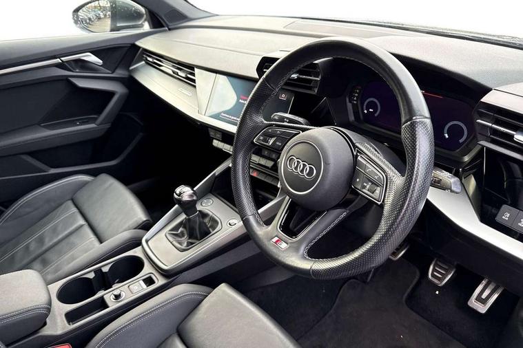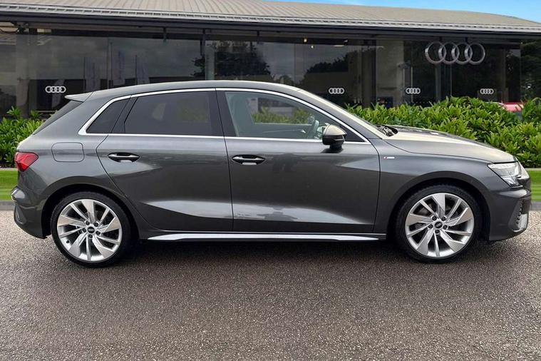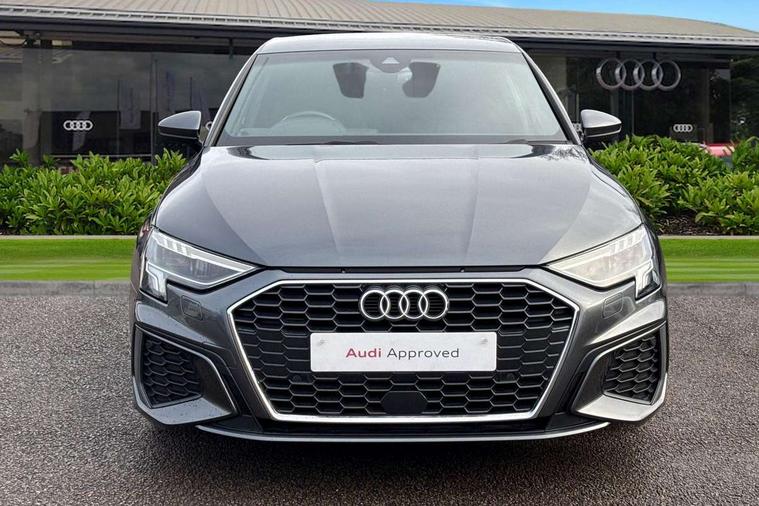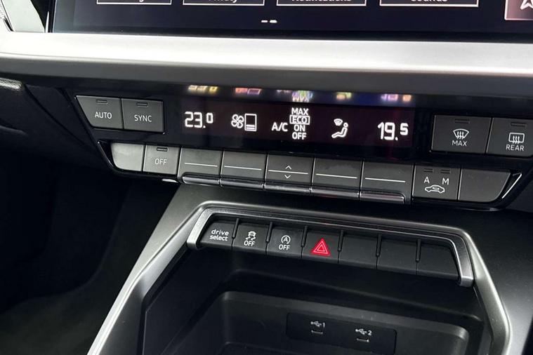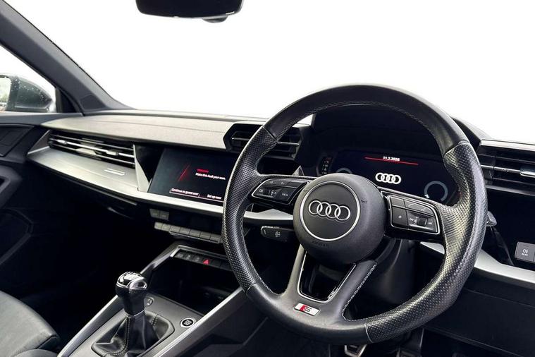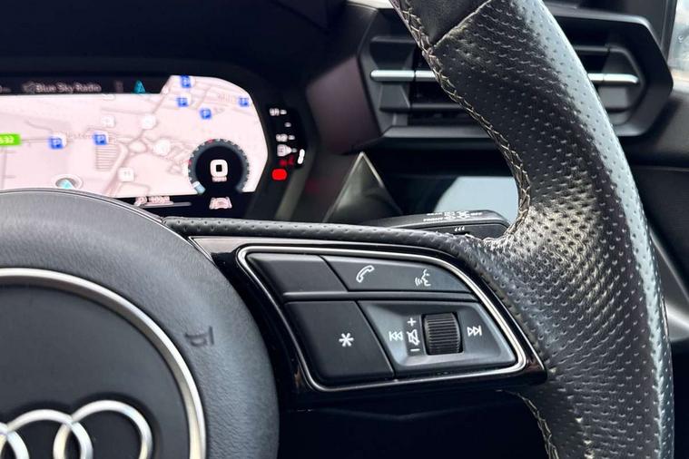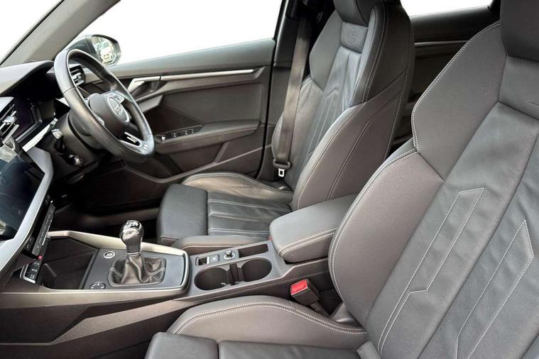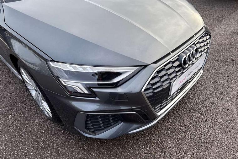 Audi connect emergency call and service, Audi drive select (Auto, Comfort, Dynamic, Efficiency and Individual), Audi smartphone interface, Audi Virtual Cockpit - 10.25" digital and colour instrument cluster, Automatic start/stop system with recuperation, Bluetooth interface, Collision avoidance assistant, Cruise control, Electromechanical power speed sensitive steering, Lane departure warning system, MMI Navigation Plus with high resolution 10.1" colour touch screen display, Rear parking sensors, Service indicator, Trip computer, Voice control system with natural language interaction, 1xUSB-A and 1xUSB-C connection, 6 passive loudspeakers, DAB Digital radio, Acoustic glass windscreen, Aluminium window trim, Auto dimming frameless rear view mirror, Body colour exterior mirrors, Electrically adjustable/heated/folding/auto dimming door mirrors with integrated LED indications + kerb view function for passenger side, Front electric windows, Illuminated aluminium inserts front door sills with S logo, LED daytime running lights, Light and rain sensors, Privacy glass - dark tinted rear window, rear door and side windows, Rear electric windows, Rear side air outlets in grained matt black, Rear wiper, S line bumpers, S roof spoiler, 12V socket and storage compartment in front centre console, 40/20/40 split folding rear seat bench with cupholder, Black cloth headlining, Dual zone electronic climate control, Front and rear centre armrest in leather, Front and rear headrests, Front/rear floor mats, Height and reach adjustable steering wheel, Interior lighting - glove compartment light and right hand side, Luggage compartment floor covering, Manual boot compartment lid, Manually adjustable front seats, Seat side bolsters, Stainless steel pedals and front footrest, Twin leather upholstery with front sports seats S embossed logo, Aluminium interior elements pack - A3 Sportback, S line styling pack - A3 Sportback, 3x3 point rear seat belts, Driver and front passenger airbag with passenger airbag deactivation, Electronic Stabilisation Control (ESC) including ABS, ASR and EDL, First aid kit with warning triangle and 2 safety vests, Front side airbags with head airbags and interaction airbag, Hill hold assist, Pre-sense front with pedestrian and cyclist detection, Seatbelt monitoring, Tyre pressure loss indicator, Anti theft alarm, Anti-theft wheel bolts, Electronically operated child lock, Immobiliser, Remote control central locking, Accent surfaces in the dashboard and centre console in platinum grey silk effect paint finish, Dark spectrum aluminium inlays,