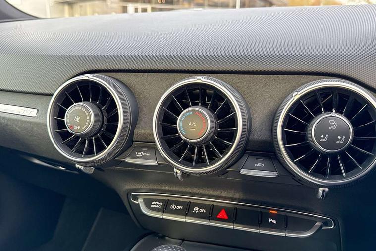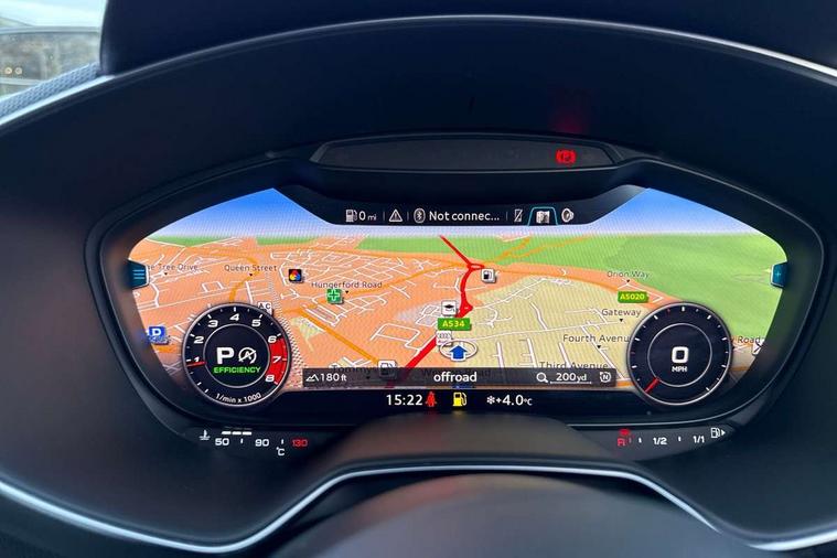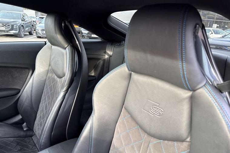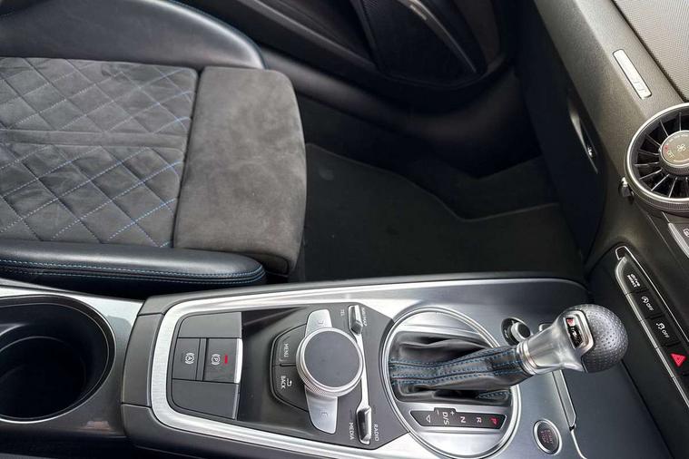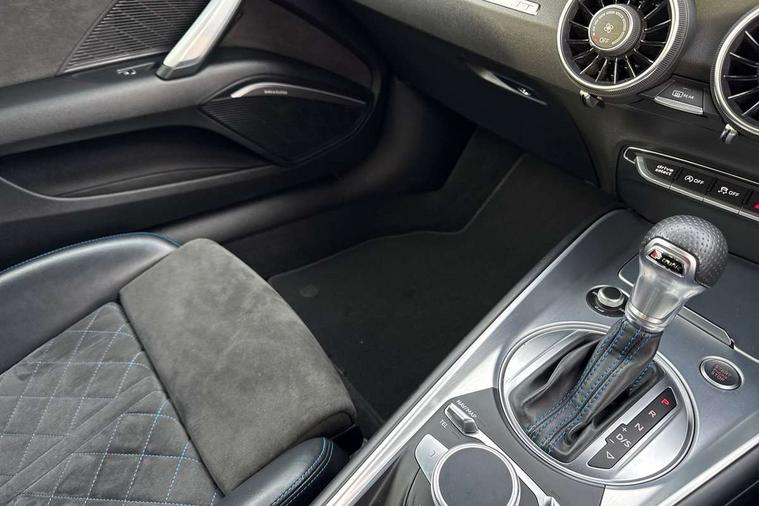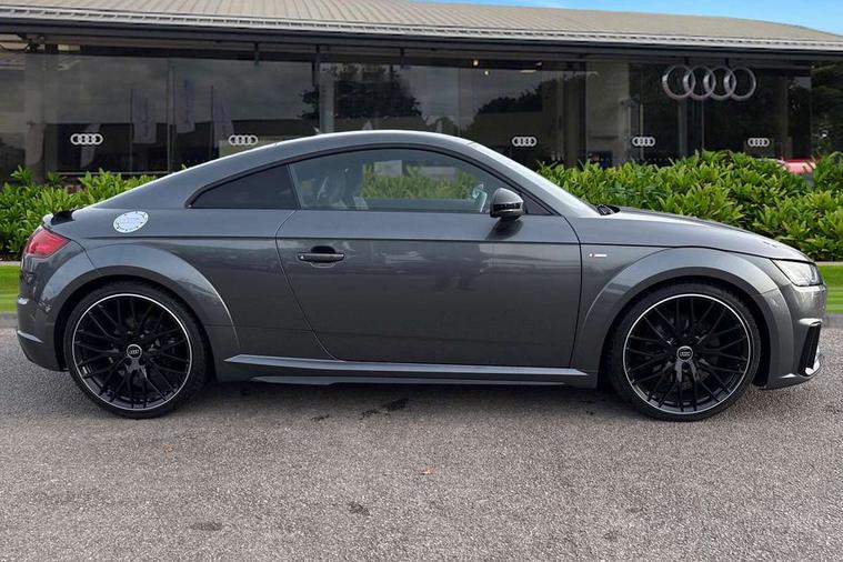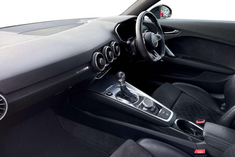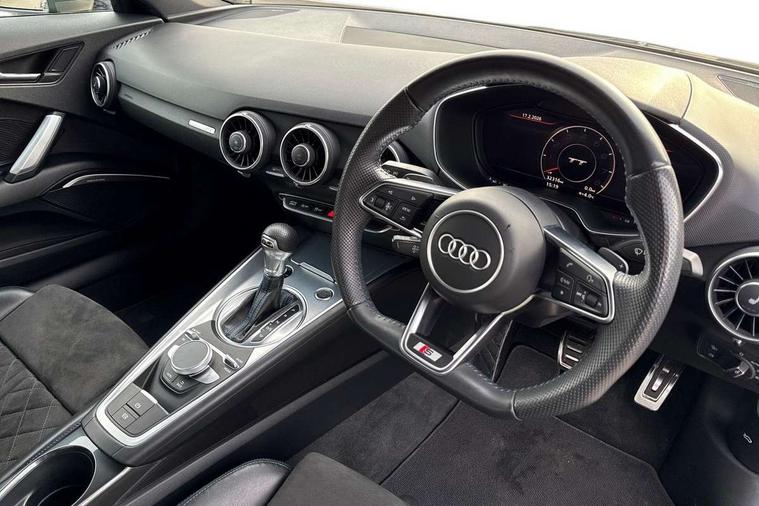 Audi drive select with 4 Pre configured modes, Audi virtual cockpit - 12.3" high-resolution LCD display with fully customisable instrument cluster, Cruise control + speed limiter, MMI touch panel, Mobile phone preparation with bluetooth interface, Progressive power assisted steering, Service interval indicator, Start/Stop system with energy recuperation, TP memo, S line sports suspension, AM/FM radio, Audi music interface, Bluetooth audio streaming, DAB Digital radio, MMI Radio with CD player and SD/XC card slot, Auto dimming rear view mirror, Auto headlight range control, Black chrome tailpipe, Black door mirrors, Dark privacy glass from B-pillar backwards, Dynamic rear indicators, Electric folding door mirrors, Electric front windows, Front fog lights, Green tinted heat insulating glass, Headlight wash system, LED daytime running lights, LED headlights with LED rear lights + dynamic rear indicators, Light and rain sensors, Sunband for windscreen, 12V socket, 3 spoke flat bottomed high multi-function leather sport steering wheel with gearshift paddles, 4 way electric lumbar support for driver and front passenger, Air conditioning, Black headlining, Extended aluminium look with stainless steel pedals, Front centre armrest, Front super sports seats, Heated front seats, Height adjustable driver's seat, Height adjustable front head restraints, Height/reach adjust steering wheel, ISOFIX child seat mounting for front passenger seat with airbag deactivation, Perforated leather gearknob, Rear head restraints, Rear top tether child seat ISOFIX attachment, Split folding rear seat, Top tether anchor plate for isofix child seat, Black styling pack - TT, Non smoking pack - TT/TT RS, 3 point front seat belts, ABS, ASR traction control, Brake energy regeneration, Curtain airbags, Driver and front passenger airbag with front passenger airbag deactivation, EDL traction control, Electromechanical parking brake, ESP, First aid kit, Front side airbags, Head airbags, Hill hold assist, Seatbelt warning, Tyre pressure warning, Warning triangle, Anti theft alarm, Anti theft wheel bolts, Immobiliser, Keyless Go, Remote central locking, Matt brushed aluminium inlays, Tool kit, Tyre repair kit,