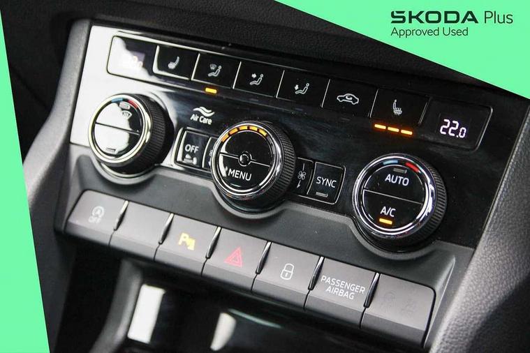 Drive mode selector, Driver alert system, Driver fatigue sensor, Driver profile selection, Electro-mechanical PAS, Multifunction colour trip computer, Outside temperature gauge, Rear view camera, Service interval indicator, Start/stop system with regenerative braking, DAB radio with Bluetooth, SD card slot, USB connection, Acoustic glass, Aero front windscreen wipers with intermittent function, Automatic headlight control system, Body colour door mirrors and handles, Body coloured bumpers, Chrome outside aluminium bar around the window, Chrome roof rails, Electric front and rear windows with child proof lock, Full LED headlights + adaptive front light system + LED daytime running lights and front cornering fog lights, Headlight washers, Heated rear windscreen, LED rear lights with high functionality, Light assistant (coming/leaving home/tunnel light), Privacy glass, Safety reflectors on front doors, Third brake light, 1.5 litre bottle holders in driver and front passenger door panels, 12V socket in boot, 12v socket in front centre armrest with storage compartment and rear air vents, 2 Folding hooks and nets in boot, 2 Front readings lights for driver and passenger, 3 rear height adjustable headrests, 4 foldable roof handles with rear coat hooks, 4 lashing points on luggage floor, Backrest release, Cargo elements in boot, Chrome inner door handles, Dual zone climate control, Folding tables on the front seat backrests, Front seat and rear pockets, Height adjustable front three point seats belts with tensioners, Height adjustable passenger seat, Height/reach adjust steering wheel, Ice scraper, Illuminated and cooled glovebox, Illuminated luggage compartment, Isofix child seat preparation outer rear, Net programme in boot, Pen holder, Pollen filter, Rear boot cover, Rear reading lights, Rear seats fixed folding and divided 60:40, Removable LED torch in the boot, Retractable parcel shelf attachable to tailgate, Safety vest holder, Storage box in upper central dashboard closed, Storage compartment below the passenger seat, Storage net on centre console passenger side, Sunglasses storage compartment, Sunvisors with illuminated vanity mirrors, Textile floor mats, Umbrella under passenger seat, VarioFlex seats with retractable parcel shelf, Airbags - Front side, head, knee and curtain, Automatic door unlocking in case of crash, Automatic fuel cut off in case of crash, Driver airbag, Electronic parking brake with auto hold function, Emergency rear braking signal, ESC including ABS, MSR, ASR, EDS, HBA, DSR, RBS, MKB and traction control, Front assist radar scanning of the space in front of the car with automatic braking, Hill hold control, Passenger airbag with switch-off function, Pedestrian monitor, Seatbelt reminder signalisation and pretensioner for all seats, Three point seatbelts rear, Two tone horn, Tyre pressure display, Tyre pressure monitor, Alarm with interior monitoring, back up horn and tilt sensor with safe function, Electronic engine immobiliser, Keyless entry and keyless start with safe system, Remote central locking with 2 remote folding keys, Chrome framed air vents, Storage on wheel cover,
