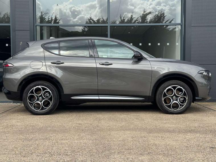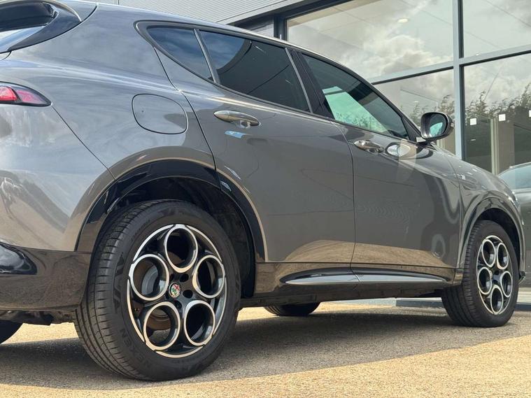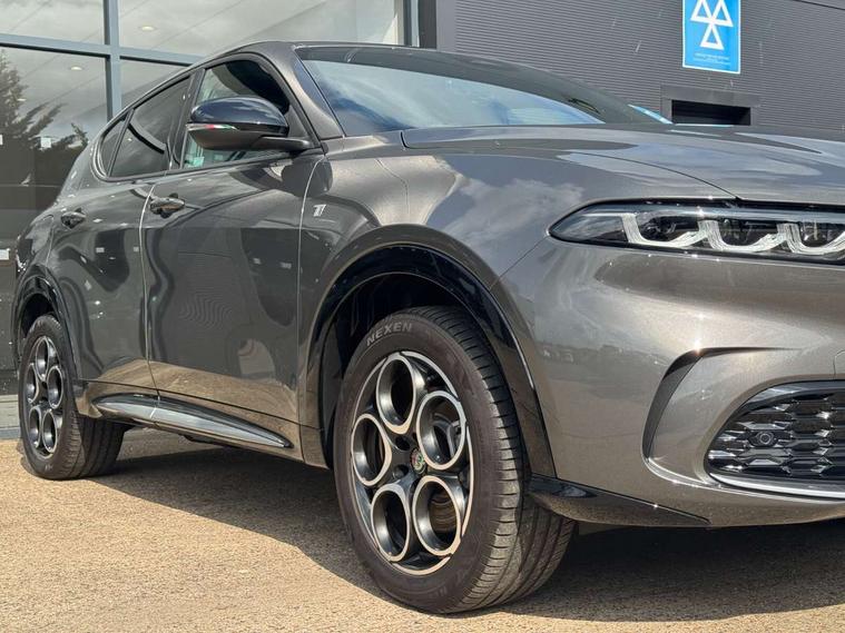 Alfa connect box, Alfa connect services, Alfa dna with esc off (3 modes + esc off), Apple car play/Android Auto, Drowsy driver detection, e-Call (emergency call), Forward collision warning, Full tft instrument cluster - 12.3", Intelligent adaptive cruise control, Intelligent speed assist, Lane support system, PAS, Passive / keyless entry (front doors), Power liftgate, Qiuick guide in english, Speed limiting device, Traffic sign recognition (w/navigation), Warranty handbook uk, Wireless charging pad, 10.25" radio touchscreen, usb, bluetooth audio streaming, voice controls with navigation, DAB digital audio broadcast, 4 Interior puddle lights, Auto headlamps with dusk sensor, Auto high beam, Auto wipers with rain sensor, Auto-dimming rear internal mirror, Black painted mirror caps, Black rubber window surround, Body colour door handles, Body colour rear spoiler, Chrome finishing tonale badge, Chrome Ti badge, Electric exterior mirrors (heated), Electrical-folding exterior mirrors, Front and rear power windows with auto up/down and antipinch, Full LED rear lamps, Gloss black painted body kit w/ satin side and front inserts and skidplate, LED blade stop light, LED cornering projector light, LED license plate light, Matrix full led headlamps with adaptive system and fog light function, Phev exterior badging, Privacy glass, Rear side wing doors, Rear wiper, Roof, hood and exterior mirrors protection, Shark fin antenna, Ti badge on fenders, U shaped LED blades DRL signature and dynamic turn indicator, V front bezel satin chrome, Welcome/leaving lighting, 12v plugs in the front and in trunk, 4 way electric driver lumbar support, 4 Ways electric driver only lumbar adjustment, 60/40 Rear seats with ski pass, Aluminium sports pedals, Black ceiling and pillars, Bottle storage 1l on door panel, Dual zone air conditioning with aqs (with rear airvents), Front armrest (integrated in the central tunnel), Front headrests, Front usb plug type a + c (charge + data), Front/rear floor mats, Heated front seats, Mono colour ambient light (included in domelamp), Overhead console with domelamp led and switches, PU Dasboard with beige stitching, Rear air vents, Rear central armrest and 3 headrests, Rear usb plug type a + c (charge), Seat belt height adjustment, Single front passenger seat, Softskin ip dashboard and upper door panels, Sport leather steering wheel with start button, Sunvisor mirror with light (driver and passenger), 6 airbags, ABS, Autonomous emergency braking inter-urban, Electric parking brake with autohold, Emergency braking pedestrian and vulnerable road users - interurban, ESP, Manual rear child locks, Rear seatbelt reminder alert, Three 3 point rear seatbelts, Tyre pressure monitoring system (TPMS), Capless fuel filler, Keyless Go, Vehicle theft alarm with hood protection and intrusion sensor (thatcham), Coloured alfa romeo logo centre wheel caps, Fix and go puncture repair kit, Summer tires,