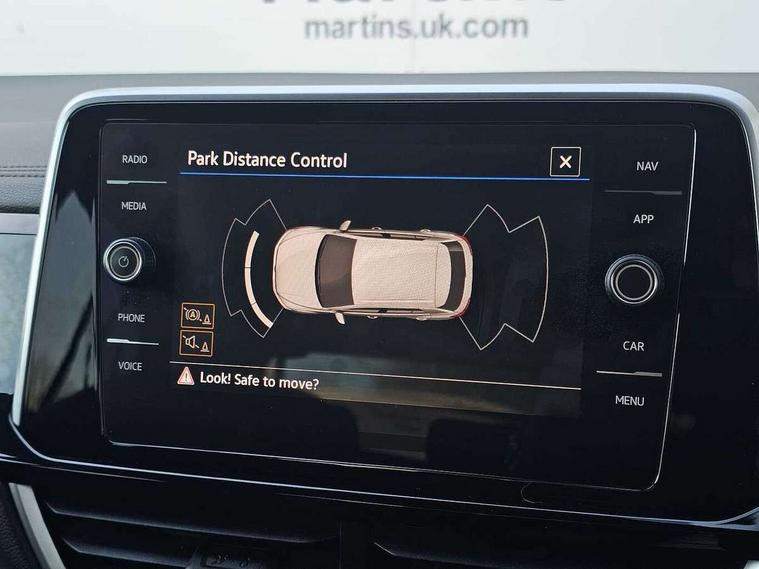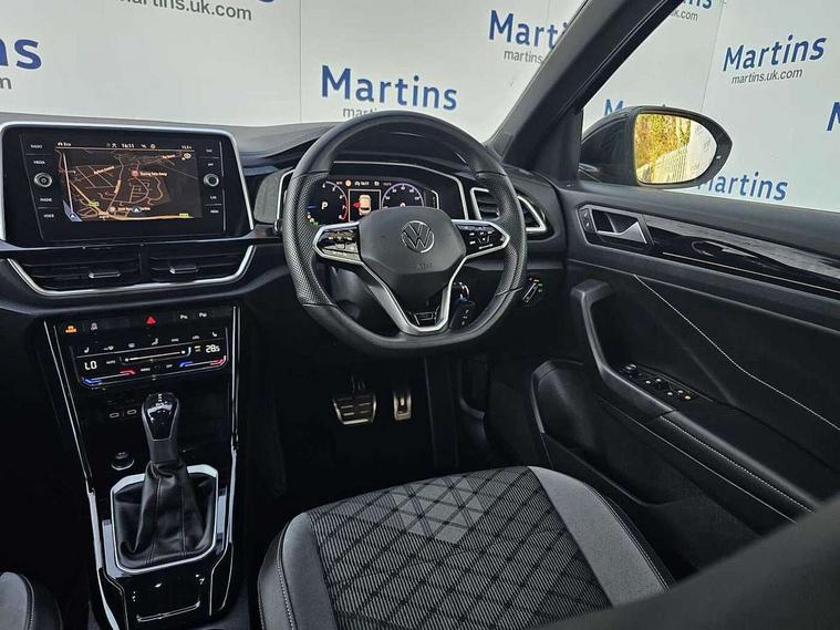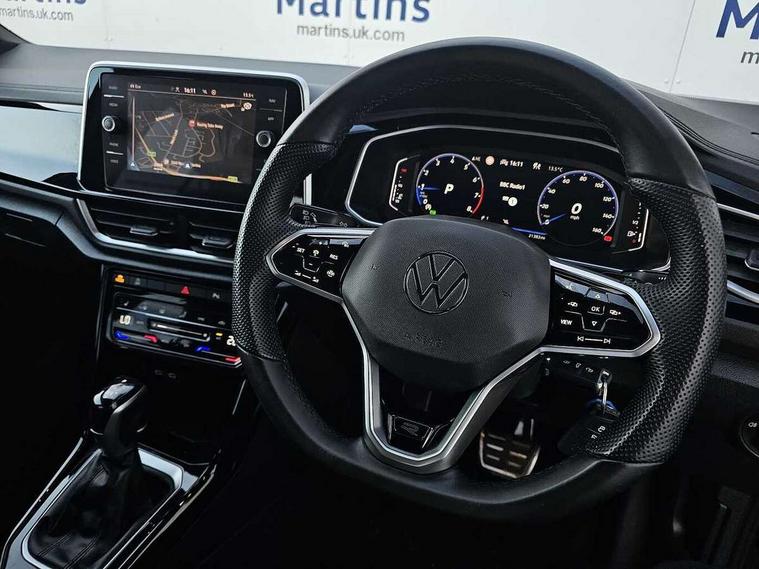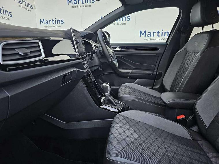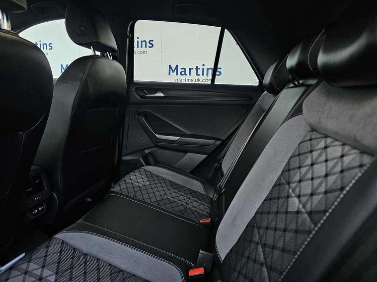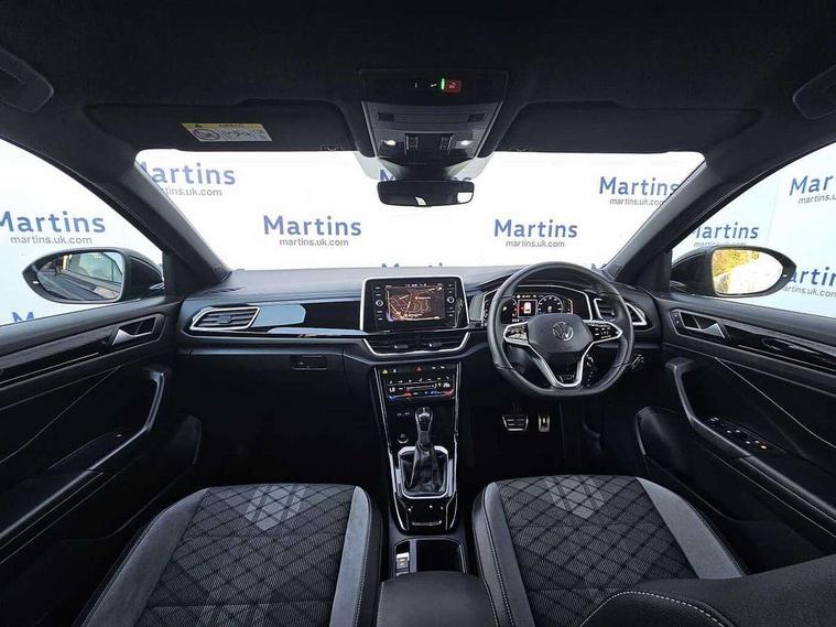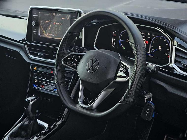 10.25" Digital cockpit pro, Bluetooth mobile phone interface, Driver alert system with fatigue detection, Driver tips and journey analysis, Emergency call service, Lane keeping system Lane Assist, Modified key software - reduce switch off time for key status change to Long no motion, Online services, Park assist including front and rear parking sensors, Service interval indicator, Tailgate/trunk lid release from outside, Think blue trainer driver tips and journey analysis, Warning sound and light for front seatbelts unfastened, Wireless app connect, Battery regeneration during braking, Start/stop function with battery regeneration, Diversity antenna for FM reception, Front and rear 6 speakers, Music playback - MP3, WMA and AAC files, Premium USB cable in choice of either Apple or Android smartphone compatibility, SD card slot, Simultaneous pairing of 2 compatible mobile devices, Title and cover art display, We Connect and We Connect Plus functionality, 3rd brake light, Auto dimming interior rear view mirror, Automatic hazard lights activation under emergency braking, Automatic headlight control with LED separate daytime running lights with coming/leaving home function, Extended roof spoiler, Exterior mirrors aspherical on driver side, convex on front passenger side, External USB type C socket and charging sockets, Front windscreen wiper with intermittent wipe and 4 position delay, Heated rear window, LED Plus headlamps, LED rear combination lamps, LED rear number plate lights, LED tail lamp rear comination lamps, Power windows with comfort operation and circuit breaker, R-Line design body coloured bumpers, Rain sensor, Rear exhaust tailpipe, Rear fog light on one side and reversing lights on both sides, Rear side wing doors, Rear wash/wipe with intermittent wipe setting, Remote electrically foldable door mirrors, puddle lights and reverse activated passenger's door mirror, 12V power socket in centre console, 3 rear head restraints, 3 seat bench in 2nd row, 4 load lashing points in luggage compartment, Air care climatronic air conditoning system with active combination filter and 2-zone temperature control, Black roof lining, Chrome plated radiator grille inserts, air vent surrounds and light switch surrounds, Door and side trim panel with leatherette insert, Drawer under drivers seat, Front + rear carpet mats, Front centre armrest, Front cupholders x 2, Front footwell illumination, Front reading light, Front scuff plates with R logo, Instrument lighting, white adjustable panel illumination, Interior ambient lighting and surround lighting, Interior light delay, Isofix child seat preparation, Leather gearshift handle, Load-through provision with cup holder when folded down ('Unsplit rear seat bench, split folding backrest, with centre armrest), Luggage compartment lighting, Single front passenger seat, Stainless steel pedals, Storage compartment in left and right luggage area, Storage compartment in rear doors, Storage compartments in driver and front passenger doors, Sunvisors with illuminated vanity mirrors, Variable boot floor, height adjustable and removable, Driver assistance pack without proactive passenger protection - T-Roc, 3 point height adj front seatbelts + pretensioners, 3 point seatbelts in outer rear with ECE label, ABS, Child locks on rear doors, Driver and front passenger airbag with front passenger airbag deactivation, Driver and front passenger safety-optimised head restraints, Drivers seatbelt reminder, Electronic parking brake, Electronic Stability Control (ESC) inc EDL (Electronic Differential Lock) and ASR (Traction Control), Front and rear passengers curtain airbag system including front side airbags, Front assist with city emergency braking and pedestrian monitoring, Front seat side impact airbags, Hill start assist, Predictive pedestrian protection, Rear disc brakes, Single tone horn, Tyre pressure loss indicator, Volkswagen roadside assistance, Alarm with interior protection, Anti-theft alarm system with interior monitoring, backup horn, and towing protection, Remote central locking with SAFELOCK, radio remote control with 2 remote control folding keys, Trims for alloy wheels,