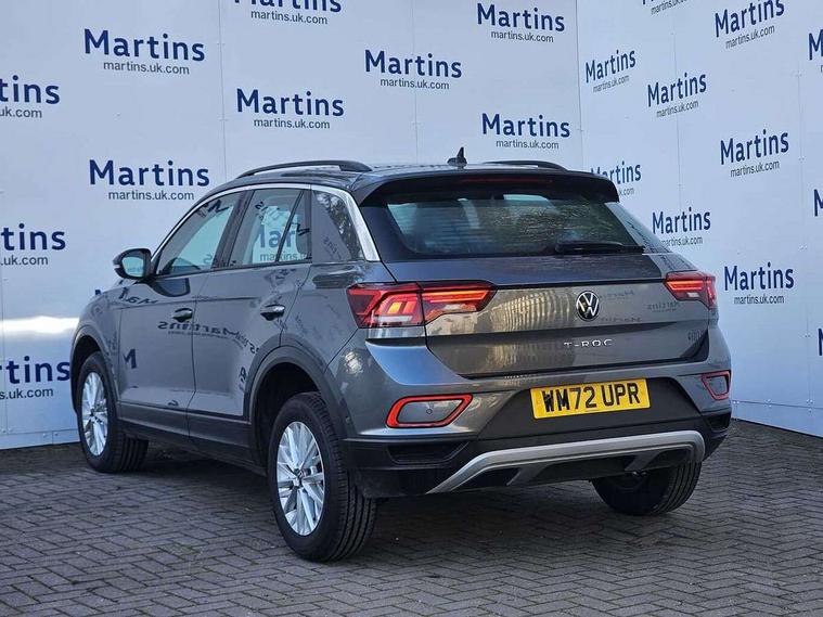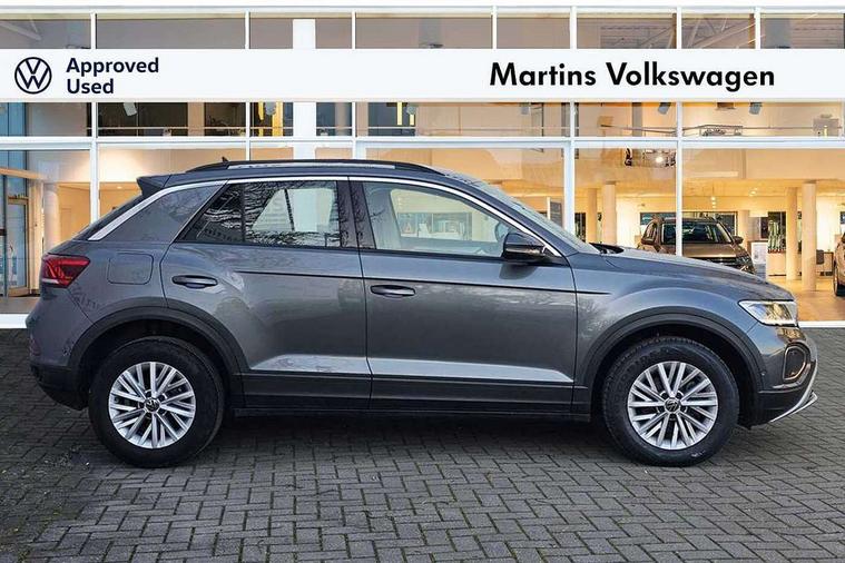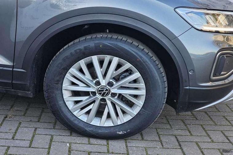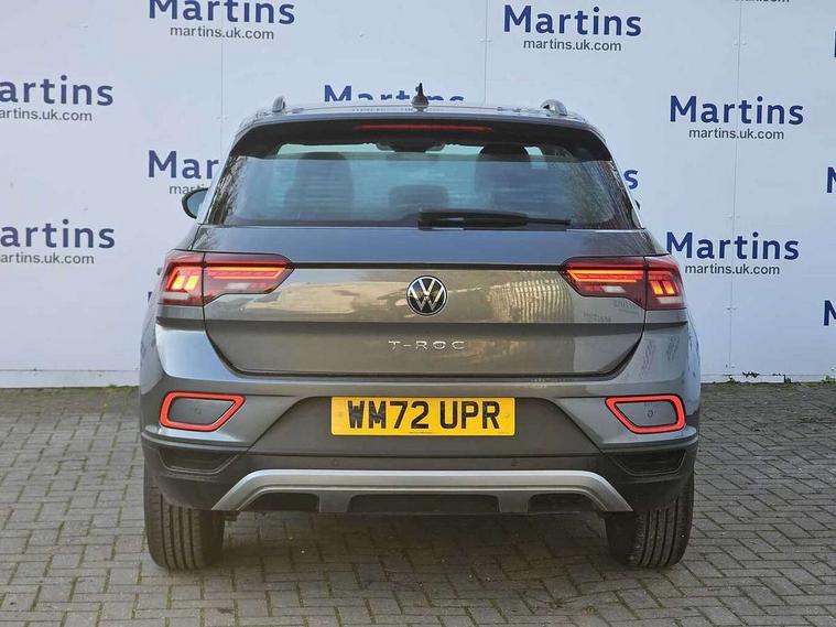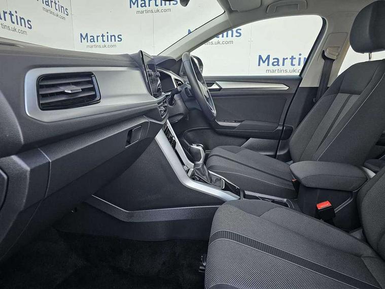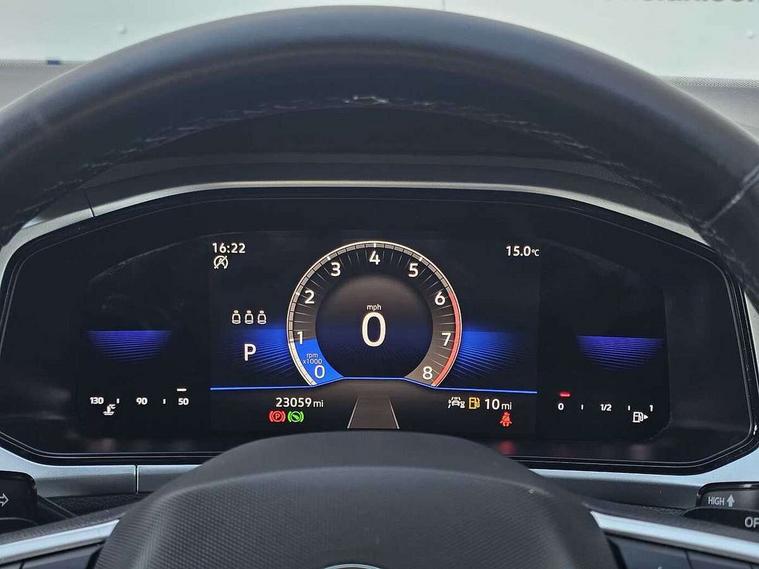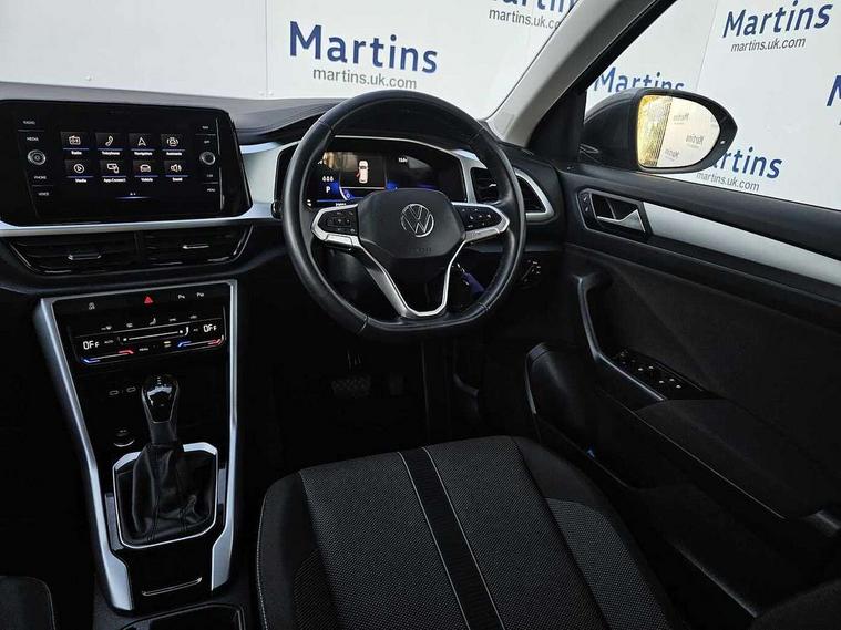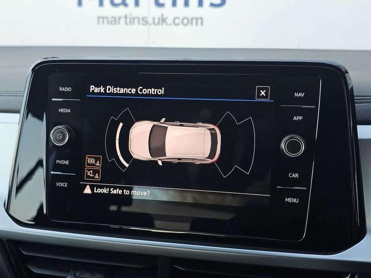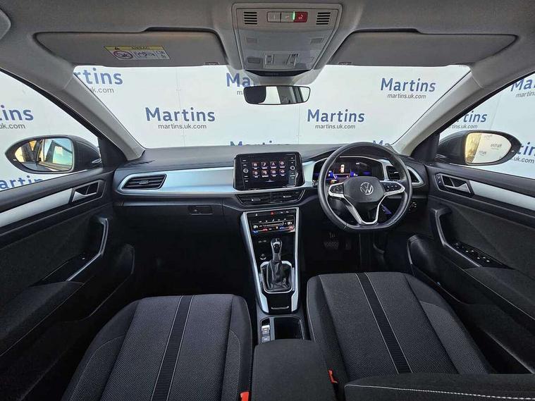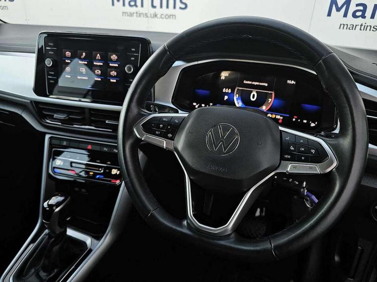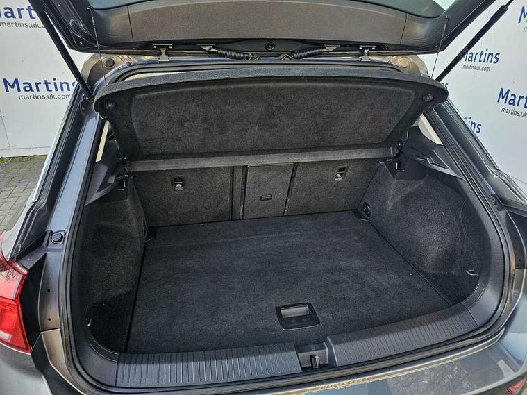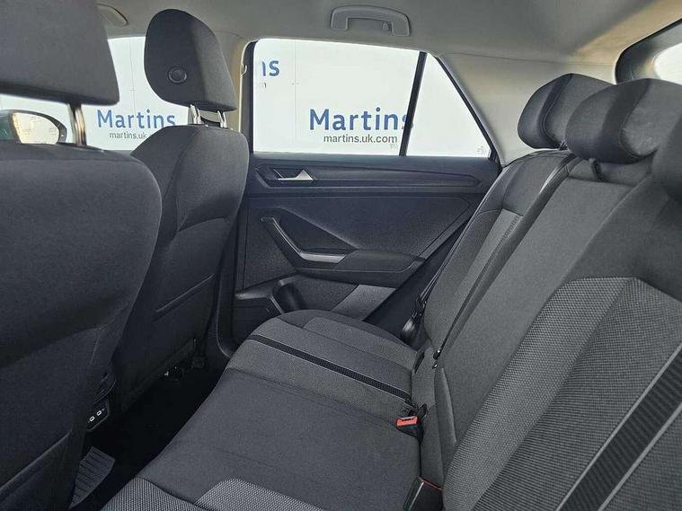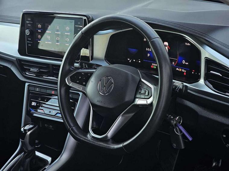 Bluetooth mobile phone interface, Driver alert system with fatigue detection, Driver tips and journey analysis, Emergency call service, Lane keeping system Lane Assist, Modified key software - reduce switch off time for key status change to Long no motion, Online services, Park assist including front and rear parking sensors, Power assisted speed sensitive steering, Service interval indicator, Tailgate/trunk lid release from outside, Think blue trainer driver tips and journey analysis, Warning sound and light for front seatbelts unfastened, Wireless app connect, Battery regeneration during braking, Front shock absorption, Rear shock absorption chassis with increased ride height, Start/stop function with battery regeneration, DAB Digital radio, Diversity antenna for FM reception, Front and rear 6 speakers, Music playback - MP3, WMA and AAC files, Premium USB cable in choice of either Apple or Android smartphone compatibility, SD card slot, Simultaneous pairing of 2 compatible mobile devices, Title and cover art display, We Connect and We Connect Plus functionality, 3rd brake light, Auto dimming interior rear view mirror, Automatic hazard lights activation under emergency braking, Automatic headlight control with LED separate daytime running lights with coming/leaving home function, Black roof rails, Body coloured bumpers and radiator grille with chrome trim and front fog lamps with chrome bezel, Body coloured exterior mirror housings and door handles, Extended roof spoiler, Exterior mirrors aspherical on driver side, convex on front passenger side, External USB type C socket and charging sockets, Front windscreen wiper with intermittent wipe and 4 position delay, Heated rear window, LED Headlights, LED rear combination lamps, LED rear number plate lights, LED tail lamp rear comination lamps, Power windows with comfort operation and circuit breaker, Rain sensor, Rear exhaust tailpipe, Rear fog light on one side and reversing lights on both sides, Rear side wing doors, Rear wash/wipe with intermittent wipe setting, Remote electrically foldable door mirrors, puddle lights and reverse activated passenger's door mirror, 12V power socket in centre console, 3 rear head restraints, 3 seat bench in 2nd row, 4 load lashing points in luggage compartment, Air care climatronic air conditoning system with active combination filter and 2-zone temperature control, Ambient lighting with mirror logo projection, Cloth upholstery, Door and side trim panel in cloth, Drawer under drivers seat, Driver/front passenger seat height adjustment, Front centre armrest, Front comfort sports seats, Front cupholders x 2, Front reading light, Instrument lighting, white adjustable panel illumination, Interior light delay, Isofix child seat preparation, Leather gearshift handle, Load-through provision with cup holder when folded down ('Unsplit rear seat bench, split folding backrest, with centre armrest), Luggage compartment lighting, Lumbar support for driver's and front passengers seat, Non-folding front passenger seat backrest, Single front passenger seat, Storage compartment in left and right luggage area, Storage compartment in rear doors, Storage compartments in driver and front passenger doors, Sunvisors with illuminated vanity mirrors, Variable boot floor, height adjustable and removable, Driver assistance pack without proactive passenger protection - T-Roc, 3 point height adj front seatbelts + pretensioners, 3 point seatbelts in outer rear with ECE label, ABS, Child locks on rear doors, Driver and front passenger airbag with front passenger airbag deactivation, Driver and front passenger safety-optimised head restraints, Drivers seatbelt reminder, Electronic parking brake, Electronic Stability Control (ESC) inc EDL (Electronic Differential Lock) and ASR (Traction Control), Front and rear passengers curtain airbag system including front side airbags, Front assist with city emergency braking and pedestrian monitoring, Front disc brakes, Front seat side impact airbags, Hill start assist, Predictive pedestrian protection, Rear disc brakes, Single tone horn, Tyre pressure loss indicator, Volkswagen roadside assistance, Alarm with interior protection, Anti-theft alarm system with interior monitoring, backup horn, and towing protection, Remote central locking with SAFELOCK, radio remote control with 2 remote control folding keys, Pewter matt decorative inserts for intrument panel, centre console and door panels at the front, Trims for alloy wheels,