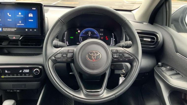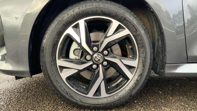 7" Digital Combimeter, Adaptive cruise control, Adjustable speed limit with speed warning, Bluetooth connectivity, Colour binocular inspired displays with digital speedometer, E-call, Electric power steering, Hybrid energy display, Lane trace assist, Multi information display switches on steering wheel, Pre-collision system (PCS), Reversing camera, Smartphone integration with Apple CarPlay and Android auto, Tailgate, Voice recognition, Vehicle Stability Control (VSC), 4 speakers, 9" Multimedia touch display, Toyota Touch 3 system with DAB radio, USB connection, Acoustic windscreen glass, Auto high beam assist, Auto windscreen wipers, Automatic headlights, Body coloured door mirrors, Electric adjustable heated door mirrors, Follow me home headlights, Front auto power windows with anti jam protection, LED daytime running lights, LED front fog lights, LED front light guide, LED Headlights, LED High mounted stop lamp, LED Indicators, LED rear light guide, Manual headlight levelling, Painted chequered front grille, Rain sensor, Rear auto power windows with anti jam protection, Rear privacy glass, Rear roof spoiler, Rear side wing doors, Rear wiper, Shark fin antenna, Turning signal integrated indicators in door mirrors, Variable front intermittent wipers, 3 adjustable rear headrests, 3 seat bench in 2nd row, 3 spoke leather steering wheel, 60/40 split folding rear seat, Active headrests, Adjustable boot height, Auto air conditioning, Coat hooks in rear grab handles, Cup holders (2 front & door), Data Communication Module (DCM) connected services, Fabric upholstery, Front armrest, Glovebox, Grey roof lining, Height adjustable driver's seat, Isofix seat fixing, Leather gearshift, Pollen filter, Shopping bag hooks, Single front passenger seat, Tilt/telescopic steering column, 3 point seatbelts on all rear seats, ABS+EBD+Brake assist, Electronic parking brake, Emergency brake light system (EBS), Front passenger airbag on/off switch, Front seatbelt reminder, Hill start assist control (HAC), Rear child proof door locks, Rear seat belt reminder, Supplemental Restraint System (SRS) 8 airbags: Driver & passenger's airbags, dual side curtain airbags, side impact airbags, front centre airbag, Toyota Safety Sense 3 with over the air updates, Tyre pressure warning system, 2x Master key, Alarm/immobiliser, Remote powered central double locking doors, Soft touch instrument panel, Space saver spare wheel,
