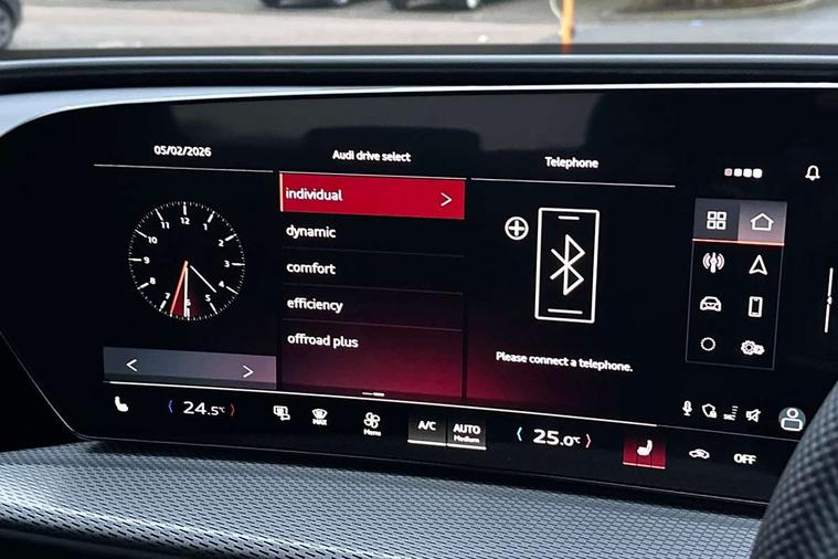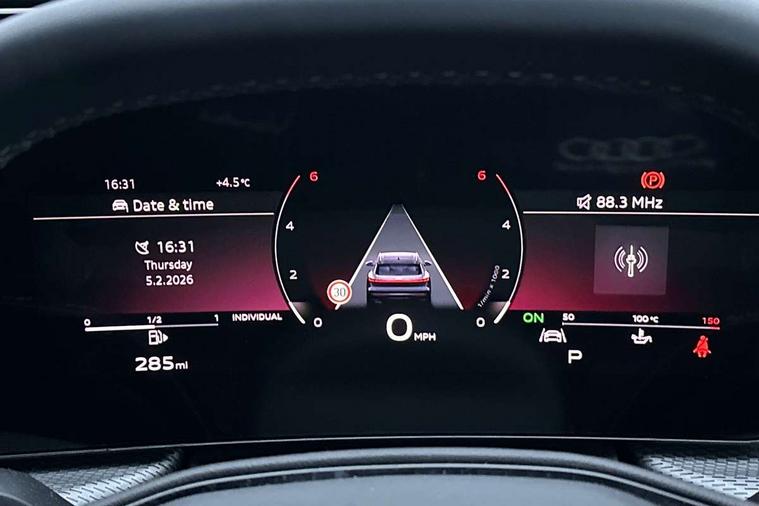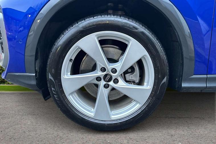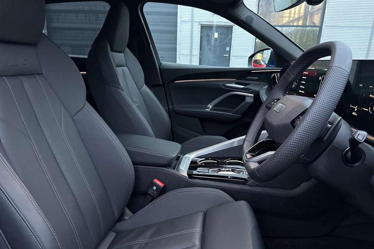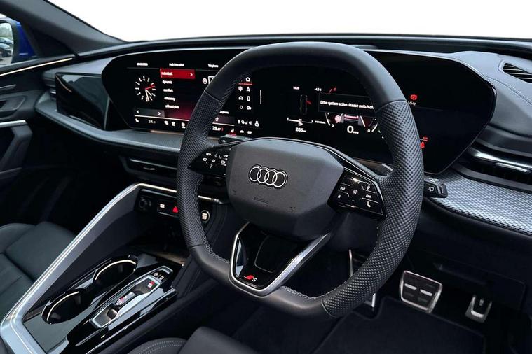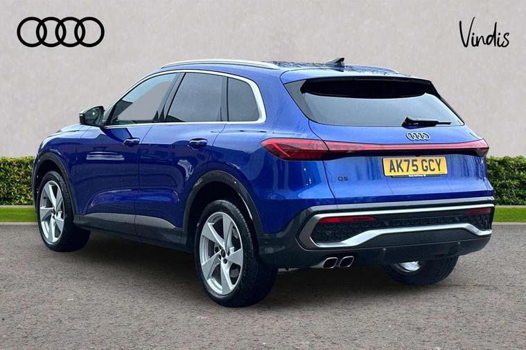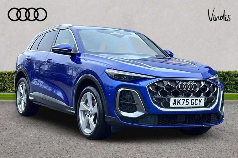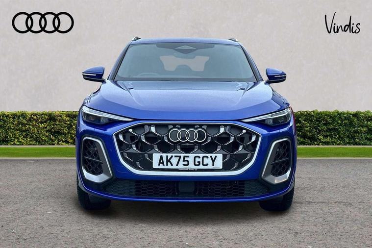 Adaptive cruise control, Advanced driver attention alert, Audi application store, Audi connect emergency call and service, Audi drive select, Audi smartphone interface, Audi virtual cockpit plus with 11.9" OLED colour display, Camera based traffic sign recognition, Fatigue monitor, Front cross traffic intersection assist, Lane departure warning system, MMI navigation plus with high resolution 14.5" OLED touchscreen colour display, Park assist plus, Parking system plus with 360 display, PAS, Reversing camera, Traffic sign based speed limiter, 2 USB-C ports in both the front and rear, Audi sound system impressive sound with 8 loudspeakers including centre speaker and subwoofer, 6-channel amplifier with a total output of 180 watts, DAB Digital radio, Smartphone compartment with wireless charging, Aluminium roof rails, Auto dimming rear view mirror, Body coloured door mirrors, Coming/leaving home lighting function, Electrically adjustable heated and folding + automatically dimming exterior mirrors, Front and rear electric windows, Front door sill trims with aluminium inlays, illuminated with 'S' logo, Grill frame, inlay and front air inlets in matt anthracite chrome, Headlight cleaning system, Heated rear window, High beam assist, High gloss window surrounds, LED headlights plus incl. digital DRL, dynamic coming and leaving home function with turning/all weather/motorway/manouevring and intersection lights, LED rear lights pro incl. dynamic rear indicators and illuminated light strip with animated coming and leaving home function, Logo projection light in exterior mirrors, Privacy glass, Projection third brake light for rear window in LED, Radiator grille in phantom black, Rear and side windows with heat insulating glass, Rear honeycombe grille in matt black with inlay in matt anthracite chrome, Rear side wing doors, Rear wash/wipe, S Line badge on the front wings, S line bumpers in contrasting Volcano grey metallic paint finish, Towbar preparation, Windscreen with acoustic glazing, 3 rear head restraints, 3 seat bench in 2nd row, 3 spoke leather steering wheel with multi-function buttons with touch control, flattened on top and bottom, with S badging and contrast stitching, Comfort centre armrest front, Deluxe 3 zone electronic climate control, Front and rear floor mats, Front sport seats with integrated head restraints, Headlining in black cloth, Heated front seats, i-Size child seat mounting on the front passenger side and outer rear seats, i-Size and top tether on the outer rear seats, Interior trim in aluminium look, Luggage compartment lid, electrically opening and closing, Manual steering column adjustment, S embossed logo on front sport seats, Single front passenger seat, Softwrap in leatherette, Stainless steel pedals and footrest, Steering wheel grips in perforated leather and shift paddles, Ambient lighting package plus - Q5, 3x3 point rear seatbelts, ABS, Acoustic vehicle alerting system, Convenience key with safelock, Driver and front passenger airbag with passenger airbag deactivation, Electric child safety locks, First aid kit with warning triangle and high visibility vests, Front emergency brake assist, Front side airbags with head airbag system and front interaction airbag, Hill hold assist, Rear seat occupant reminder, Tyre pressure loss indicator, Anti theft alarm, Anti-theft wheel bolts, Accent surfaces and control buttons in gloss black, Anthracite matt brushed aluminium inlays with linear embossing, Black dashboard with contrast stitching, Upper and lower interior elements in artificial leather, Tyre repair kit,
