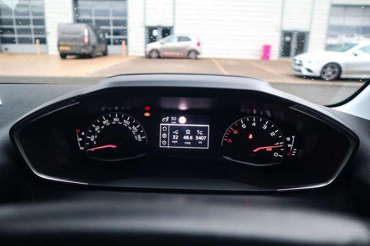 Bluetooth telephone facility, Driver attention warning, Exterior temperature indicator with ice warning, Lane keep assist, Mirror screen with mirror link, apple carplay and android auto, Multi function trip computer, Peugeot connect SOS and assistance, PEUGEOT i-Cockpit with 3.5" instrument panel display, PEUGEOT i-Cockpit with 7" capacitive colour touchscreen, PEUGEOT i-Cockpit with compact steering wheel, Programmable cruise control and speed limiter, Push button start, Rear parking sensors, Smart phone docking station, Speed limit recognition and recommendation, 6 speakers radio with mp3 compatible, DAB Digital radio, USB socket, Voice recognition for radio, navigation and telephony features, 2 X Rear number plate lights, Automatic lights, Body coloured exterior door handles, Colour coded door mirror shells, Diamond black rear spoiler, Eco LED headlights, Electric front windows + one touch + anti-pinch, Electrically operated and heated door mirrors, Follow me home headlights, Front windscreen wiper with magic wash cleaning system, Gloss black rear cluster connecting strip, Headlights left on audible warning, LED daytime running lights with distinctive tooth design, Manual rear windows, Model designation badges front and rear, Radiator grille chrome chequered, Rear reversing lights, Rear view mirror, Rear windscreen wiper triggered automatically in reverse gear, Tailgate with heated rear windscreen and wiper blade, 1/3 to 2/3 split folding rear seats, 12V socket, Driver and front passenger comfort seats, Driver and front passenger seat manual adjustment in longitudinal and back rest angle, Driver seat mechanical height adjustment, Electric power steering with reach and rake adjustable steering column, Front interior light with 2 reading spotlights, Gear shift indicator, Leather steering wheel, Low centre console, Manual air conditioning, Map pockets on the backs of the front seats, Piano keys gloss black plated toggle switches to access main functions of the vehicle, Roof lining - light grey, Satin chrome gear lever, Seatbelt unfastened on the move audible and visual alert for front and rear seats, Tri material cloth upholstery, 2x 2nd row ISOFIX child seat mountings, 3 rear 3 point seatbelts, ABS (Anti-lock Braking System) with EBD (Electronic Braking Distribution) and EBA (Emergency Braking Assistance), Child locking functionality on rear doors, Driver and passenger airbags with Passenger airbag deactivation system, Driver/front passenger side airbags, ESP with Hill Assist, Front and rear curtain airbags, Front and rear disc brakes, Front optimised safety headrests and 3 x rear retractable headrests with height adjustable, Front three point retractable seatbelts with force limiters, Manual parking brake, Pedestrians active safety brake, Tyre pressure sensor, Automatic door locking when moving off, Automatic hazard light activation upon heavy brake application, Deadlock, Electronic code immobiliser, Thatcham Cat.1 alarm, Carbon effect Dashboard, front and rear door panel finish, 16" Taksim alloy wheels, Space saver spare wheel,