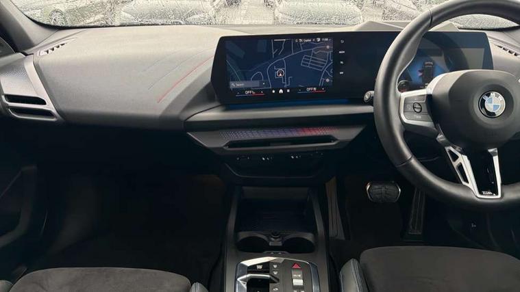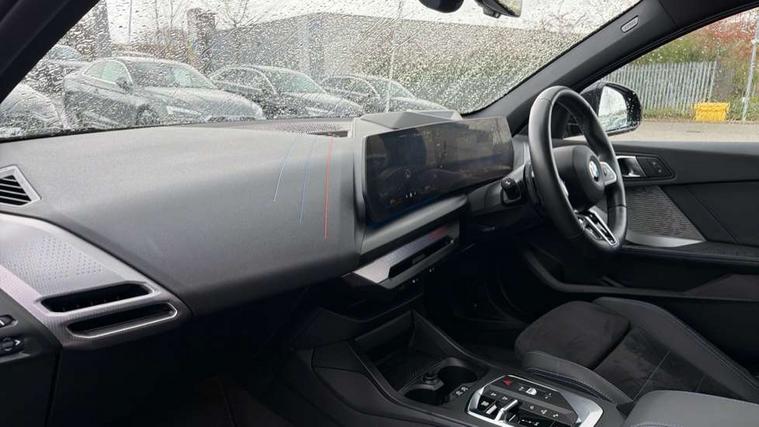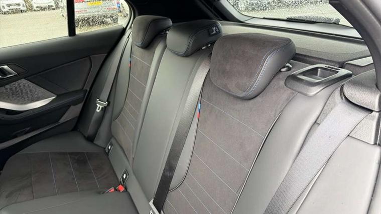 Active guard plus, Attentiveness assist, Bluetooth / WiFi interface for wireless connection of mobile terminal devices and audio streaming, BMW ConnectedDrive online services, BMW Live cockpit plus, BMW Teleservices, Check Control warning system for monitoring of lights and door/luggage compartment open warning, Eco pro mode, Electric power steering with Servotronic steering optimised at all speed ranges, Evasion assistant, Flat airvents in instrument panel with adjustable slats, Front and rear parking sensors, Front axle single joint with specific axle kinematics to minimise drive influences on steering + provide increased rigidity agile driving behaviour, Gearshift time display in manual mode, Integrated owners handbook, Left turn warning with brake function, My modes (Personal / Efficient / Sport), Oil sensor for level and grade, On board computer, Optimum shift indicator, Park assist including reversing assistant, lateral parking aid and reversing assist camera, Personal e-SIM, Personal Profile, Pull away assistant, Rigidly mounted rear subframe - Multi link construction with separate spring / damper configuration and excellent driving characteristics, Speed limit Info including no-overtaking indicator, Speed limiter, 49 litre fuel tank, Aluminium lightweight construction, Anti roll bar front and rear, Balancer shaft, Double VANOS twin scroll turbocharging system, Drive Performance Control, Electronic differential lock, Electronic selector lever, High precision injection, M Adaptive suspension, Petrol Particulate Filter, Steptronic transmission with double clutch, Twin tube gas filled shock absorbers with degressive characteristic curve, VALVETRONIC engine management, DAB Digital radio, Auto dimming rear view mirror, Automatic windscreen wipers and automatic headlight, Body colour door handles, Body colour mirror caps, Body colour roof trims, Chrome 'M' logo side designation, Chrome exhaust twin tailpipes round 90mm in left, Chrome kidney grille frame with Satin Aluminium struts, Direction indicator side lights in exterior mirrors, Electrically adjustable exterior mirror with mirror adjustment switch on drivers armrest and aspheric on driver side, convex on passenger side, Exterior M sport design elements, Fading support, Folding side mirrors with auto dimming/folding wing mirrors with auto dimming, Follow me home headlights, Front and rear bumper system with replaceable deformation elements, Front and rear electric windows with open and close fingertip control, anti trap facility and comfort closing, Front bumper panel with M specific design in vehicle colour with inserts in black high gloss, Front door sill finishers in black plastic with M designation in metallic look, Green tinted heat protection glazing, Heated rear window, High gloss black exterior mirrors, High gloss shadowline window frame, Recess cover mirror frames and B/C pillar embelisher trim, High level third brake light, Integrated front windscreen with washer jets, LED daytime running lights, LED eyebrow turn indicators, LED front fog lights, LED Headlights, Lightweight engineering, M identification on the sides, Matt black air guide grilles, Matt black wheel arch trim, Model badge on tailgate right, Nearside reverse light in rear light cluster, Preparation for high beam assistant, Rain sensor, Rear bumper panel with M-specific design in vehicle colour with inserts in black high gloss, Rear fog lights, Rear side wing doors, Rear window wiper, Shark fin antenna, Side sill covers with M specific design in body colour, Trailer stabilisation logic, Visible VIN plate, Welcome lighting, 12V power socket in front centre console with blanking plug, 3 rear seat head restraints, 3 seat bench in 2nd row, 3 spoke sports leather steering wheel with black leather and stitching, pearl chrome decorative finish, specific M Badge, Anthracite front and rear floor mats, Anthracite headlining, Black boot net with lashing eyes, Cargo function on 2nd seat row, Child seat ISOFIX attachment for two outer rear seats and front passenger seat with anchorage points, Conditioned based service, Driver and front passenger backrest net on rear, Driver and front passenger seat heating, Driver side folding compartment in instrument panel, Folding rear clothes hook, Footrest and pedals in black plastic, Four grab handles integrated in roof lining, Front and rear door pockets with bottle holders, Front and rear side armrest integrated into door trim, Front armrest with storage compartment, Gearshift paddles on steering wheel, Glove compartment, Height adjustable front head restraints, Luggage compartment for bag hooks on left and right, foldable luggage compartment liner and four lashing eyelets, Manual adjust steering wheel, Multi-function controls for steering wheel, Rear seat backrest with manual 60:40 split folding with 3 top tether clips integrated on rear of seat panels, Single front passenger seat, Storage compartment in centre console, Storage compartment in luggage compartment, Stowage of the parcel shelf in luggage compartment trim, Sun visors with vanity mirrors and insert tab, Two front centre console cupholders, Type C two USB ports in rear centre console, Upper retaining strap integrated into backrest rear panels, Connected pack professional - 1 Series, Interior lights pack - 1 Series, M Sport exterior styling aerodynamics pack - 1 Series, 2 tone horn, 3 point seatbelts on all seats, front pyrotechnic belt tensioners, stopper and belt force limiters, rear coded belt buckles, Airbags - Front driver/passenger, front and rear curtain head protection, front side, manual deactivation of front passenger airbag, Anti lock braking system (ABS) with brake assist, BMW emergency call, Brake drying, Braking readiness, Child proof locking system in rear door, Comfort modes, Cornering brake control, Crash sensor activating of airbags, Unlocking doors, hazard warning lights, interior light, safety battery terminal, Driver and front passenger seat belt sec