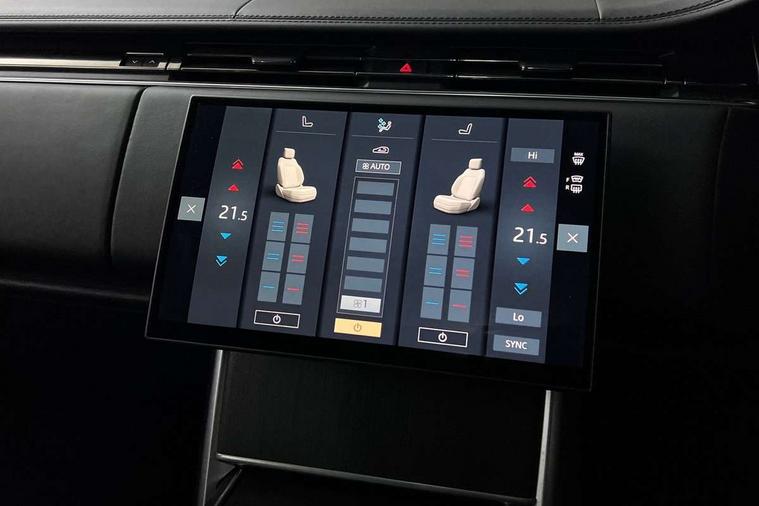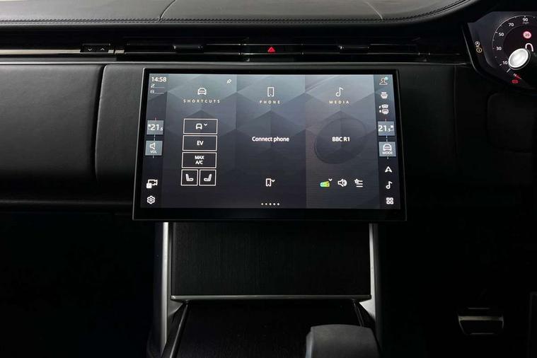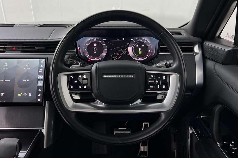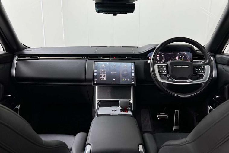 13.1" Touchscreen, 3D surround camera inc frwd traffic detection, vehicle clearance guidance, 3D view, clearsight ground view, manoevure light, 360 parking aid, wade sensing, All Terrain Info Centre, All wheel steering, Android Auto, Apple car play, Blind spot assist, Bluetooth connectivity streaming, Configurable programs, Driver condition response, Eco mode, Electric power assisted steering (EPAS), Emergency call service, Front and rear parking aid, Head up Display, Interactive driver display, Lane keep assist, Rear collision monitor, Rear traffic monitor, Remote, Traffic sign recognition with adaptive speed limiter, Wi-Fi Enabled with data plan, Wireless device charging with phone signal booster, 7 kW onboard charger, 8 speed automatic transmission, Active damper technology system, Adaptive dynamics, All terrain progress control, All Wheel Drive (AWD), Automatic access height, Home charging cable 5m Mode 2 including plugs, Public charging cable 5m Mode 2 including plugs, Terrain Response 2 Auto, Twin speed transfer box, Digital Audio Broadcast radio-DAB, Pivi pro including smart settings, Connected navigation pro, nuance speech, USB socket, Acoustic laminated windscreen, Animated directional indicators, Automatic headlights, Automatic levelling headlights, Centre high mounted stop light, ClearSight interior rear view mirror, Electric windows with one touch open/close and anti trap, Engine cover, Flush deployable exterior door handles, Front and rear recovery eyes, Front fog lights, Headlamp power wash, Heated rear window, Heated washer jets, Illuminated metal treadplates with Autobiography script, Laminated front and rear side glass, LED tail lights, Power fold, auto-dimming, heated door mirrors with approach lights, Rain sensing windscreen wipers, Rear boot, Rear fog lights, Rear side wing doors, Side repeater indicators in mirror, Solar attenuating windscreen, Trailer stability assist, Winter wiper park position, 12V power sockets, 3 seat bench in 2nd row, Air quality sensor, Auto folding loadspace cover, Bright metal pedals, Cabin air purification pro, Cabin lighting, Customer configurable single point entry, Driver and passenger front seat armrests, Easy boot loading, Ebony Carpet, Electric rear side window sunblinds, Four zone climate control, Front and rear cupholders, Front and rear grab handles, Front head restraints, Gearshift paddles, Heated steering wheel, Hook in load space, Loadspace light, Luggage tie down in loadspace, Multifunction steering wheel, Rear centre armrest, Rear head restraints, Rear ISOFIX, Single front passenger seat, SV bespoke carpet mats, Twin blade sunvisors with Illuminated vanity mirrors, Upper and lower glovebox, Versatile loadspace floor in tailgate, Online pack with data plan - Range Rover, 3x3 point rear seat belts, Anti-lock braking system (ABS), Black brake calipers, Brake hold function, Cornering brake control (CBC), Customer configurable autolock, DSC - Dynamic Stability Control, Electronic brake force distribution, Electronic parking brake, Electronic traction control, Emergency brake assist, Emergency braking, Front airbags with passenger seat occupant detector, Front side airbags, Hill descent control, Hill launch assist, Illuminated seat belt buckles, Low traction launch, Occupant protection assist, Power operated child locks, Roll stability control, Tyre pressure monitoring system (TPMS), Immobiliser, Intrusion sensor and alarm, Keyless entry, Locking wheel nuts, Remote central locking, Noble chrome controls,