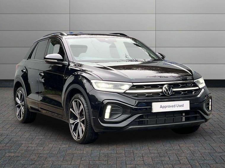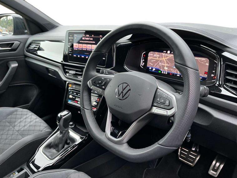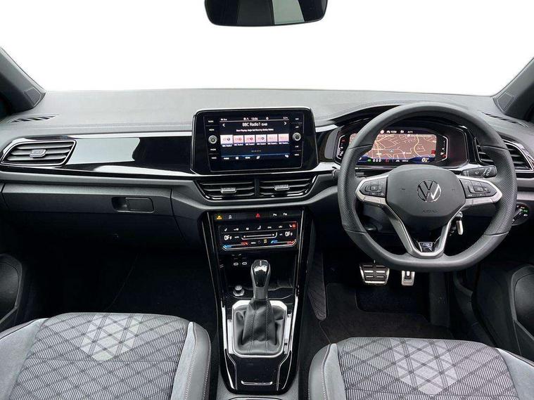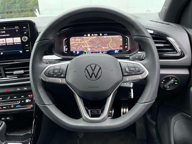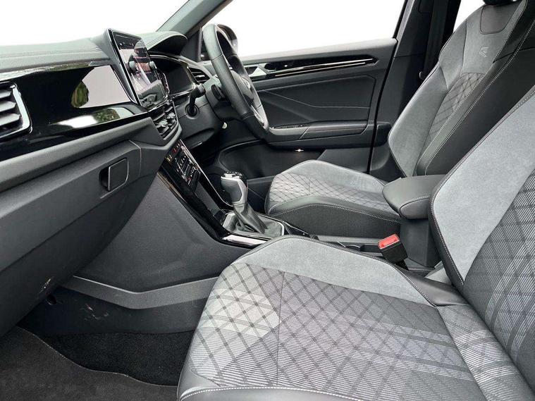 10.25" Digital cockpit pro, Advanced driver attention and drowsiness monitor, Emergency call service, Lane keeping system Lane Assist, Mobile phone interface, Modified key software - reduce switch off time for key status change to Long no motion, Online services, Park assist including front and rear parking sensors, Power assisted speed sensitive steering, Service interval indicator, Tailgate/trunk lid release from outside, Think blue trainer driver tips and journey analysis, Warning sound and light for front seatbelts unfastened, Wireless app connect, Battery regeneration during braking, Rear shock absorption chassis with increased ride height, Start/stop function with battery regeneration, DAB Digital radio, Diversity antenna for FM reception, Front and rear 6 speakers, Music playback - MP3, WMA and AAC files, Premium USB cable in choice of either Apple or Android smartphone compatibility, SD card slot, Simultaneous pairing of 2 compatible mobile devices, Title and cover art display, We Connect and We Connect Plus functionality, Auto dimming interior rear view mirror, Automatic hazard lights activation under emergency braking, Automatic headlight control with LED separate daytime running lights with coming/leaving home function, Dynamic cornering light, Electrically adjustable and heated door mirrors, Extended roof spoiler, Exterior mirrors aspherical on driver side, convex on front passenger side, External USB type C socket and charging sockets, Front windscreen wiper with intermittent wipe and 4 position delay, Heated rear window, Illuminated front grille, IQ LED matrix headlights, LED 3rd brake light, LED rear number plate lights, LED rear tail lights with dynamic turn signal, Light mode for poor weather, rain, fog or snow, Power windows with comfort operation and circuit breaker, R-Line design body coloured bumpers, Rain sensor, Rear exhaust tailpipe, Rear fog light on one side and reversing lights on both sides, Rear side wing doors, Rear wash/wipe with intermittent wipe setting, Remote electrically foldable door mirrors, puddle lights and reverse activated passenger's door mirror, 12V power socket in centre console, 3 rear head restraints, 3 seat bench in 2nd row, 4 load lashing points in luggage compartment, Air care climatronic air conditoning system with active combination filter and 2-zone temperature control, Artvelours cloth upholstery, Black roof lining, Chrome plated radiator grille inserts, air vent surrounds and light switch surrounds, Door and side trim panel with leatherette insert, Drawer under drivers seat, Driver seat height adjust, Driver's seat lumbar support, Front + rear carpet mats, Front centre armrest, Front comfort sports seats, Front cupholders x 2, Front footwell illumination, Front reading light, Front scuff plates with R Line logo, Front seat back storage pockets, Glove compartment door with light, Instrument lighting, white adjustable panel illumination, Interior ambient lighting and surround lighting, Interior light delay, Isofix child seat preparation, Leather gearshift handle, Leather wrapped multifunction steering wheel with paddle shift, Load-through provision with cup holder when folded down ('Unsplit rear seat bench, split folding backrest, with centre armrest), Luggage compartment lighting, Non-folding front passenger seat backrest, Passenger seat height adjuster, Passenger seat lumbar support, Single front passenger seat, Stainless steel pedals, Storage compartment in left and right luggage area, Storage compartment in rear doors, Storage compartments in driver and front passenger doors, Sunvisors with illuminated vanity mirrors, Variable boot floor, height adjustable and removable, Winter pack without heated windscreen washer jets - T-Roc, 3 point height adj front seatbelts + pretensioners, 3 point seatbelts in outer rear with ECE label, ABS, Child locks on rear doors, City emergency braking and pedestrian monitoring, Driver and front passenger airbag with front passenger airbag deactivation, Driver and front passenger safety-optimised head restraints, Drivers seatbelt reminder, Electronic parking brake, Electronic Stability Control (ESC) inc EDL (Electronic Differential Lock) and ASR (Traction Control), Front and rear passengers curtain airbag system including front side airbags, Front disc brakes, Hill start assist, Predictive pedestrian protection, Rear disc brakes, Two tone horn, Tyre pressure loss indicator, Volkswagen roadside assistance, Tool kit, Trims for alloy wheels, Tyre mobility kit including compressor and sealing foam,