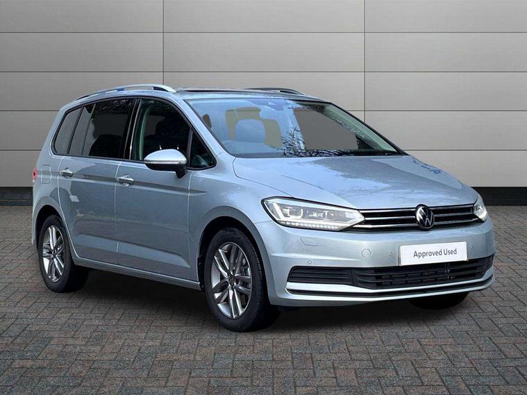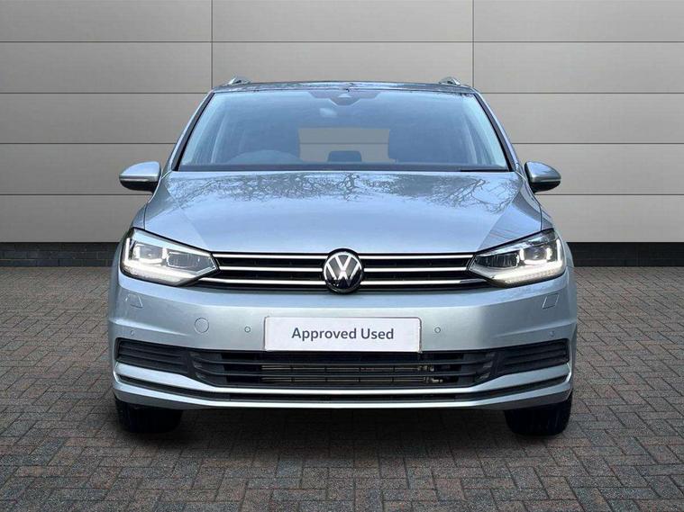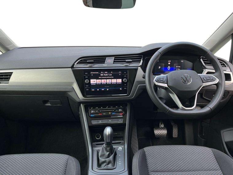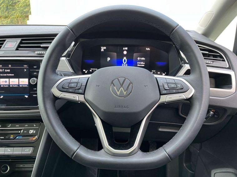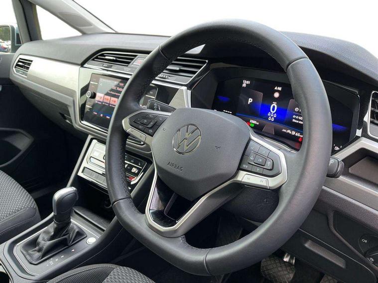 Adaptive cruise control, Audible lights on warning, Discover media navigation touchscreen navigation/radio system with streaming and internet, Driver alert system, Driver profile selection, Dynamic road sign display, Electric tailgate, Electronic odometer, Emergency services call system, Extended, crash-active and proactive Pedestrian and cyclist monitoring, External temperature gauge, Front parking sensors, Lane change system side assist and rear traffic alert, Lane keep assist, Misfuelling protection device, Mobile pairing with SMS function, Mobile phone interface with inductive charging, Rear view camera displayed via vehicles audio system display, Rev counter with fuel gauge, Side scan, Speed limiter, Speed sensitive power steering, Stop/start system, Think blue trainer driver tips and journey analysis, Trip and service interval display, We connect' and 'We connect plus' functionality, Petrol Particulate Filter, Rear stabiliser bar, XDS electronic differential lock, 4x20 watt output, 8 Speakers, Audio Connectivity System, DAB Digital radio, External USB-C data socket with increased charging performance - 2 USB sockets 45W, MP3/WMA compatability, SD card slot, Title and cover art display, USB connection, Aerial integrated into side window, Auto dimming door mirrors, on driver side, surround lighting and front passenger side mirror lowering function, Auto dimming rear view mirror, Automatic coming/leaving home lighting function, Body colour bumpers, Body colour door handles, Body colour door mirrors with integral indicators, Door mirrors with memory function, Dusk sensor + auto driving lights, Electric folding door mirrors, Electric heated + adjustable door mirrors, Electric, glass sliding/tilting panoramic sunroof including integrated roller blind and LED lighting around aperture, Front and rear electric windows, Fully galvanised body, Gloss black finish B pillar, Green tinted heat insulating glass, High level third brake light, Rain sensor, Rear fog lights, Rear side wing doors, Rear tinted glass from B-pillar backwards approx 65% tinted, Rear wash/wipe with intermittent wipe setting, Removable engine badge, Silver roof rails, Tailgate wiper- reverse gear activation, Twin chrome exhaust tailpipes, Volkswagen roundel, Windscreen wipers intermittent wipe, 12V power point for Row 2, 12V socket in luggage compartment, 2 individual fold flat 3rd row seats, 2 three point seatbelts in 3rd row, 2nd row centre armrest, 2nd row centre seat converts into table, 3 single slide/fold/removable 2nd row seats, 3 spoke steering wheel, 3x3 point seatbelts on 2nd row with height adjust on outer seats, 4 boot load lashing points, 4 way adjustable front head restraints, 5 headrests, Activated charcoal canister for intensified evaporation system, Air care climatronic 3 zone air conditioning system with rear air conditioning control panel, Chrome plated radiator grille inserts, air vent surrounds and light switch surrounds, Driver and front passenger under seat drawer, Dust/pollen filters, Foldable front passenger seat backrest with load through function, Front and rear reading lights X 2, Front centre armrest with storage compartment, Front comfort seats with lumbar support, Front cupholders x 2, Front passenger seat height adjust, Front seat storage pockets, Front seatback folding tables, Height adjustable driver's seat, Height/reach adjust steering wheel, Illuminated glovebox, Instrument lighting white adjustable panel illumination with red night time illumination, Interior light with delay, Isofix on 2nd row outer seats, Isofix on 3rd row seats, Large storage compartment in roof console, Lasano cloth upholstery, Leather multifunction steering wheel with gear knob, Leatherette on rear of front seats, Low tunnel 2nd row seat, Luggage compartment lighting, Media box in dashboard on passenger side, Multi storage in passenger/luggage areas, Multi-function centre console with storage facilities, Retractable luggage cover, Split folding rear seat backrests, Storage bins on all doors, Sun visors with illuminated vanity mirrors, Family Pack - Touran, Winter pack without heated washer jet - Touran, 3 point height adjustable front seatbelts, Auto hold function, Automatic post collision braking system, Door open warning reflectors, Driver/Front Passenger airbags, Drivers knee airbag, EDL + ASR, Electronic parking brake, Energy recovery system, ESC with ABS, First aid kit, Front and rear (row 2) curtain airbags, Front assist with autonomous emergency braking, Front seat side impact airbags, Front seatbelt pretensioners, Front/rear disc brakes, Hill hold control, Hydraulic Brake Assist (HBA), Loose wheel warning function, Manual passenger airbag deactivation function, Pre crash preventive occupant protection, Proactive passenger protection system with front and side assist, Rear child proof door locks, Road sign recognition, Seatbelt warning lamp and buzzer, Traction control, Two tone horn, Warning triangle, Alarm with remote central locking and interior protection, Electronic engine immobiliser, Keyless Access Keyless locking and starting system with SAFELOCK, New brushed design decorative inserts in dash and front doors, 17" Salvador alloy wheels with anti-theft wheel bolts, 215/55 R17 self sealing tyres with low rolling resistance,