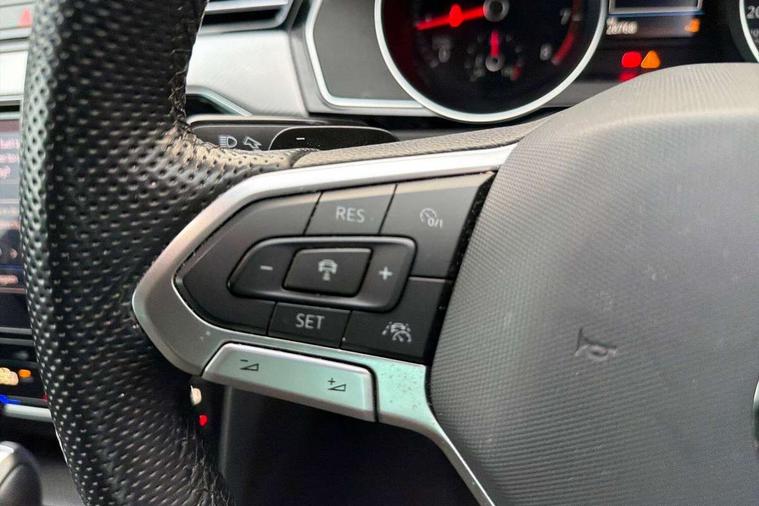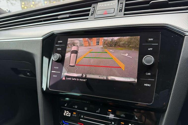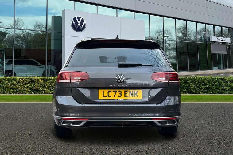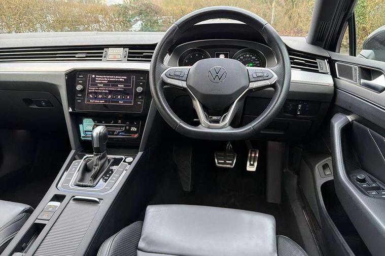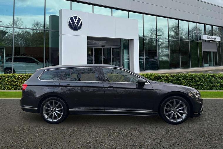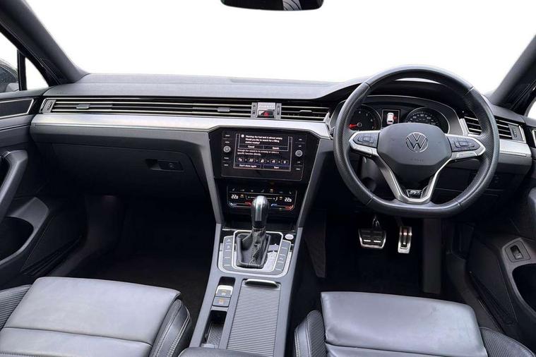 Adaptive cruise control including Front Assist, radar sensor controlled distance monitoring system, City emergency braking system, Driver alert system, Driver profile selection, Exterior temperature gauge with frost alarm, Lane assist, Low washer fluid warning light, Multifunction computer includes visual gear, One touch indicator turn signal, Proactive occupant protection, Security and service including e-call, Speed sensitive power steering, Speedo and rev counter, electronic odometer, trip, service interval display and fuel gauge, Start/Stop function, Traffic jam assist, Warning buzzer and light for front seatbelts unfastened, We connect plus, Battery regeneration during braking, Misfuel prevention device, Petrol Particulate Filter, Aerial for radio integrated into rear windscreen, DAB Digital radio receiver, External, USB type C data sockets with increased charging performance front (45 Watt), Auto dimming interior rear view mirror, Automatic headlights with dusk sensor, Automatic leaving home and manual coming home lighting functions, Black radiator grille with chrome louvres, Body colour bumpers, Body colour door handles, Body coloured door mirrors with integrated indicators, Chrome side window surrounds, Electric heated windscreen washer jets, Front and rear electric windows, Fully galvanised body, Gloss black finish on B pillar, Heated rear window, LED rear lights, LED rear number plate lights, LED third brake light, Plastic load sill protection, Rain sensor, Rear side wing doors, Rear tinted glass from B pillar backwards, approx 65% tinted, Rear window wash/wipe, Remote electrically adjustable and foldable heated door mirrors including automatic dimming function on drivers side door mirror puddle lights, Silver anodised roof rails, Warning lights for open tailgate and doors, White instrument lighting, Windscreen wipers/ intermittent wipe + 4 position delay, 12V socket in front centre console, 12V socket in luggage compartment, 3 seat bench in 2nd row, 40:20:40 split folding rear seat backrests, Carbon optic side bolsters, Climate control - 3 Zone electronic air conditioning with automatic air recirculation, Driver's door storage compartment for 1.0 litre bottle, Extending luggage compartment cover with convenience opening, stowable, Front and rear interior lighting with delay and dimming function, Front centre armrest with storage compartment and two rear air vents, Front cupholders x2 with covers, Front passenger storage compartment for 1.5 litre bottle, Front seats with embroidered R Line logo on backrest, Height adjustable and removable variable boot floor, Height adjustable rear seat head restraints (x3), Height/reach adjust steering wheel, Illuminated vanity mirrors, Isofix child seat preparation, outer rear seats, Load lashing points x 4 in luggage compartment, Load through provision, Lockable, illuminated, cooled glovebox, Luggage compartment lighting, Nappa leather upholstery, Rear seat centre armrest with storage compartment, Single front passenger seat, Stainless steel pedals, Storage compartment in rear doors, Storage compartment in roof console with cover, Unique R Line door sill protectors, Unique R Line front and rear carpet mats, Easy open package with full electric tailgate/ boot - Passat (Estate), R line styling pack - Passat (Estate), 3x3 point rear seatbelts, ABS (Anti locking brake system) includes BAS (Brake assist) and EBD (Electronic brake pressure distribution), Automatic post collision braking, Disc brakes front and rear, Door open warning reflectors, Driver/Front Passenger airbags, Drivers and front passengers safety optimised head restraints, longitudinal and height adjustable, Drivers knee airbag, Electronic parking brake with auto hold, First aid kit and warning triange with 2 face masks, Front and rear passenger curtain airbags, Front passenger airbag deactivation switch, Front side impact airbag, Height adjustable front 3 point seatbelts + pretensioners, Hill hold function, Pre crash preventive occupant protection, Rear door child safety locks, Rear seat side impact airbags, Rigid safety cell with front and rear crumple zones, Tyre pressure loss indicator, Volkswagen roadside assistance, Warning light for rear seat belts if unfastened, Alarm with interior protection and deactivation via infotainment system, Electronic engine immobiliser, Locking wheel nuts, Remote central locking, Chrome air vent and instrument surround, Unique R Line dark diamond flag decorative inserts in dash and door panels,