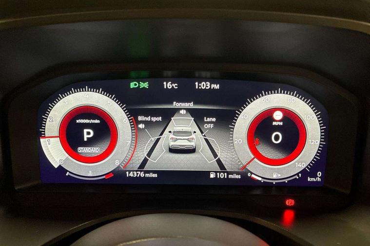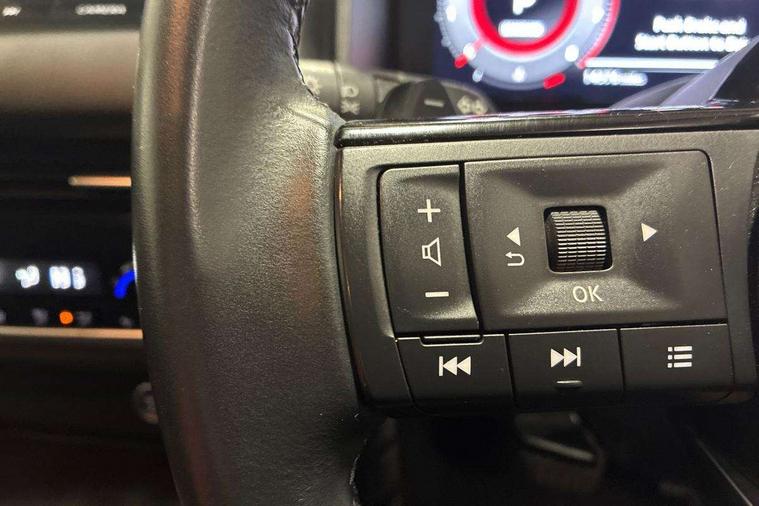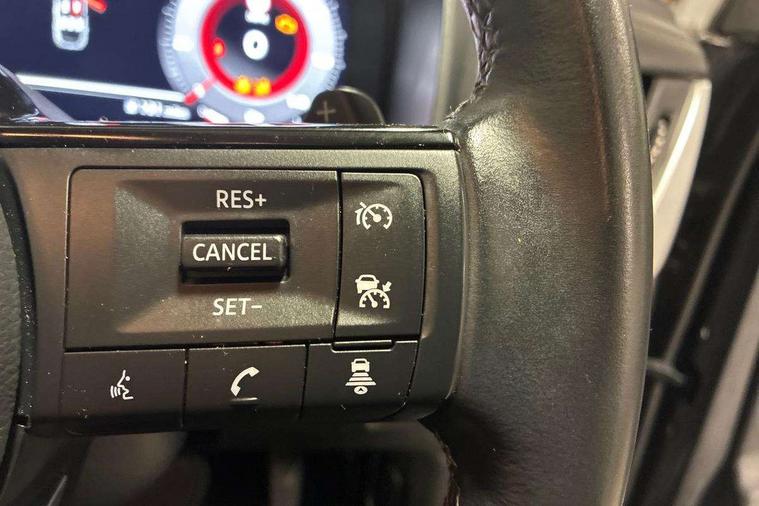 Android auto/Apple CarPlay (Wired), Blind spot warning, Drive modes (sport, normal, eco), Electric speed sensitive power steering, Emergency and breakdown call, Full Digital 12.3" TFT Digital Combimeter, Google maps services - search, weather, 3D maps and Google street view, Idle stop/start system, Intelligent around view monitor, Intelligent Cruise control (ICC), Intelligent driver alert system, Intelligent forward collision warning, Intelligent lane intervention, Lane departure prevention, Lane departure warning system, Maximum speed limiter, Moving object detection, Nissan connect 12.3 inch touchscreen infotainment system, Nissan connect navigation, Push button starter, Rear cross traffic alert, Rear parking sensors, Rear view camera, Remote control services - door locks, lights, horn and car locator, Telematics - notifications and connectivity services, TomTom live traffic services, Traffic sign recognition with legal speed adjustment, Trip computer, Virtual personal assistant and firmware over the air capability, Wireless apple carplay, 6 speakers, AM/FM audio system with DAB, Bluetooth audio streaming, Front USB connections (Type-A and Type-C), Rear USB charging only ports (Type-A and Type-C), Auto dimming rear view mirror, Auto rear wiper when reversing, Automatic hazard signal with emergency stop signal, Body colour mirror caps, Body coloured door handles, Bodyside mouldings, Chrome side window finisher, Door handle with button, Electric auto folding door mirrors, Electrically adjustable and heated door mirrors with LED turn indicator, Follow me home headlights, High beam assist, Intelligent auto headlights, LED daytime running lights, LED Headlights, LED rear lights, One touch front and rear electric windows with remote opening and closing, Partially body coloured bumpers, Privacy glass, Rear bumper with graphite insert, Rear reversing light (bulb lighting), Rear roof spoiler, Rear side wing doors, Rear styling plate, Shark fin antenna, Splash free rain sensing wipers, Super UV and infrared cut glass, Three blink turn signal, 12v power socket in dashboard and luggage, 2x Rear coat hooks, 3 bench rear seats in 2nd row, 3 rear headrests, 4 folding assist grip, 6 Luggage hooks - 4 on floor, 2 on side, 6-way manually adjustable driver's seat, 60/40 split folding rear seat bench, Ambient lighting around centre console, Centre console storage tray, Chrome interior door handles, Cloth monoform upholstery, Driver and front passenger sunvisors with illuminated vanity mirrors, Driver seat back pocket, Dual zone automatic climate control with pollen filter, Electrically adjustable lumbar support for driver, Front and rear door storage, Front centre console and armrest, Front cupholders x 2, Front door with bottle holders, Glovebox with light, Hard trunk cover, Height adjustable driver's seat, Height adjustable front headrests, Height adjustable passenger seat, Leather steering wheel, Luggage board system, Luggage space lighting, Manually adjustable passenger (slide recline + lifter), Multifunction steering wheel, Passenger seat back pocket, Rear armrest with 2 cupholders, Rear door bottle holders, Single front passenger seat, Soft PVC kneepad, Steering wheel gearshift paddles, Steering wheel switches, Sunglasses holder, Tilt/telescopic adjustable steering wheel, Two rear isofix child seat anchorage points with top tether, Welcome light and console tray ambient lighting, 3x3 point rear seatbelt pretensioners + load limiters, ABS with EBD and brake assist, Active brake limited slip, Auto hold function, Child locks on rear doors, Curtain and front side, far side airbags, Driver and passenger airbags, Driver, passenger and 2nd row rear seat belt reminder, Electronic parking brake, Front seatbelt pretensioners + load limiters, Height adjustable front seatbelts, Hill start assist, Intelligent blind spot intervention, Intelligent front emergency braking with pedestrian, cyclist recognition and junction assist, Intelligent rear automatic braking, Tyre pressure monitoring system, Vehicle dynamic control, Capless fuel filler, Engine immobiliser, Intelligent Key, Remote central door locking with deadlocking, Thatcham Cat.1 alarm, Interior instrumental panel B finisher, 18" Diamond cut alloy wheels, Tyre puncture repair kit,
