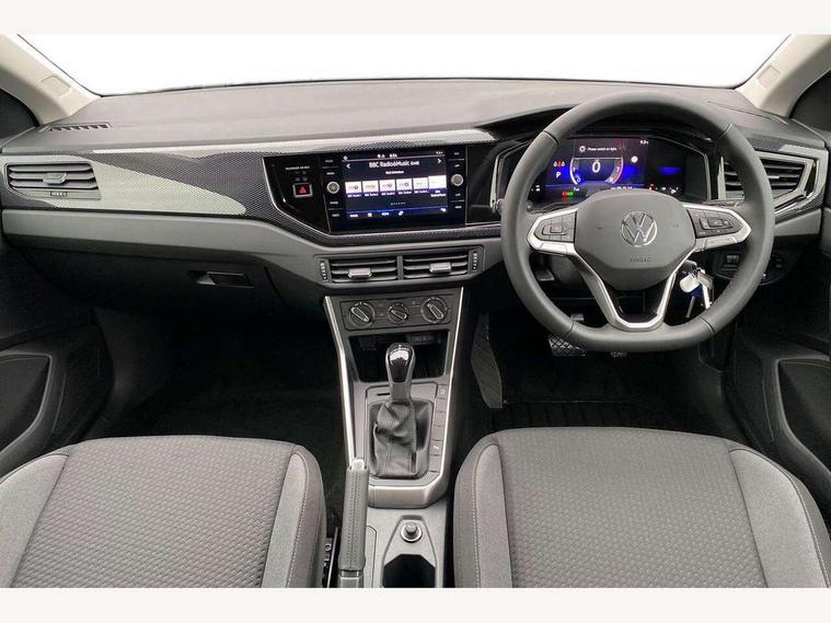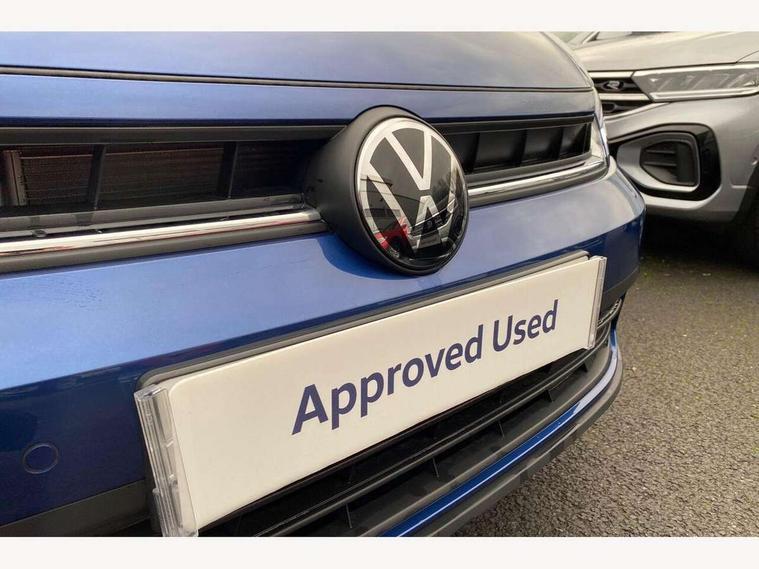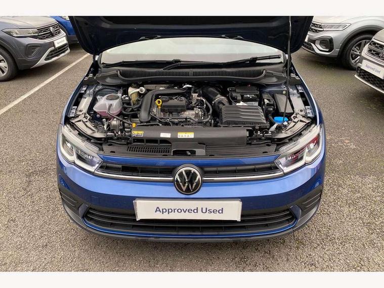 Advanced driver attention and drowsiness monitor, Bluetooth mobile phone interface, Dynamic road sign display, Emergency call service, Mobile phone preparation with inductive charging function, Multifunction front facing camera for distance control, Power assisted speed sensitive steering, Predictive adaptive cruise control without follow-to-stop and speed limiter, Preparation for navigation system with media and internet package, Preparation for We connect and We connect plus, Rear view camera, Speedo and rev counter, electronic odometer, trip, service interval display and exterior temperature gauge, Standard rear axle, Travel Assist - Lane keeping system and traffic jam assist, Travel assist including emergency assist, Trip computer, Warning signal and warning light for front and rear seatbelts not fastened, Washer fluid level indicator, Wireless app connect, Front wheel drive, Rear shock absorpion, Start-stop system with battery regeneration (recuperation - energy recovery during braking), DAB Digital radio, Diversity antenna for FM reception, Automatic dimming interior rear view mirror, Automatic headlight control with LED separate daytime running lights with coming/leaving home function, Body colour bumpers with chrome inserts, Body colour door handles, Body colour door mirrors, Electric front windows, Engine badge deletion, Headlight range adjustment, Heat insulating and laminated safety glass windshield, LED Headlights, LED rear combination lamps, Power folding adjustable/heated exterior mirrors and front passenger exterior mirror lowering function, Rain sensor, Rear electric windows, Rear fog light, Rear side wing doors, Rear tinted glass from B-pillar backwards approx 65% tinted, Rear windscreen washer and wiper with interval delay, Third brake light, 12V power socket in centre console, 2 front and 2 rear reading lights with switch off delay and dimmer, 2 USB-C ports in the front, 2 USB-C charging sockets on the center console in the rear, 3 rear head restraints, 60/40 split folding rear seat and rear seat bench not split, Carpet mats, front and rear, Ceramique roof lining, Chrome plated radiator grille inserts, air vent surrounds and light switch surrounds, Door and side trim panel, Driver and front passenger seat height adjustment, Driver/passenger sunvisors with illuminated vanity mirrors, Front centre armrest, Front seat backrest storage pockets, Front standard seats, Handbrake lever handle in leather, Hartley/Thomas cloth upholstery, Headliner in recycled material, Isofix child seat preparation easy-fit (for two outer rear seats, and front passenger seat) compatible with I-size, Leather trimmed gear knob, Luggage compartment cover, Luggage compartment lighting, Removable luggage compartment floor, Single front passenger seat, Standard climatic zones, Standard pedal cluster, Three spoke leather wrapped multifunction steering wheel with shifting paddles, Light and vision pack - Polo, 3 point height adj front seatbelts + pretensioners, 3 point seat belt for centre rear seat, 3 point seatbelts, outer rear with ECE lable, ABS, Driver and front passenger airbag with front passenger airbag deactivation, Drivers and front passengers safety optimised head restraints, ESC (Electronic stability control) + EDL (Electronic Differntial lock) and ASR (Traction control), Extended and predictive pedestrian/ cyclist protection, Front assist with autonomous emergency braking (for Adaptive Cruise Control ACC up to 130 mph), Front curtain and side airbags with center airbag, Front disc brakes, Hill hold control, Manual child lock in rear doors, Rear drum brakes, Single tone horn, Tyre pressure loss indicator, Alarm with interior protection, Anti-theft alarm system with interior monitoring, backup horn, and towing protection, Anti-theft wheel bolts, Electronic engine immobiliser, Lava stone black gloss/matt decorative inserts in dash and front door panels, 16" Torsby alloy wheels, Low rolling resistance tyres,