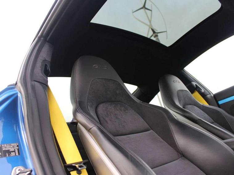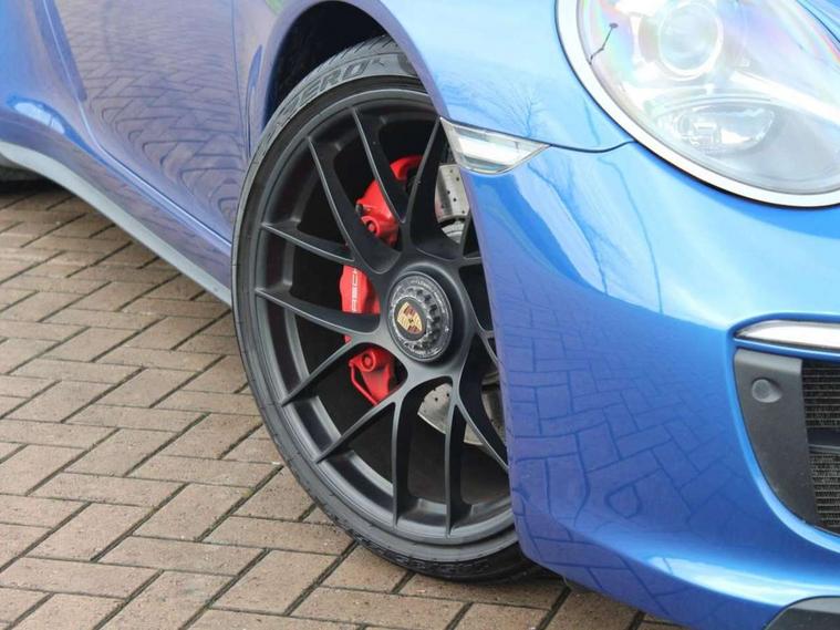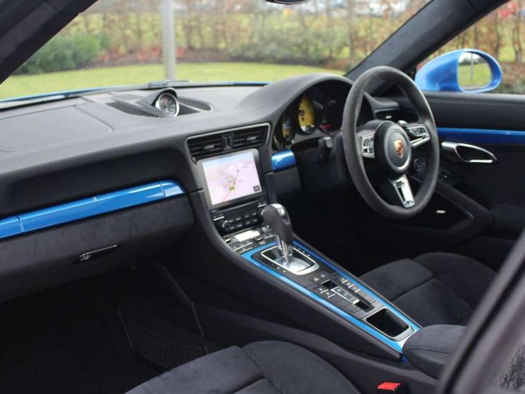 Black rev counter, Instrument cluster with high-resolution 4.6-inch TFT colour display, Mobile telephone preparation, On board computer, PCM voice control, Porsche communication management including navigation, Sports button, Telephone module for PCM, Porsche stability management (PSM), Porsche TORQUE Vectoring (PTV) with mechanical rear differential lock, Connect Plus with Apple CarPlay, wireless internet access, Carfinder, Remote Vehicle Status and Remote Services, DAB Digital radio, USB interface in rear, 2 speed front wipers + intermittent wipe, Air blades with active cooling air flaps, Aspherical driver's exterior mirror, Automatic headlamp levelling, Automatic headlights, Automatically extending rear boot spoiler, Body colour bumpers, Body colour door mirrors, Dynamic cornering light with headlamp levelling and speed sensitive driving light control, Electric windows + one touch open/close + door seal protection function, Electrically adjustable and heated door mirrors, Front lip spoiler, Green tinted heat insulating glass, Headlight range control, Headlight washers, Heated rear window, Heated windscreen washers, LED daytime running lights, LED tail lights, Sports exhaust system, Tinted LED tail lights, Trim strips in high gloss finish, Welcome home function, Windscreen with grey top tint, 12V socket in front passenger footwell, 2 in-dash cupholders above glove compartment, Air quality sensor, Air recirculation system, Alcantara centre console main storage compartment, Alcantara door handle, Alcantara door panel armrest, Alcantara roof lining, Alcantara seat centre panels, Alcantara steering wheel rim, Centre console storage, Clothes hooks on front seat backrests, Continuously variable dimming interior light, Dual zone automatic climate control, Footwell illumination, Glovebox illumination, Ignition Lock illumination, Illuminated vanity mirrors, Illumination of luggage compartment, Interior orientation lighting, Isofix child seat preparation, Leather handbrake grip, Leather interior door handles, LED reading lights, Manual height/reach adjust steering wheel, Pollen/active carbon filters, Split folding rear seats, Sport design steering wheel, Steering wheel gearshift paddles, Storage compartments in doors, Sport chrono package - 911 [991] PDK, 3 point inertia reel seatbelts, ABS, ASR + ABD, Driver/Front Passenger airbags, Electronic parking brake, Front head airbags, Front passenger airbag deactivation, Front seat thorax airbags, Front seatbelt pretensioners with force limiters, Height adjustable front seatbelts, POSIP, PTM (Porsche Traction Management), Red brake calipers, Tyre pressure monitoring system, Alarm system with interior radar surveillance, Anti-theft wheel bolts, Porsche vehicle tracking system (VTS), Remote control central locking, Transponder engine immobiliser, Brushed aluminium dash trim and centre console inserts, Sealing compound and compressor kit,