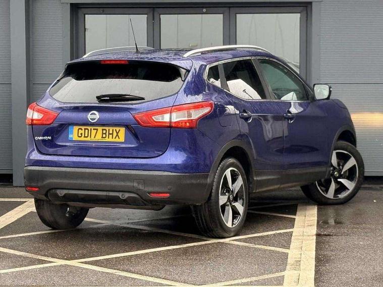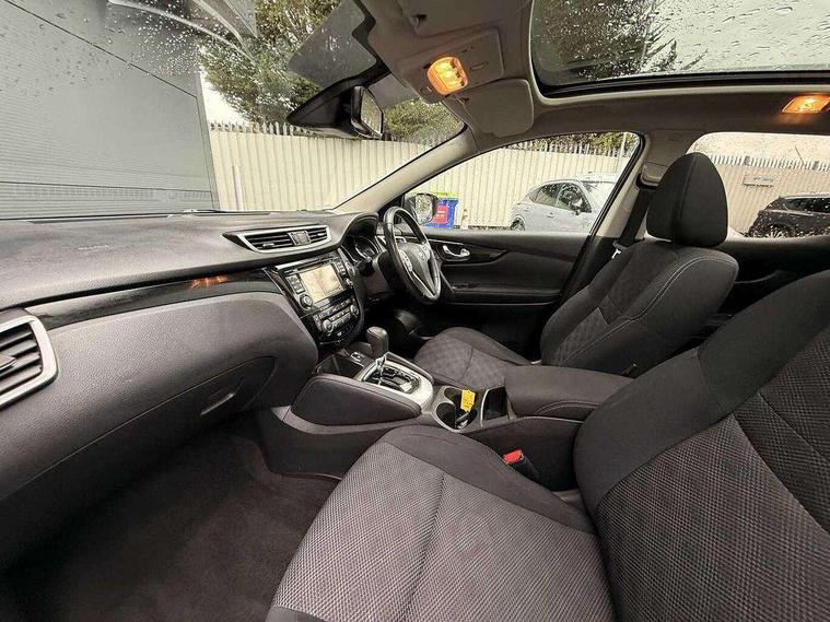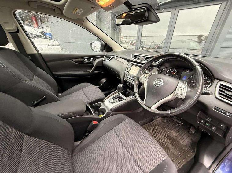 5" TFT driver information centre, 7" touch screen, Around View Monitor, Bluetooth phone integration system, Cruise control, Front and rear parking sensors, Lane departure warning system, Nissan connect sat nav system, Push button starter, Service interval indicator, Speed limiter, Speed sensitive power steering, Traffic sign recognition, Trip computer, 6 speakers, DAB radio/CD player, Steering wheel mounted audio controls, USB/aux input socket, 2 speed wipers+variable intermittent wipe, Automatic headlamp activation, Black honeycomb front grille, Body colour bumpers, Body colour door mirrors and handles, Chrome window surround, Electric folding and heated door mirrors, Electric front/rear windows, Front fog lights with chrome surrounds, High beam assist, Interior mirror with auto anti dazzle, LED daytime running lights, Rain sensor windscreen wipers, Rear privacy glass, Rear wiper, 12V socket, 60/40 split folding rear seat, Ambient interior lighting, Cloth upholstery, Driver's lumbar support, Driver/passenger front seatback pockets, Dual zone climate control, Footwell ambient lighting, Front armrest, Front cupholders x 2, Front headrests, Front seat belt pre-tensioners with load limiters, Height adjustable driver's seat, Height adjustable passenger seat with lumbar support, Illuminated glovebox, Isofix child seat preparation, Leather gearknob, Leather steering wheel, Luggage area divider, Map reading lamp, Pollen filter, Rake/reach adjustable steering wheel, Rear armrest with 2 cupholders, Rear headrests, ABS, brake assist and EBD, Active Trace Control, Child locks on rear doors, Curtain airbags, Driver/front passenger airbag, Electronic parking brake, ESP + traction control, Forward emergency braking, Height adjustable front seatbelts, Hill start assist, Side airbags, Three 3 point rear seatbelts, Tyre pressure monitoring system, Warning triangle and first aid kit, Alarm, Immobiliser, Intelligent Key, Remote central locking, 18" Diamond cut alloy wheels, Tyre puncture repair kit,