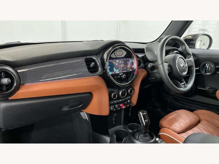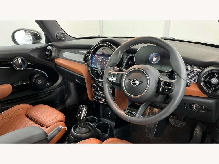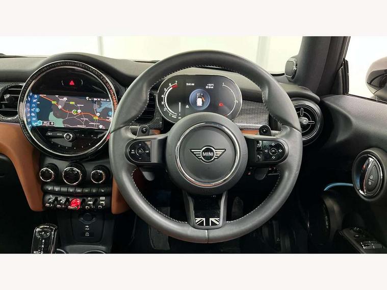 Apple CarPlay, Automatic start/stop function with brake energy recuperation, Compatible mobile phone bluetooth with audio streaming, Cruise control with brake assist, Electro-mechanical speed dependant steering assistance, Flexible car sharing preparation, Instrument cluster, MINI Driving Modes - centre toggle switch to control driving setting (sport, mid and green), Mini E-call, MINI TeleServices, On board computer, Rear park distance control, Service interval indicator, Double Vanos system, Fully variable valve control, High precision injection, Performance Control, Steptronic sport transmission with double clutch and steering wheel paddles, 8.8" touchscreen with LED ring, FM tuner and DAB digital radio, 3rd brake light, Automatic headlight activation switch, Bonnet scoop, Chrome line exterior - radiator grille bars, tailgate handle, lower front grille grating and rear central fog-light, Dynamic brake lights, Electric front windows, Heated rear window, Heated windscreen washer jets, LED headlight with closed ring and daytime driving lights, Metal door sill strips with Cooper S, Model logo Cooper S on right of tailgate, Rain sensor window wipers, Rear fog lights, Rear LED lights with union jack design, Rear window wiper, Side scuttle panel with integrated indicator, Sun/heat protection glass, White indicator lenses, 12V Accessory socket in centre console, 2 seat bench in 2nd row, 4 lashing eyes in luggage compartment, 60/40 split folding rear seat, Carbon black colour line - Knee roll and door armrest, Chrome interior highlights, Chrome line interior - air vents, gear lever base, door handles and speakers in doors, Cupholders, Front and rear head restraints, Front and rear isofix with front passenger airbag deactivation, Front floor mats in velour, Glove compartment, Height and length steering column adjustment, Interior lighting with 12 different colours across the dashboard, underneath door bezel with illuminated laser-engraved design on central display, Leatherette gearshift lever and handbrake gaiters, LED reading lights, vanity mirror lights, front foot well light and spotlight on front seats, Manual air conditioning, Mechanical seat adjustment - forward/back & backrest for front seats and driver seat height adjust, MINI yours badge on exterior pillar, Multifunction steering wheel, Passenger seat height adjuster, Satellite grey headlining including grab handles and clothes hooks, Single front passenger seat, Storage compartments in doors, Storage pocket on back of front seats, Sunvisors with vanity mirrors, Walknappa leather steering wheel with grey seam and MINI Yours badge on Piano Black lower steering wheel spoke, 3 point seatbelts on all four seats, 6 Airbags - front, side, head and seat belt tensioners, Anti-lock braking system (ABS), DSC - Dynamic Stability Control, Front and rear disc brakes, Two tone horn, Tyre pressure monitoring system, Alarm system with tilt sensor, monitoring doors, bonnet interior and tailgate, Electronic vehicle immobiliser, Start/stop toggle with keyless go, Tool kit,