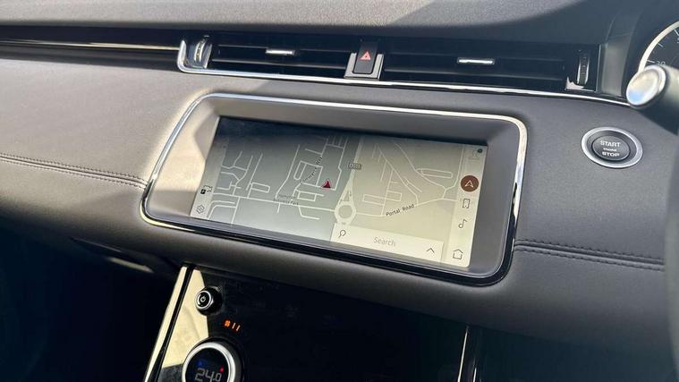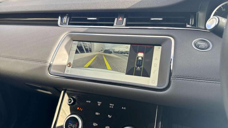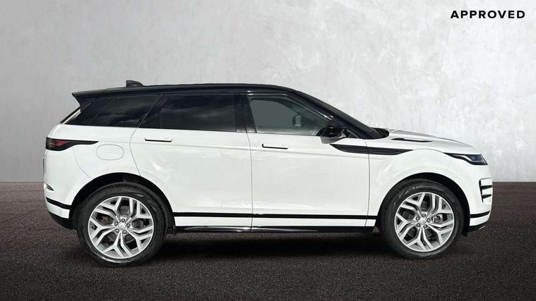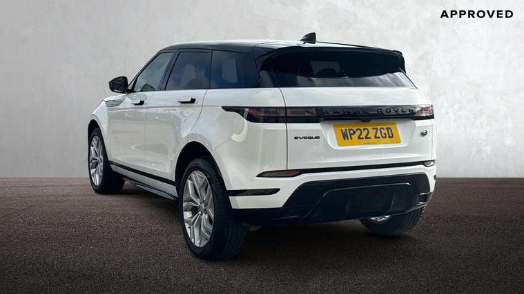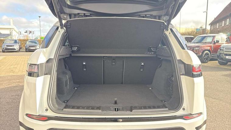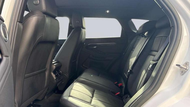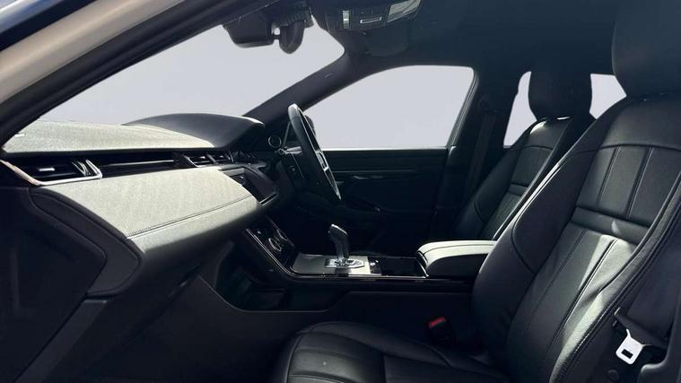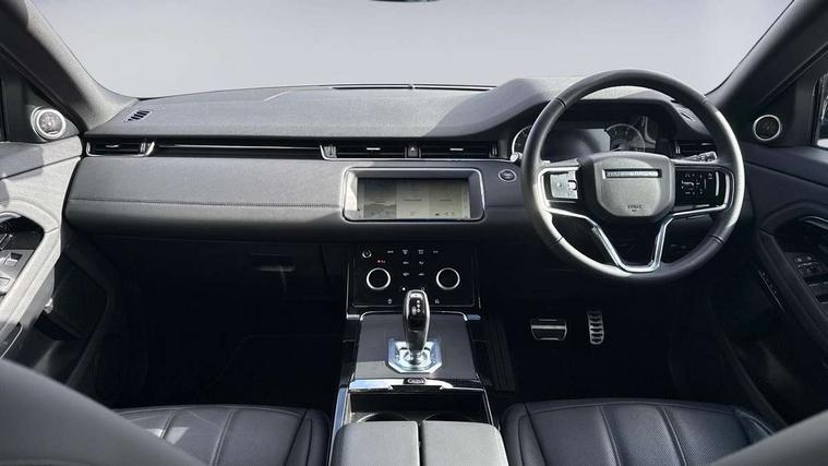 Adaptive cruise control, Android Auto, Apple car play, Blind spot assist, Bluetooth connectivity, Brake pad wear indicator warning light, Driver condition monitor, eCall emergency system, Electronic power assisted steering (EPAS), Front and rear parking aid, InControl remote, Land Rover InControl apps, Lane keep assist, Pivi pro connected includes upgraded infotainment, connected navigation pro, Nuance speech licence, Push button starter, Rear collision monitor, Rear traffic monitor, Traffic sign recognition with adaptive speed limiter, Voice control system, All terrain progress control, Efficient Driveline, Large fuel tank, Passive suspension, Terrain Response 2 Auto, Digital Audio Broadcast radio-DAB, Steering wheel mounted controls, Auto headlights, Automatic headlight levelling, Electric windows with one touch open/close and anti trap, Evoque and R-Dynamic badge, Flush deployable exterior door handles, Heated rear window with timer, Heated washer jets, Heated windscreen, Power fold, auto-dimming, heated door mirrors with approach lights and auto dimming driver side, Rain sensing windscreen wipers, Rear fog lights, Rear side wing doors, Rear wiper, Tailgate spoiler, Third brake light, 40:20:40 split folding rear seats with centre headrest and armrest, Ambient interior lighting, Bright metal pedals, Isofix system on outer rear seats, Overhead lighting console, Overhead stowage for sunglasses, Passive front head restraints, Rear air vents, Rear centre headrest, Rear head restraints, Satin chrome gearshift paddles, Single passenger seat, Sunvisors with illuminated vanity mirrors, Twin sliding front centre armrest, 3 rear 3 point seatbelts, Anti-lock braking system (ABS), Customer configurable autolock, DSC - Dynamic Stability Control, Electronic brake force distribution, Electronic parking brake, Electronic traction control, Emergency braking, Front and rear seatbelt reminder, Hill descent control, Hill launch assist, Low traction launch, Power operated child locks, Roll stability control, Six airbags - Driver and passenger airbags/driver knee airbag/front side airbag and curtain airbags, Torque vectoring brake, Tyre pressure monitoring system, Alarm, Immobiliser, Intrusion sensor, Keyless entry, Locking wheel nuts,