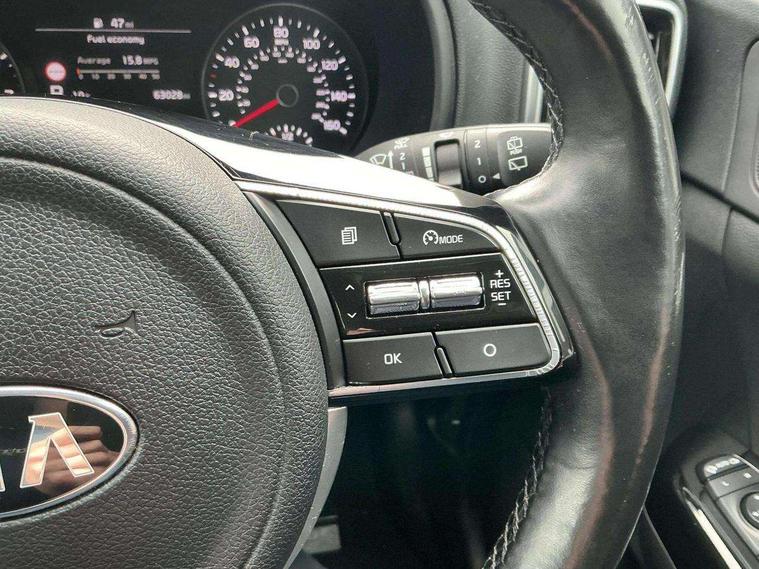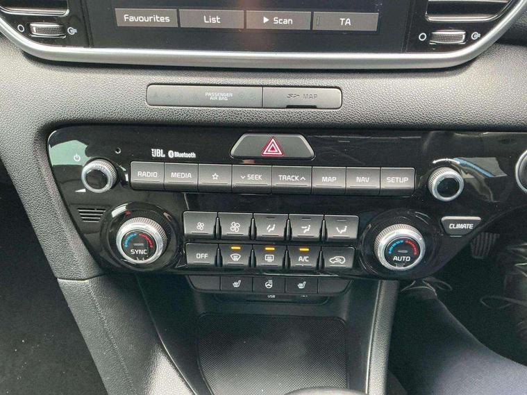 360 degree surround camera, 4.2" supervision colour cluster display, 8" touchscreen satellite navigation with European mapping and traffic messaging channel, Android auto with voice control, Apple car play with voice control, Blind spot collision warning, Bluetooth connectivity with voice control, Cruise control + speed limiter, Digital clock, Drive mode selector, Driver attention warning, Emergency stop signalling system, Forward collision avoidance assist, Front parking sensor, Kia connected services featuring TomTom live, Lane keep assist, Rear parking sensor, Speed limit information, Speed sensitive power steering, Trip computer, Windscreen washer level indicator, Intelligent Stop and Go, Bluetooth audio streaming, DAB Radio with MP3, JBL Premium sound system with 8 speakers, external amp, subwoofer and front centre speaker, Rear USB port, Steering wheel mounted audio controls, USB/iPod/auxiliary input connections, All round electric windows with drivers auto up/down function, Auto dimming rear view mirror, Automatic defog system, Automatic headlights, Black wheel arch body mouldings and side sills with chrome insert, Body colour door handles with chrome inserts, Body colour door mirrors, Chrome front bumper insert, Chrome grille surround, Chrome window surround, Cornering light, Electric panoramic glass sunroof, Electrically adjustable/heated/folding door mirrors with LED indicators, Front fog lights, High beam assist, High gloss black diamond mesh radiator grille, LED Bi-Function headlights, LED daytime running lights, LED rear lights, Privacy glass (rear side windows and rear screen), Rain sensing front wipers, Rear spoiler, Rear wiper, Roof rails, Shark fin antenna, Silver painted front and rear skid plates, Speed sensitive front wipers, Tinted glass, Trailer stability assist, Welcome and follow-me home light functionality, Wide view drivers door mirror, Windscreen wiper de-icer, 10 way driver/8 way passenger electrically power adjustable seats, 12V power in front and rear centre console, 3 x passenger assist grips, 60/40 split folding rear seat, Air filter, All-round height adjustable headrests, Centre console storage box, Door armrest in leather, Driver and front passenger side sunvisors with illuminated vanity mirrors, Drivers seat power lumbar support, Dual zone automatic air conditioning, Front and rear door storage, Front cabin LED map light with sunglasses case, Front door courtesy reflectors, Front seat and rear pockets, Front/rear centre armrests, Gear shift indicator, Glovebox illumination, Heated front and outer rear seats, Heated steering wheel, Illuminated glovebox, Interior door lock/unlock function, ISOFIX Child seat top tethers and anchor fixings, Leather steering wheel, Leather trimmed gearshift, Leather upholstery, Light grey headlining, Luggage area LED light, Luggage area load cover, Luggage net with hooks, Rear centre armrest with cupholder, Rear coat hooks, Rear headrests, Satin chrome interior door handles, Side cabin LED lights, Stainless Steel Scuff Plates, Tilt/telescopic adjustable steering wheel, Ventilation ducts to rear compartment, 3x3 point rear seatbelts, Active front headrests, All round 3-point seatbelts, Anti-lock braking system with electronic brakeforce distribution, Dual front side airbags, Electronic parking brake, Electronic stability control with downhill brake control, ESP + traction control, Front passenger airbag cut-off switch, Front seatbelt pretensioners + load limiters, Height adjustable front seatbelts, Hill start assist control (HAC), Impact sensing auto door unlocking, Rear door child safety locks, Twin curtain airbags with roll over sensor, Twin front airbags, Tyre pressure monitoring system, Advanced anti-theft system including immobiliser and alarm, Door deadlocks, Engine Start/Stop Button with Smart Entry System, Locking wheel nuts, Speed sensitive auto door locking, Visible vehicle identification number, High gloss black centre fascia, 19" Alloy wheels, Temporary spare wheel,