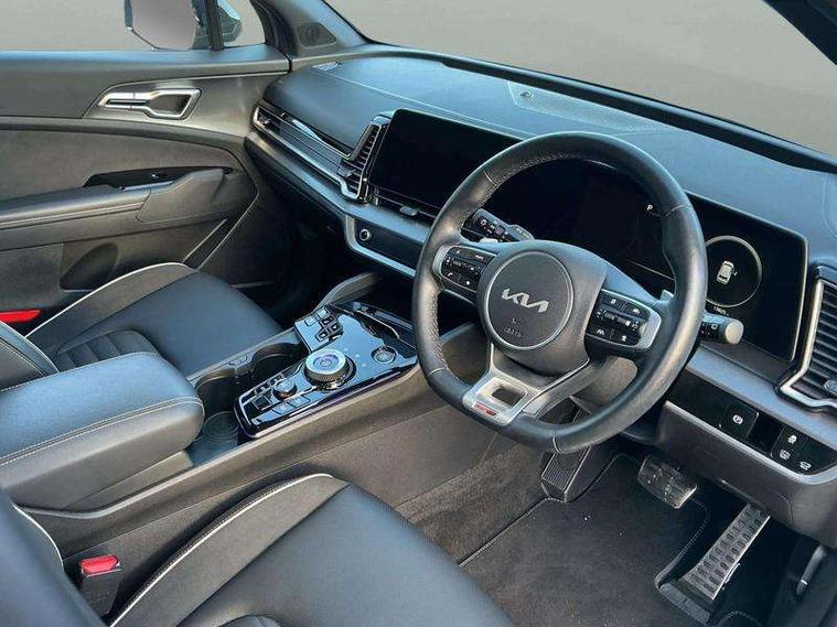 12.3" Display with navigation, 12.3" supervision colour cluster display, 360 degree around view monitor, Apple car play/Android Auto with voice control, Blind spot collision avoidance assist, Blind spot view monitor, Drive mode selector, E-call, Forward collision avoidance assist (FCA) - city/pedestrian/cyclist/junction covering, Front and rear parking sensors, Highway Driving Assist (HDA), Intelligent speed limit assist, Kia Connect (UVO), Lane Following Assist (LFA), Lane keep assist, Low washer fluid warning, Parking collision avoidance assist (PCA), Remote smart parking assist, Reversing camera system integrated into centre fascia screen, Smart cruise control with stop and go functionality, Smart power tailgate, Speed sensitive power steering, Trip computer, Windscreen washer level indicator, Wireless Smartphone charger, Intelligent Stop and Go, Bluetooth audio streaming, DAB Radio with MP3, Harman Kardon premium sound system, Rear USB port, Steering wheel mounted audio controls, USB C type charging ports on centre console, USB C type charging ports on side of front seats, USB port for connection of a media device, All round electric windows with drivers and front passenger auto up/down function, Automatic headlight control system, Automatic window defogger, Backlite glass heated with timer, Body colour and black bumper with silver accents, Body colour exterior door handles, Body colour radiator upper garnish and door garnish, Dual LED adaptive headlamps, Electric panoramic glass sunroof (Electric one touch with safety function), Electrically adjustable/heated/folding door mirrors with LED indicators, Front and rear chrome skid plates, Gloss black door mirrors, Gloss black radiator grille, Gloss black side sill and wheel arch body mouldings, Glossy black roof rack, High beam assist, Interior electrochromic mirror, LED daytime running lights, LED front fog lamps, LED High mounted stop light, LED rear combination lamp, Rain sensing wipers with aero blades, Rear fog lamp, Rear privacy glass, Rear side wing doors, Rear spoiler, Rear wiper, Satin finished beltline, Silver coloured inserts to bumpers, Tinted rear glass, Trailer stability assist, 10 way driver/8 way passenger electrically power adjustable seats, 12V power socket in front centre fascia and luggage compartment, 3 seat bench in 2nd row, 3 x passenger assist grips, 40/20/40 split folding rear seat, All-round height adjustable headrests, Ambient lighting, Black headlining, Centre console storage box, Cupholders in rear armrest, D-Shaped sports leather steering wheel and perforated inserts with GT-Line logo, Door courtesy lamps, Drink holder at centre armrest, Driver and front passenger side sunvisors with illuminated vanity mirrors, Driver seat memory function, Drivers seat power lumbar support, Front and rear door storage, Front seat and rear pockets, Front/rear centre armrests, Gear shift indicator, Glovebox illumination, Heated front and outer rear seats, Heated steering wheel, Interior door lock/unlock function, ISOFIX Child seat top tethers and anchor fixings outer rear seats, LED interior personal lamp, LED lighting in overhead console, Luggage area LED light, Luggage area load cover, Luggage net with hooks, Metal paint interior door handles, Paddle shift controls, Rear cabin light, Rear coat hooks, Single front passenger seat, Sports pedals, Suede leather upholstery, Three zone climate control, Tilt/telescopic adjustable steering wheel, Ventilated front seats, Ventilation ducts to rear compartment, Active front headrests, All round 3-point seatbelts, Anti-lock braking system (ABS), Dual front side airbags, Dual horn, Electronic parking brake, Electronic stability control with downhill brake control, Front passenger airbag cut-off switch, Front seatbelt pretensioners + load limiters, Height adjustable front seatbelts, Hill start assist control (HAC), Impact sensing auto door unlocking, Multi collision brake assist, Rear door child safety locks, Rear seat alert system, Traction control, Twin curtain airbags, Twin front airbags, Tyre pressure monitoring system, Advanced anti-theft system including immobiliser and alarm, Door deadlocks, Engine Start/Stop Button with Smart Entry System, Locking wheel nuts, Speed sensitive auto door locking, Visible vehicle identification number, Aluminium pattern finish centre fascia and door garnish, 18" GT-Line alloy wheels, Michelin tyres, Tyre mobility kit,
