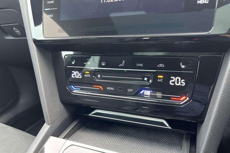 Adaptive cruise control (ACC) with speed limiter, front assist (reacting vehicles pedestrian and cyclists) and follow to stop, App connect including wireless Apple CarPlay, Camera for warning system, Digital cockpit with 10.25" high resolution TFT display screen with customisable menus and information, Driver alert system with fatigue detection, Driver profile selection including ECO function, Dynamic road sign display, eCall - Emergency call service for SOS calls to emergency response, Emergency assist, Hands free boot opening, Press and drive key, Progressive steering, Speedo and rev counter, electronic odometer, trip, service interval display and exterior temperature gauge, Tailgate, Travel assist - Lane keeping assist and traffic jam assist, Voice activation for telephone and navigation, Start/stop function with battery regeneration, External, USB type C data sockets with increased charging performance front (45 Watt), Premium USB cable in choice of either Apple or Android smartphone compatibility, Auto dimming interior rear view mirror, Automatic headlights, Body colour door handles, Body colour side skirt, Body coloured top and matt black lower door mirrors with integrated indicators, Chrome plated radiator grille inserts and light switch surrounds, Chrome side window surrounds, Dynamic headlight range control, Electric folding door mirror, adjustable, heated with front passenger exterior mirror lowering function, Front and rear electric windows, Front and rear stainless steel door sill protection, Front windscreen washers and wipers with 4x interval delay, Heat insulating side and rear windows, Heated rear windscreen, Heated windscreen washer jets, LED 3rd brake light, LED rear combination lamp with dynamic indicators, LED rear number plate lights, Panoramic sunroof with tilting and sliding including integrated roller blind, R Line design body coloured bumpers, Rain sensor, Rear fog lamp on one side and reversing lamp on both sides, Rear side wing doors, Rear tinted glass from B pillar backwards, approx 65% tinted, Rear windscreen washer and wiper with interval delay, Roof spoiler, Tailpipes behind rear bumper, 12V socket in front centre console, 12V socket on rear of front centre armrest, 3 rear head restraints, 3 seat bench in 2nd row, 30 colours options interior ambient lighting, 60:40 split folding rear seat backrests with centre armrest, Air care climatronic 3 Zone electronic air conditioning with automatic air recirculation, Black roof lining, Chrome trim on upper and lower air vents extending across cockpit, Driver and front passenger sunvisor with vanity mirror, Front + rear carpet mats, Front cupholders x 2, Front footwell illumination, Front sports comfort seats, Glovebox, Heated front seats, Height/reach adjust steering wheel, Isofix child seat preparation easy fit for two outer rear seats, Luggage compartment lighting, Removable luggage compartment cover, Single front passenger seat, Split folding front seat backrest with front centre armrest, Stainless steel pedals, Two LED front reading light, 3 rear three point seatbelts, ABS+EBD+Brake assist, Child locks on rear doors, Driver airbag and front passenger airbags with deactivation switch including driver knee airbags, Electronic parking brake, Electronic stability control (ESC) and Electromechanical brake booster, Front disc brakes, Front side airbags with curtain airbags, Hill start assist, Pro active occupant protection to detect critical situations with elevated accident potential from the front, Rear disc brakes, Three point height adjust front seatbelts + pretensioners, Two tone horn, Tyre pressure loss indicator, Warning buzzer for seatbelts if unfastened, Warning triangle, Alarm with interior protection with deactivation via infotainment system, Electronic engine immobiliser, Keyless entry system including start/stop button on centre console, Remote central locking, Aluminium decorative inserts, Chrome trim on lower doors in front and rear, Leatherette insert on door and side trim panel in foam film, Piano black decorative inserts in centre console,