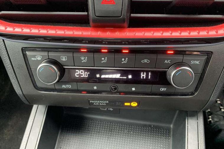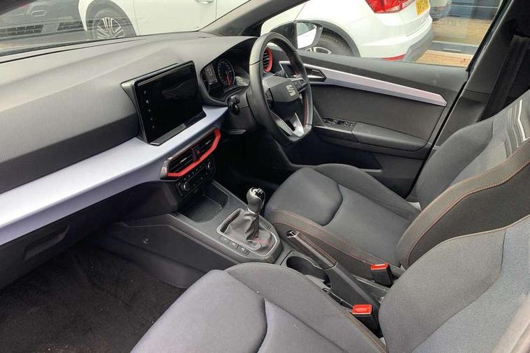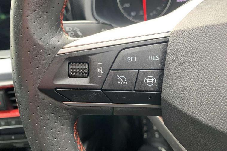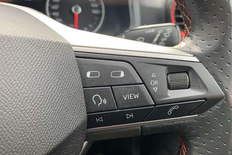'Lights On' Reminder warning buzzer, 9.2" touchscreen navigation system with type C USB socket, Voice control and DAB/AM/FM radio, Auto start and stop system, Bluetooth audio streaming with handsfree system, Digital clock, Full link smartphone integration with mirror link, wireless apple carplay, Google android auto + USB Type C cable for apple and android devices, Lane assist, Low fuel warning light, Outside temperature gauge, Power Steering, Seat connect with safety, service, remote and online, SEAT drive profiles and ECO function, SEAT logo boot release, Speed limiter, Trip computer, Sports suspension, Auxiliary input socket, Radio/MP3 player, SD card slot, Steering wheel mounted controls, Anti theft roof antenna, Auto dimming rear view mirror, Automatic rain sensing wipers, Black door mirrors, Body colour bumpers, Body colour door handles, Brilliant black window surrounds, Dark tinted rear windows, Electric adjustable/heated/folding door mirrors, Electric front windows, Electric headlight adjustment, Electric rear windows, Front/rear fog lights, FULL LED automatic headlights with dynamic headlight range control, coming and leaving home, LED daytime running lights, LED tail lights, Rear roof spoiler with FR twin exhausts, 60/40 split folding rear seat, Ambient interior lighting, Chrome detailing and black headlining, Cloth upholstery, Dual zone climate control with combination filter, Front courtesy lights, Front cupholders x 2, Front reading lights, Gear shift indicator, Glovebox, Height adjustable front and rear headrests (five), Height adjustable front seats, Height/reach adjust steering wheel, Illuminated air vent surrounds, Illuminated boot, Instrument lighting with brightness control, Isofix, Leather multifunction flat bottomed sports steering wheel, Passenger sunvisor, Sports seats, Sunvisors with mirror and driver side card holder, 3 point seatbelts on all 3 rear seats, ABS, Active front headrests, Child locks on rear doors, Electronic stability control, Energy recovery system, Front assist forward collision warning and autonomous emergency braking, Front driver and passenger side airbags with curtain airbag and front passenger airbag deactivation, Hill hold control, Multi-Collision braking, Seat belt reminder for front and rear seats, Tiredness recognition system, Tyre pressure monitoring system, Electronic engine immobiliser, Locking wheel bolts, Perimeter alarm and interior monitoring with backup horn and tow away protection, Remote central locking + deadlocks, 17" Alloy wheels in Brilliant silver,