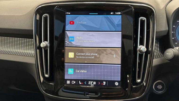 12.3" Progressive Driver Display, 360 degree surround view parking camera with side proximity sensors, 9" centre console portrait touch screen, Adjustable steering wheel force, Bluetooth hands free telephone kit, E-call, Front park assist, Google automatic services - Nav with google maps, apple carplay/android auto, voice recognition with google assistant, Hands free power tailgate, Lane keep assist with driver alert control, Oncoming Lane Mitigation, Rear park assist, Speed limiter, Speed sensitive steering, Wireless/Inductive Mobile Phone Charging, Dynamic chassis, DAB Digital radio, Premium Sound by Harman Kardon, Dolby Pro Logic II Surround Sound, Dirac Unison, 12 speakers/600W and subwoofer, Steering wheel mounted remote controls, Active bending pixel LED headlights with adaptive shadow technology, Active high beam incorporating daytime running lights, Adaptive brake lights with high level LED brake lights, Auto dimming interior mirror, Automatic headlamp levelling, Dark tinted windows for rear door side windows and cargo compartment, Front aluminium tread plates, Front and rear electric windows, Headlight cleaning system, High gloss black front and rear skid plate, High gloss black mesh front grille with high gloss black surround, High gloss black window trim, Home safe and approach lighting, Integrated roof rails in high gloss black, LED front fog lights, Power glass tilt and slide panoramic sunroof with sun curtain, Puddle lights, Rain sensor with automatic windscreen wiper activation, Rear side wing doors, Rear wiper, Roof antenna, Roof spoiler, Visible VIN plate, 12V socket in front tunnel console and luggage compartment, 2-Zone electronic climate control with CleanZone air quality system and pollen filter, 3 seat bench in 2nd row, 3 Spoke tailored steering wheel with chrome trim, 60/40 versatile split folding rear seat, A-pillar parking ticket holder, Ambient front door and instrumental panel lighting, Centre console cupholders and storage, Flexible load floor and grocery bag holder, Floor mats, Front door pocket and front cupholder illumination, Front footwell illumination, Front headrests, Front reading light and theatre lighting, Front seat cushion extensions, Front tunnel pocket, Glovebox bag hook, Heated front seats, Height adjustable passenger seat, Height/reach adjustable steering column, High gloss centre tunnel deco, Illuminated glovebox, Illuminated luggage compartment, Illuminated tailgate, Illuminated vanity mirrors, Integrated waste bin, Isofix attachments on outer rear seats, Load protection net, Multi directional lumbar support, Power driver seat with memory + exterior mirrors memory, Power folding rear headrests, Power passenger seat, Rear armrest / integral cup holders / storage tray, Rear reading and courtesy lights, Single front passenger seat, Underfloor cargo storage, Climate pack without heated front seats - XC40, Driver assist pack - XC40, 3x3 point rear seatbelts, City safety with steering support with Pedestrian + cyclist + front collision warning with full auto brake and rear auto brake, Drivers knee airbag, Dual stage driver/passenger airbags, Electronic parking brake with auto hold, First aid kit, Front and outer rear seatbelt reminder and pretensioners, Front seats SIPS airbags, Hill descent control, Hill start assist, Inflatable curtain, Passenger airbag cut-off device, Power child locks on rear doors, Road sign information display, Run off Road Mitigation, Run off Road Protection, SIPS (Side Impact Protection System), Slippery road and hazard light alert, Stability and Traction Control with Spin control, Engine Drag Control and Corner Traction Control, Tyre pressure monitoring system, Vehicle deceleration control with Anti-lock Brake System, Electronic Brake Distribution and Emergency Brake Assist, Warning triangle, WHIPS whiplash protection system - front, Anti-theft alarm including immobiliser/volume sensor + level sensor, Key integrated remote control central locking + fuel flap with deadlocking system and auto open/close power windows, Keyless drive includes keyless entry and keyless start, Locking wheel nuts,