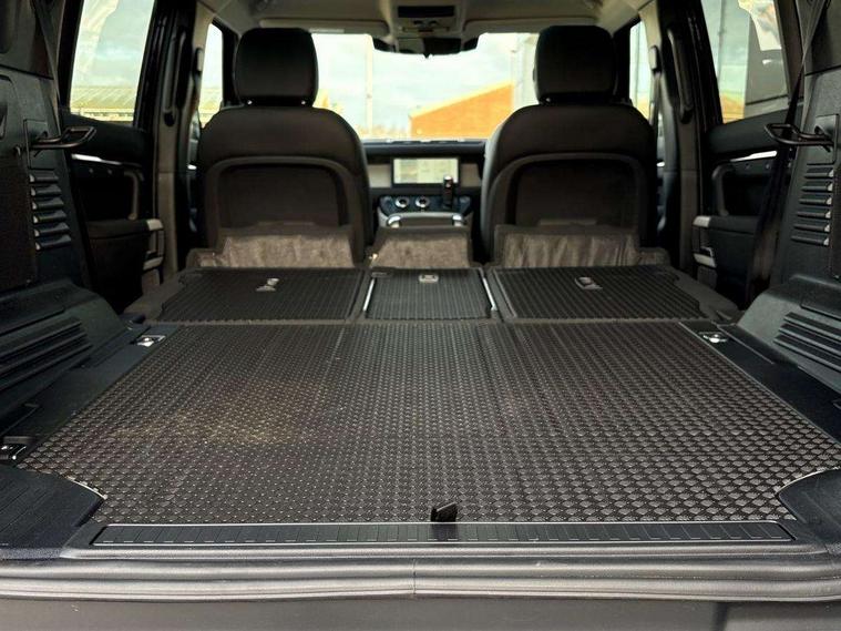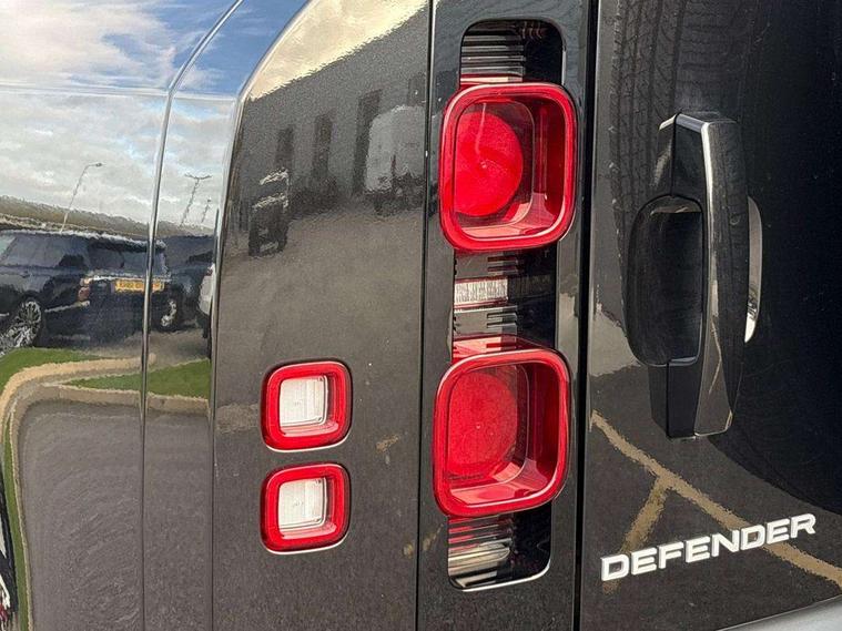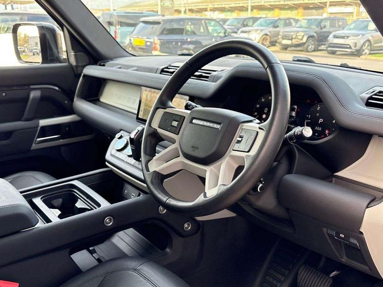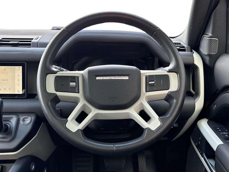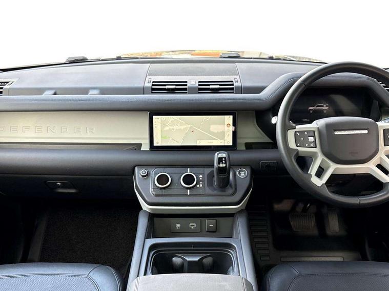 360 degree parking aid, 3D Surround Camera with 360 View, 180 Rear View, Front Traffic Detection, Forward Vehicle Guidance, Tow Hitch Assist and clear sight Ground View, Android Auto, Apple CarPlay, Assisted tailgate with soft close, Blind spot assist, Bluetooth system, Brake pad wear indicator, Clear exit monitor, Connected navigation pro, Cruise control + speed limiter, Driver condition monitor, Electric power assisted steering (EPAS), Interactive driver display, Lane keep assist, Push button start, Rear traffic monitor, Traffic sign recognition with adaptive speed limiter, Trip computer, Wade Sensing, 8 speed automatic transmission, Adaptive dynamics, All wheel drive system, Electronic air suspension, Twin speed transfer box, DAB Radio (Digital Audio Broadcasting), Pivi pro connected, Automatic headlight levelling, Automatic headlights, Body coloured roof, Centre high mounted stop light, ClearSight interior rear view mirror, Electric heated/power fold door mirrors with approach lights and auto dimming driver side, Electric windows with one touch open/close and anti-trap, Follow me home lighting, Front fog lights, Heated rear window with timer, Heated windscreen, Illuminated metal treadplates with brand name script, LED tail lights, Matrix LED headlights with signature DRL, Privacy glass, Puddle lights, Rain sensing windscreen wipers, Rear fog lights, Rear side wing doors, Rear wiper, Side hinged tailgate, Signature graphic (with interior storage), Sliding panoramic roof, Trailer stability assist, 12 way heated and cooled electric memory front seats with 2 way manual headrests, 12V power socket in loadspace, 3 seat bench in 2nd row, 40:20:40 folding rear seats with centre armrest, Alpine lights, Configurable cabin lighting, Durable rubber cabin flooring, Durable rubber loadspace flooring, Electric cabin pre conditioning, Electric reach + rake adjustable steering column, Footwell lights, Front centre console refrigerator compartment, Front passenger isofix child seat attachment, Grained Leather upholstery, Heated steering wheel, Leather gearshift, Light oyster morzine headlining, Loadspace cover, Loadspace Hook, Multifunction steering wheel, Overhead stowage for sunglasses, Premium cabin lighting, Rear headrests, Rear ISOFIX, Rear reading lights, Single front passenger seat, Standard interior, Standard leather steering wheel, Standard seat configuration, Storage glovebox, Sunvisors with illuminated vanity mirrors, Online pack with data plan - Defender, XS Edition exterior pack - Defender, 5 x 3 point seatbelts, ABS, Brake hold function, Cornering brake control (CBC), Cross car beam in light grey powder coat brushed finish, Customer configurable autolock, DSC - Dynamic Stability Control, EBD - Electronic brakeforce distribution, Electric parking brake (EPB), Emergency brake assist, Emergency braking, ESP + traction control, Front airbags with passenger seat occupant detector, HDC - Hill descent control, Hill launch assist, Low traction launch, Power operated child locks, Remote for (e-Call, Optimised assistance call, InControl app, Climate, beep and flash and door), RSC - Roll stability control, Seat belt reminder, TPMS (Tyre pressure monitoring system), Alarm, Immobiliser, Intrusion sensor, Keyless entry, Locking wheel nuts,