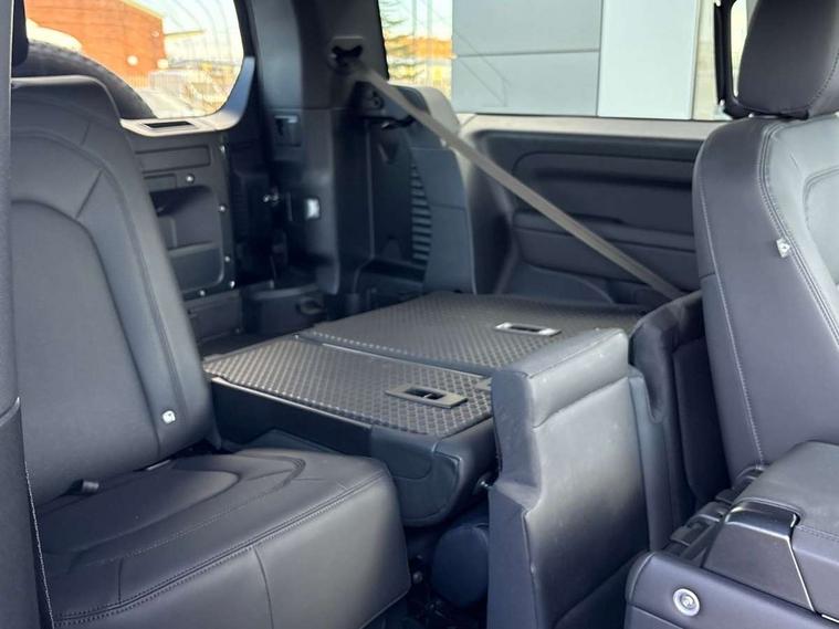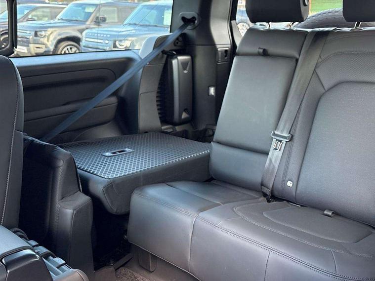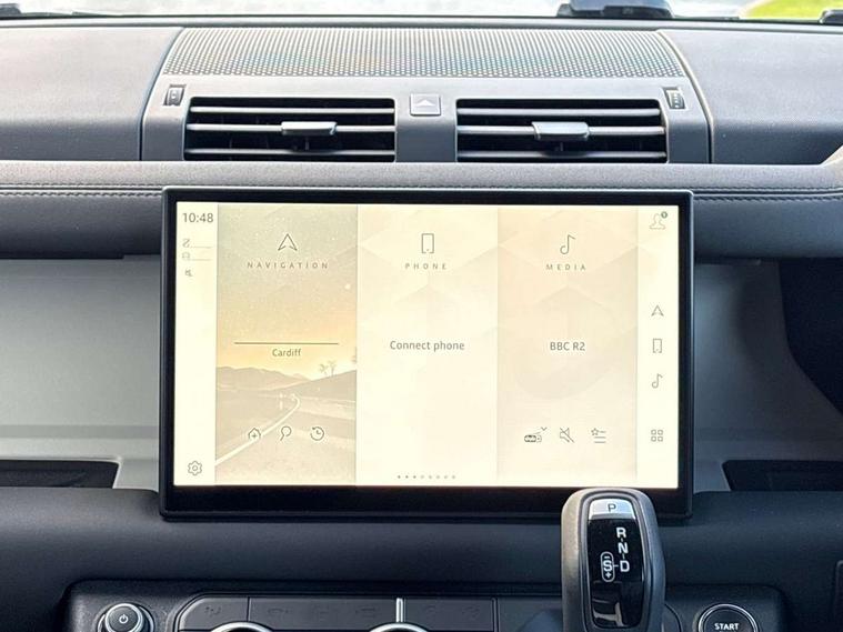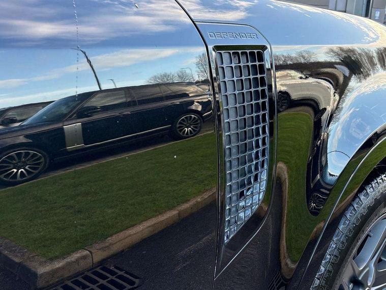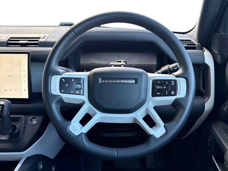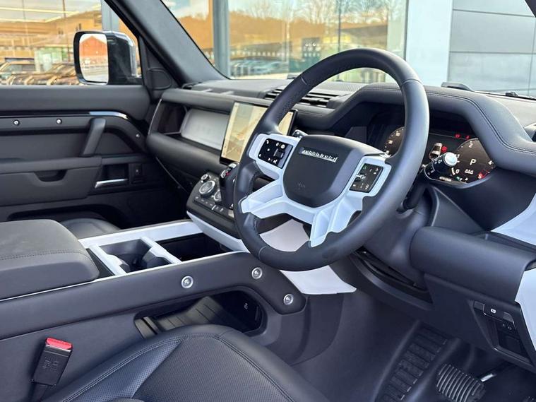 1 x USB-C (power only) & 1 x USB-C (power & data) in Row 1, 2 x USB-C in Row 2, 11.4" touchscreen, 360 degree parking aid, 3D Surround Camera with 360 View, 180 Rear View, Front Traffic Detection, Forward Vehicle Guidance, Tow Hitch Assist and clear sight Ground View, Adaptive cruise control, Android Auto, Apple CarPlay, Blind spot assist, Bluetooth system, Brake pad wear indicator, Clear exit monitor, Connected navigation pro, Driver condition monitor, Electric power assisted steering (EPAS), Interactive driver display, Lane keep assist, Push button start, Rear collision monitor, Rear traffic monitor, Traffic sign recognition with adaptive speed limiter, Trip computer, Wireless device charging, 8 speed automatic transmission, All wheel drive system, Twin speed transfer box, DAB Radio (Digital Audio Broadcasting), Meridian 400w sound audio system with 11 speakers and subwoofer, Pivi pro connected, Automatic headlight levelling, Automatic headlights, Black exposed rear recovery eyes, Body coloured bonnet, Centre high mounted stop light, Electric heated/power fold door mirrors with approach lights and auto dimming driver side, Electric windows with one touch open/close and anti-trap, Follow me home lighting, Heated rear window with timer, Heated windscreen, Illuminated metal treadplates with brand name script, LED tail lights, Panoramic rear side glass, Privacy glass, Puddle lights, Rain sensing windscreen wipers, Rear fog lights, Rear wiper, Side hinged tailgate, Standard tail door, Trailer stability assist, X-Dynamic badge, 12V power socket in loadspace, 3 seat bench in 2nd row, Alpine lights, Configurable cabin lighting, Durable rubber cabin flooring, Durable rubber loadspace flooring, Flat load space floor tray, Footwell lights, Front head restraints, Loadspace cover, Loadspace Hook, Multifunction steering wheel, Overhead stowage for sunglasses, Rear headrests, Rear ISOFIX, Rear reading lights, Single front passenger seat, Standard seat configuration, Storage glovebox, Sunvisors with illuminated vanity mirrors, Twin front cupholders, Non-smoker package, Online pack with data plan - Defender, 5 x 3 point seatbelts, ABS, Brake hold function, Cornering brake control (CBC), Customer configurable autolock, Driver and passenger airbags, DSC - Dynamic Stability Control, EBD - Electronic brakeforce distribution, Electric parking brake (EPB), Emergency brake assist, Emergency braking, ESP + traction control, Front airbags with passenger seat occupant detector, HDC - Hill descent control, Hill launch assist, Low traction launch, Remote for (e-Call, Optimised assistance call, InControl app, Climate, beep and flash and door), RSC - Roll stability control, Seat belt reminder, TPMS (Tyre pressure monitoring system), Alarm, Immobiliser, Intrusion sensor, Keyless entry, Locking wheel nuts, Secure tracker pro,