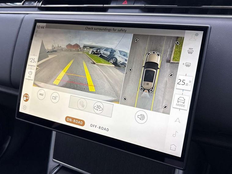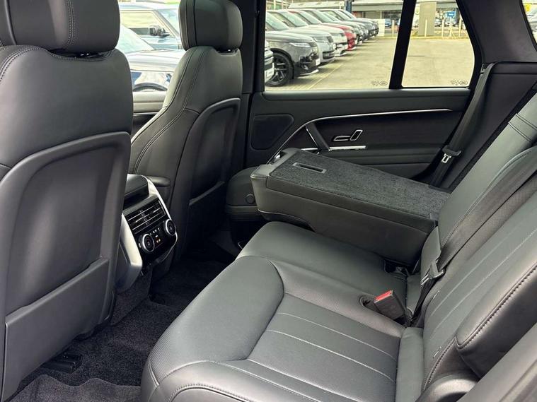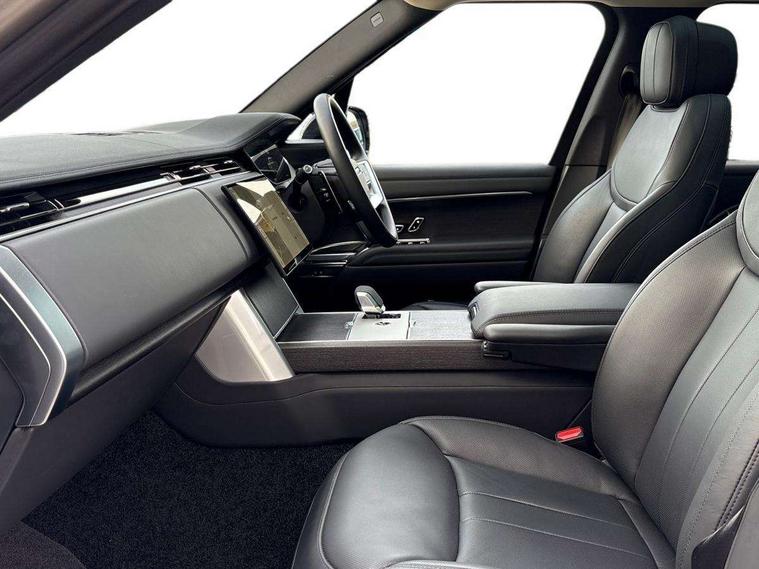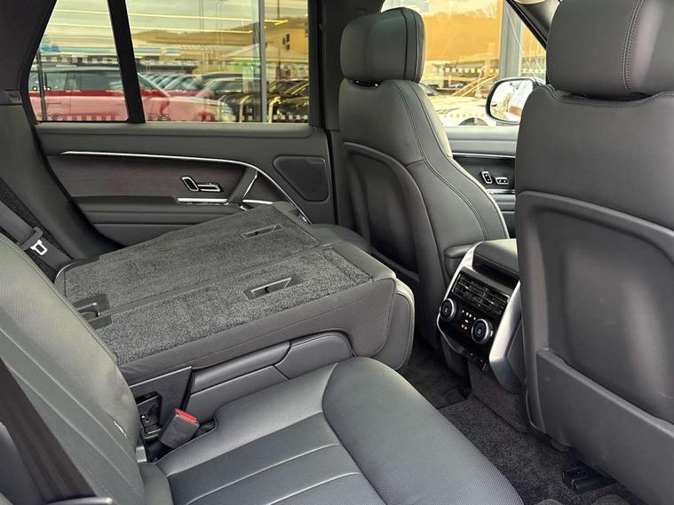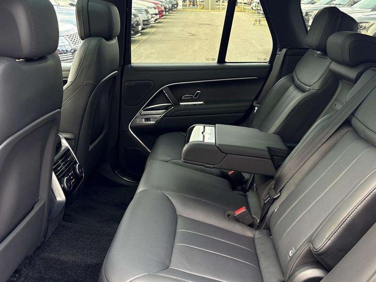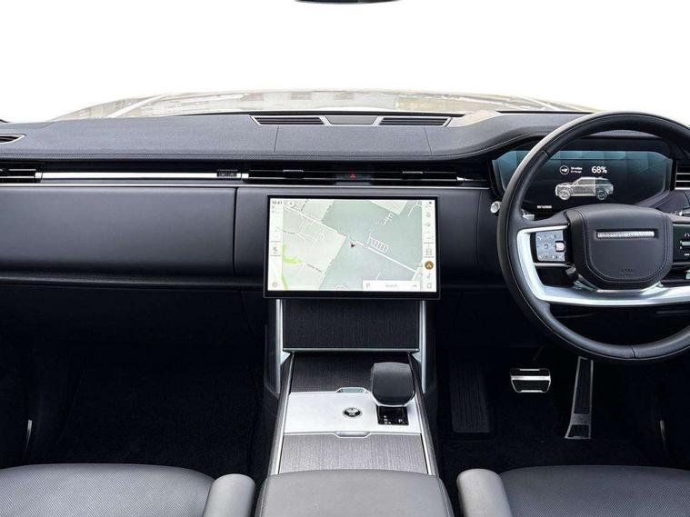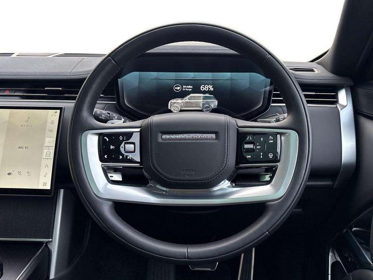 13.1" Touchscreen, 3D surround camera inc frwd traffic detection, vehicle clearance guidance, 3D view, clearsight ground view, manoevure light, 360 parking aid, wade sensing, All Terrain Info Centre, All wheel steering, Android Auto, Apple car play, Blind spot assist, Bluetooth connectivity streaming, Driver condition response, Eco mode, Electric power assisted steering (EPAS), Emergency call service, Front and rear parking aid, Head up Display, Interactive driver display, Lane keep assist, Park assist, Powered gesture tailgate/boot lid, Rear collision monitor, Rear traffic monitor, Remote, Traffic sign recognition with adaptive speed limiter, Wi-Fi Enabled with data plan, Wireless device charging with phone signal booster, 7 kW onboard charger, 8 speed automatic transmission, Active damper technology system, Adaptive dynamics, All terrain progress control, All Wheel Drive (AWD), Automatic access height, Home charging cable 5m Mode 2 including plugs, Public charging cable 5m Mode 2 including plugs, Terrain Response 2 Auto, Twin speed transfer box, Digital Audio Broadcast radio-DAB, Pivi pro including smart settings, Connected navigation pro, nuance speech, USB socket, Acoustic laminated windscreen, Animated directional indicators, Automatic headlights, Automatic levelling headlights, Centre high mounted stop light, Electric windows with one touch open/close and anti trap, Engine cover, Flush deployable exterior door handles, Front and rear recovery eyes, Front fog lights, Headlamp power wash, Heated rear window, Heated washer jets, Illuminated aluminum treadplates with Range Rover script, LED tail lights, No badges, Power fold, auto-dimming, heated door mirrors with approach lights, Rain sensing windscreen wipers, Rear boot, Rear fog lights, Rear side wing doors, Side repeater indicators in mirror, Trailer stability assist, Winter wiper park position, 12V power sockets, 3 seat bench in 2nd row, Air quality sensor, Auto folding loadspace cover, Bright metal pedals, Cabin air purification pro, Cabin lighting, Customer configurable single point entry, Driver and passenger front seat armrests, Easy boot loading, Ebony Carpet, Front and rear cupholders, Front and rear grab handles, Front head restraints, Gearshift paddles, Heated steering wheel, Hook in load space, Loadspace light, Luggage tie down in loadspace, Multifunction steering wheel, Rear centre armrest, Rear head restraints, Rear ISOFIX, Single front passenger seat, Soft close doors, Upper and lower glovebox, Online pack with data plan - Range Rover, 3x3 point rear seat belts, Anti-lock braking system (ABS), Brake hold function, Cornering brake control (CBC), Customer configurable autolock, DSC - Dynamic Stability Control, Electronic brake force distribution, Electronic parking brake, Electronic traction control, Emergency braking, Front airbags with passenger seat occupant detector, Front side airbags, Hill descent control, Hill launch assist, Low traction launch, Occupant protection assist, Power operated child locks, Roll stability control, Tyre pressure monitoring system (TPMS), Immobiliser, Intrusion sensor and alarm, Keyless entry, Locking wheel nuts, Remote central locking, Noble chrome controls,