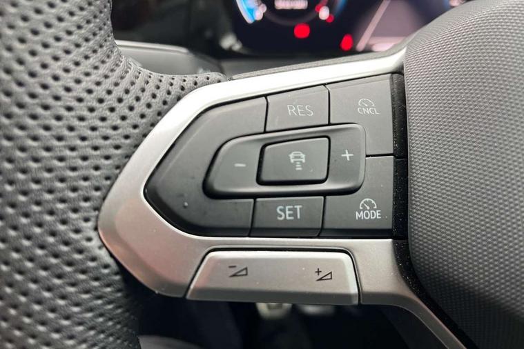 Activated carbon canister, Adaptive cruise control (ACC), Advanced driver attention and drowsiness monitor, Dynamic road sign display, Dynamic steering, E-Sim card for online connectivity, eCall emergency call system, Multi-color Digital cockpit pro, selection of different info profile possible, Multifunction front facing camera for distance control, Navigation system, Oncoming vehicle braking when turning including swerve support, Speed limiter, Speedo, rev counter, electronic odometer, trip, service interval display, exterior temperature and fuel gauge, Traffic jam assist, Voice enhancer and voice control, Warning signal and warning light for front and rear seatbelts not fastened, We connect plus preparation, We connect preparation, Wireless app connect, Petrol Particulate Filter, Start-stop system with battery regeneration (recuperation - energy recovery during braking), XDS electronic differential lock for improved traction and handling, 2 USB C ports in front, 2 USB charging sockets on the centre console in the rear charging capacity upto 45W, Digital radio reception (DAB), Diversity antenna for FM reception, Gaming platform via car app, Infotainment system with 12.9" display, Mobile phone interface with inductive charging feature, 3rd brake light, Automatic headlamp activation with Coming home and Leaving home feature, Body colored bumpers in R-Line style, Body colour door handles, Exterior mirrors convex on the left and aspherical on the right, Front and rear electric windows, Heat insulating windshield made of laminated glass, LED separate daytime running light, Rear exhaust tailpipe, Rear fog light on one side and reversing lights on both sides, Rear side wing doors, Rear windscreen washer and wiper with interval delay, Remote electrically foldable door mirrors, puddle lights and reverse activated passenger's door mirror, Welcome light with surround lighting, 12V socket in front centre console, 12V socket in luggage compartment, 3 rear head restraints, 3 seat bench in 2nd row, Ambient lighting with 30 colour including LED light unit in front footwell with selectable light colour, Black roof lining, Brushed stainless steel pedals, Chrome plated radiator grille inserts, air vent surrounds and light switch surrounds, Front + rear black carpet mats, Front centre armrest, Integrated front head restraints, ISOFIX anchors for child seats on outer rear bench seats and on front passanger seat compatible for i-Size, Leather gearshift handle, Luggage compartment lighting, Premium sports seats in front, Rear cupholder and loadthough, Single front passenger seat, Split folding backrest with centre armrest and unsplit rear seat bench, Sun visors with illuminated vanity mirrors, Titanium black instrument panel, 3 point height adj front seatbelts + pretensioners, 3 rear three point seatbelts, ABS, Autonomous emergency braking front assist with pedestrian and cyclist monitoring, Child locks on rear doors, Driver and front passenger airbag with front passenger airbag deactivation, Electronic parking brake with auto hold, ESC (Electronic Stability Control), Extended pedestrian protection measures, Rear disc brakes, Two tone horn, Tyre pressure loss indicator, Volkswagen roadside assistance, Anti theft wheel bolts, Preparation for alcohol interlock, Decorative inserts carbon grey for dashboard and front door trim panels, Tool kit for tyre mobility set, Tyre mobility kit Includes 12V compressor and tyre sealant,