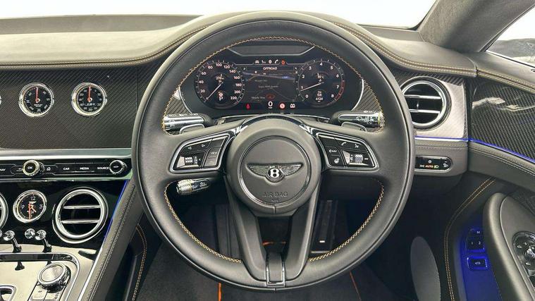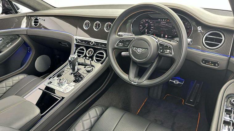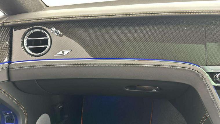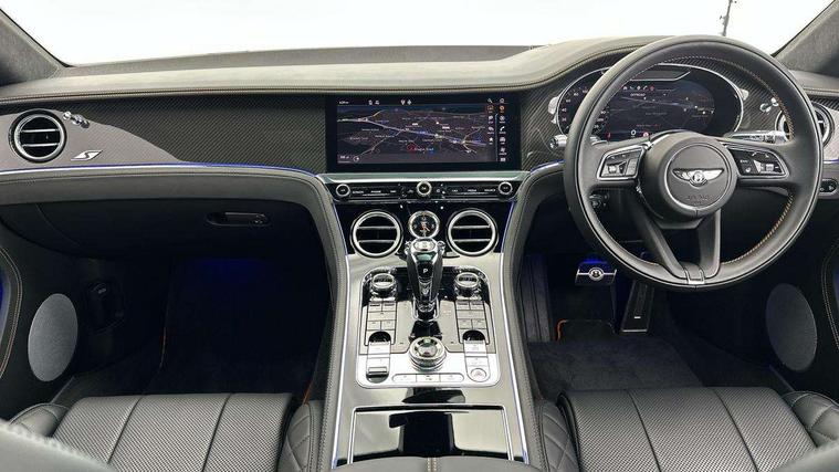 4G LTE telephone module, Apple car play, Blind spot warning, Bluetooth and Wi-Fi audio streaming, Brake pad wear indicator warning light, City assist, Collision prevention assist, E-call, Engine start/stop button, Front/rear park distance control, Hands free boot opening, Inductive phone charger, Infotainment system with 12.3 high resolution touch screen retina disp + proximity sensors + advance music interface, single DVD/CD, 2 SD card slots, Navigation system, Online real time traffic information, Park assist system, PAS, POI (search), Power latching to all doors for easy entry, Reversing camera, Reversing traffic warning, Top view camera, Traffic sign recognition, Trip computer, 3 Chamber air suspension with continuous damping control, Battery charger, Bentley Dynamic ride, Dynamic ride height control + ground clearance function, 60GB hard drive, Acoustic and heat insulating front windscreen, Acoustic glass, Adaptive brake lights, Auto dimming door mirrors, Auto dimming rear view mirror, Automatic headlights, Bentley lettering on the boot, Black and Chrome bonnet and boot Bentley wing badges, Black headlamp and tail lamp embellishers, Black matt lower bumper grille, Black quad oval exhaust finishers, Black rear bumper strike and number plate embellishers, Bright boot finisher, Dark tint front and rear lights, Daytime running lights, Deployable rear boot spoiler, Electrically adjustable door mirrors with heating, power fold, memory and dip on reverse functions, Full LED Matrix headlamps with high-beam assist, Full LED tail lamps, Heated rear windscreen, Hidden antennae, LED third brake light, Rain sensing windscreen wipers, Rear boot, S fascia badge, S fender badge, S sport sills, Sports exhaust, Treadplates inner with "Handbuilt in Crewe, England" inserts, 12 way heated electric memory front seats, 12v power sockets 2 in cabin and 1 in boot, 2 cupholders in front centre console, 2 individual rear seats, Air Ioniser, Bentley analogue clock with plain bezel, Bentley hide upholstery, Black seat belt buckles, Boot carpet in Beluga, Boot lid down lighters, Deep Pile Carpets to match upholstery, Dinamica headlining, Electric tilt and reach adjustment steering column with memory and easy entry functions, Fluted seat S design, Footwell illumination and ambient lighting, Four occupant seating positions, Front head restraints, Lockable cooled glovebox, Metal bulls eye vents with organ stop, Multi-zone automatic climate control - two zone, Rear headrests, Seats with straight fluted style hide cover, Single front armrest with fore/aft adjust and stowage, Single front passenger seat, Ski hatch, Steering wheel gearshift paddles, Stowage to front doors, centre console and under centre armrest, Sunvisors with illuminated vanity mirrors, Two rear seats with centre stowage and cup holders including 12v socket and 2 USB charging points, Continental Blackline Specification with Matrix Grille - GT/GTC, Driver and passenger airbags, Electronic parking brake with drive away assist, Electronic stability programme with traction control, Anti lock braking System , Electronic brake force distribution, HBA + drag torque control, Electronic tyre pressure monitoring, Exit warning, Front vented 420x40mm disc brakes with Bentley branded red brake callipers, Multicollision braking system, Pedestrian warning, Pre crash system, Pre sense braking system, Rear vented 380x30mm disc brakes with Bentley branded red brake callipers, Side airbags, Torque vectoring brake, Alarm, Bentley GPS advanced tracking system, Immobiliser, Keyless entry and start, Tyre inflation kit,
