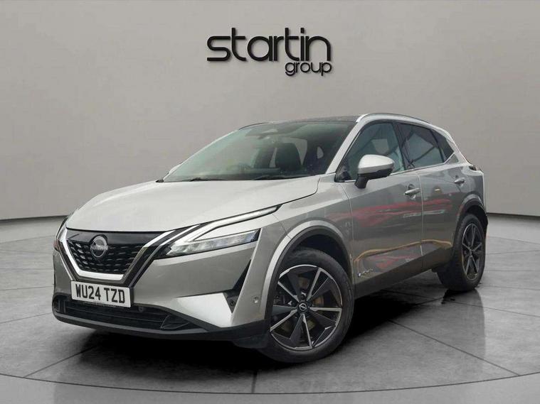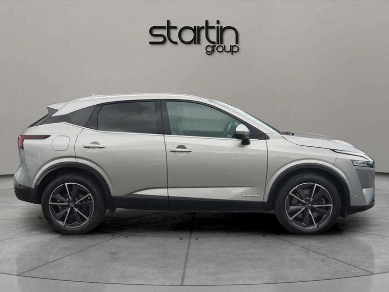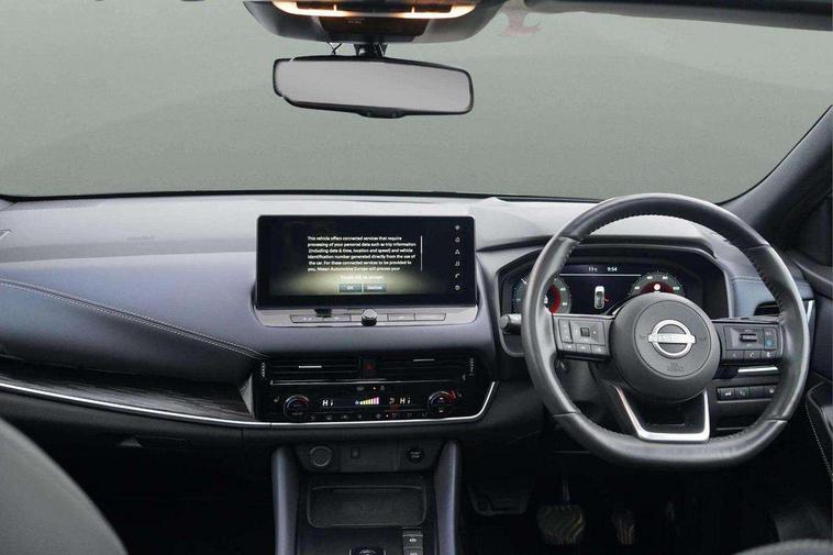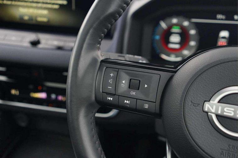 Advanced windscreen head up display, Blind spot warning, Drive modes (sport, normal, eco), e-Pedal step, Electric speed sensitive power steering, Emergency and breakdown call, Front and rear parking sensors, Full Digital 12.3" TFT Digital Combimeter, Google maps services - search, weather, 3D maps and Google street view, Hands free power tailgate, Idle stop/start system, Intelligent around view monitor, Intelligent Cruise control (ICC), Intelligent driver alert system, Intelligent forward collision warning, Intelligent lane intervention, Lane departure prevention, Lane departure warning system, Lane keep assist, Moving object detection, Nissan connect 12.3 inch touchscreen infotainment system, Nissan connect navigation, ProPILOT with Navi-Link, Push button starter, Rear cross traffic alert, Rear view camera, Remote control services - door locks, lights, horn and car locator, Telematics - notifications and connectivity services, TomTom live traffic services, Traffic sign recognition with legal speed adjustment, Trip computer, Virtual personal assistant and firmware over the air capability, Wireless Apple CarPlay and wired Android Auto, Wireless charging pad, 6 speakers, AM/FM audio system with DAB, Bluetooth audio streaming, Front USB connections (Type-A and Type-C), Rear USB charging only ports (Type-A and Type-C), Auto dimming rear view mirror, Auto rear wiper when reversing, Automatic hazard signal with emergency stop signal, Body colour mirror caps, Body coloured door handles, Bodyside mouldings, Chrome side window finisher, Door handle with button, e-POWER badging, Electric auto folding door mirrors, Electrically adjustable and heated door mirrors with LED turn indicator, Follow me home headlights, Front and rear LED turning signals, Headlights auto levelling system, Intelligent auto headlights, LED 3rd brake light, LED daytime running lights, LED headlights with adaptive driving beam, LED rear lights, One touch front and rear electric windows with remote opening and closing, Partially body coloured bumpers, Privacy glass, Rear bumper with graphite insert, Rear reversing light (bulb lighting), Rear roof spoiler, Rear side wing doors, Rear styling plate, Shark fin antenna, Splash free rain sensing wipers, Super UV and infrared cut glass, Thermaclear heated windscreen, Three blink turn signal, 12v power socket in dashboard and luggage, 2x Rear coat hooks, 3 bench rear seats in 2nd row, 3 rear headrests, 4 folding assist grip, 6 Luggage hooks - 4 on floor, 2 on side, 60/40 split folding rear seat bench, Ambient lighting around centre console, Ambient lighting in front doors, Centre console storage tray, Chrome interior door handles, Cloth/syntech leather monoform upholstery, Dark black/blueish PVC wrapping, Dark headlining, Driver and front passenger sunvisors with illuminated vanity mirrors, Driver seat back pocket, Dual zone automatic climate control with pollen filter, e-POWER shifter, Electrically adjustable driver seat, Electrically adjustable lumbar support for driver, Front and rear door storage, Front centre console and armrest, Front cupholders x 2, Front door with bottle holders, Glovebox with light, Hard trunk cover, Heated front seats, Heated steering wheel, Height adjustable driver's seat, Height adjustable front headrests, Height adjustable passenger seat, Leather steering wheel, Luggage board system, Luggage space lighting, Manual lumbar support on passenger seat, Manually adjustable passenger (slide recline + lifter), Multifunction steering wheel, Passenger seat back pocket, Rear armrest with 2 cupholders, Rear door bottle holders, Single front passenger seat, Soft PVC kneepad, Steering wheel switches, Tilt/telescopic adjustable steering wheel, Two rear isofix child seat anchorage points with top tether, Welcome light and doors with console tray ambient lighting, Glass roof pack with roof rails - Qashqai, 3x3 point rear seatbelt pretensioners + load limiters, ABS with EBD and brake assist, Active brake limited slip, Auto hold function, Child locks on rear doors, Curtain and front side, far side airbags, Driver and passenger airbags, Driver, passenger and 2nd row rear seat belt reminder, Electronic parking brake, Front seatbelt pretensioners + load limiters, Height adjustable front seatbelts, Hill start assist, Intelligent blind spot intervention, Intelligent front emergency braking with pedestrian, cyclist recognition and junction assist, Intelligent rear automatic braking, Tyre pressure monitoring system, Vehicle dynamic control, Capless fuel filler, Engine immobiliser, Intelligent Key, Remote central door locking with deadlocking, Thatcham Cat.1 alarm, Interior instrumental panel C finisher, 19" Diamond cut alloy wheels, Tyre puncture repair kit,